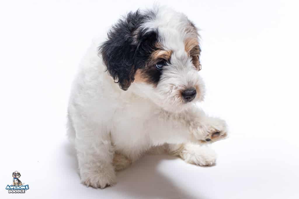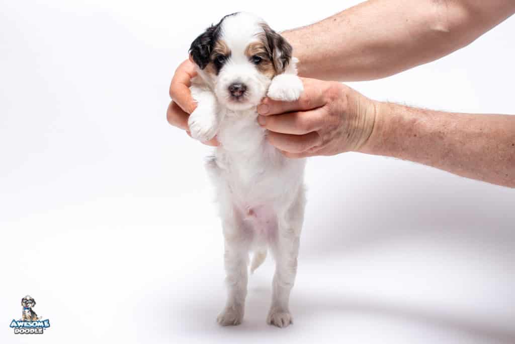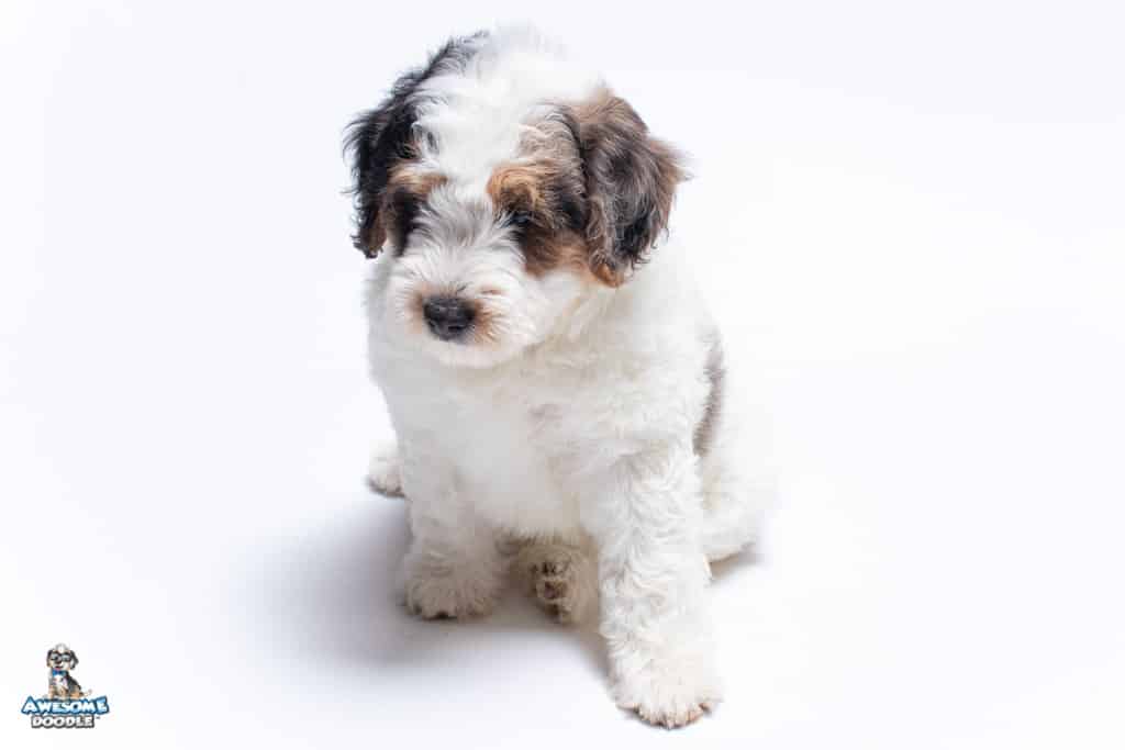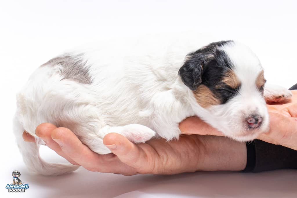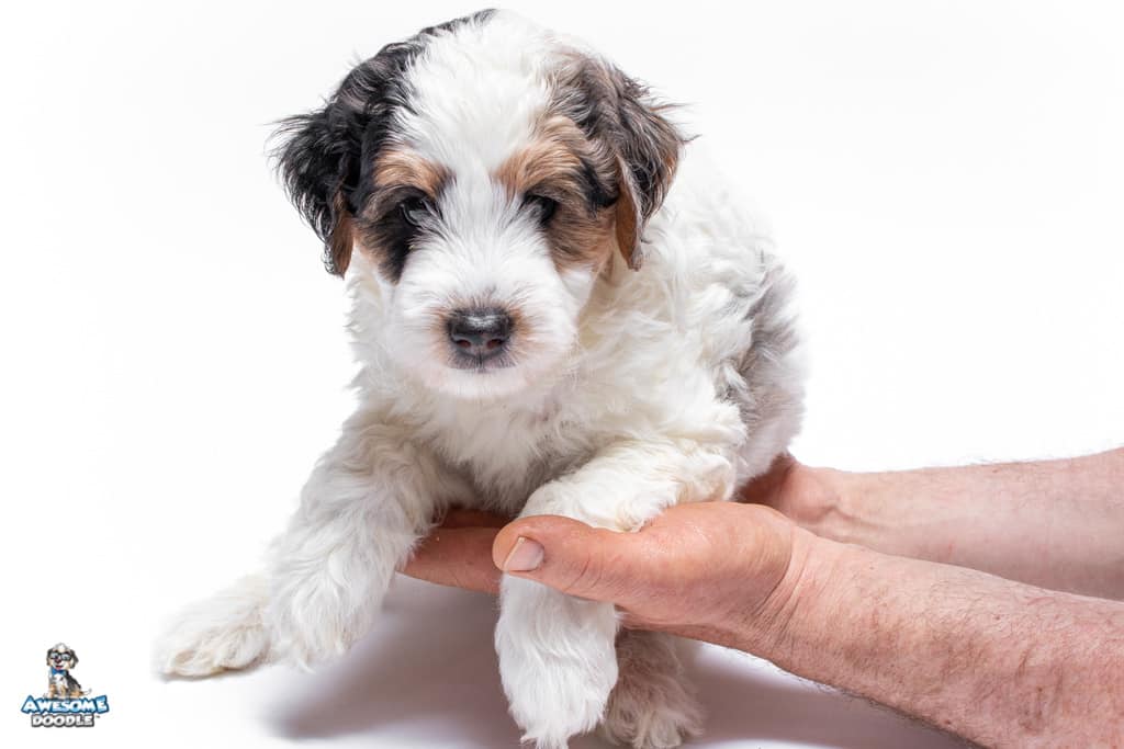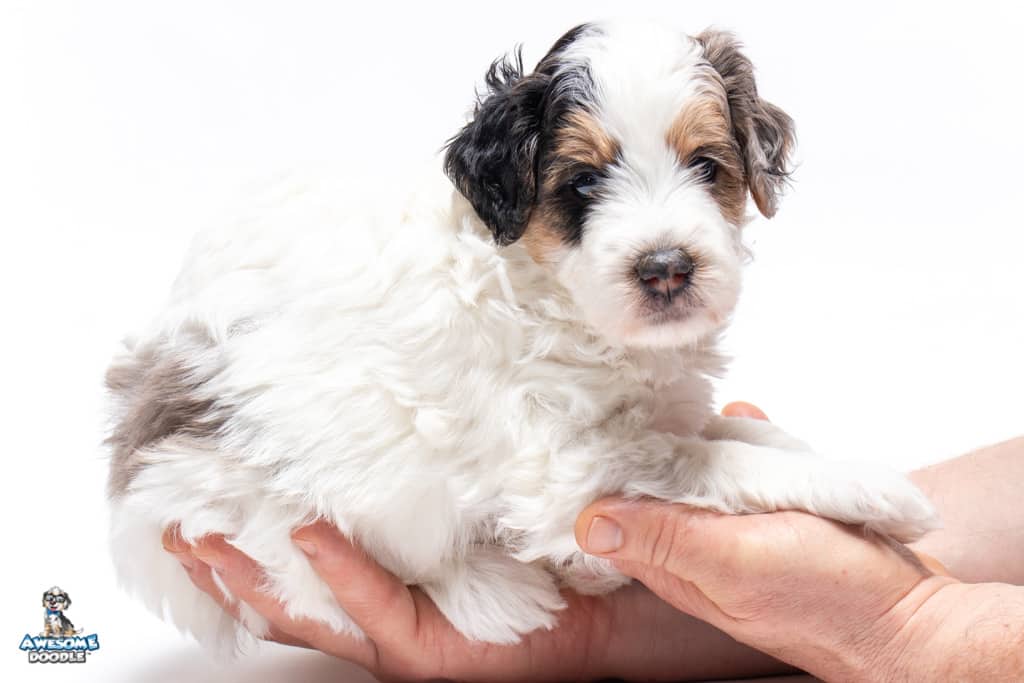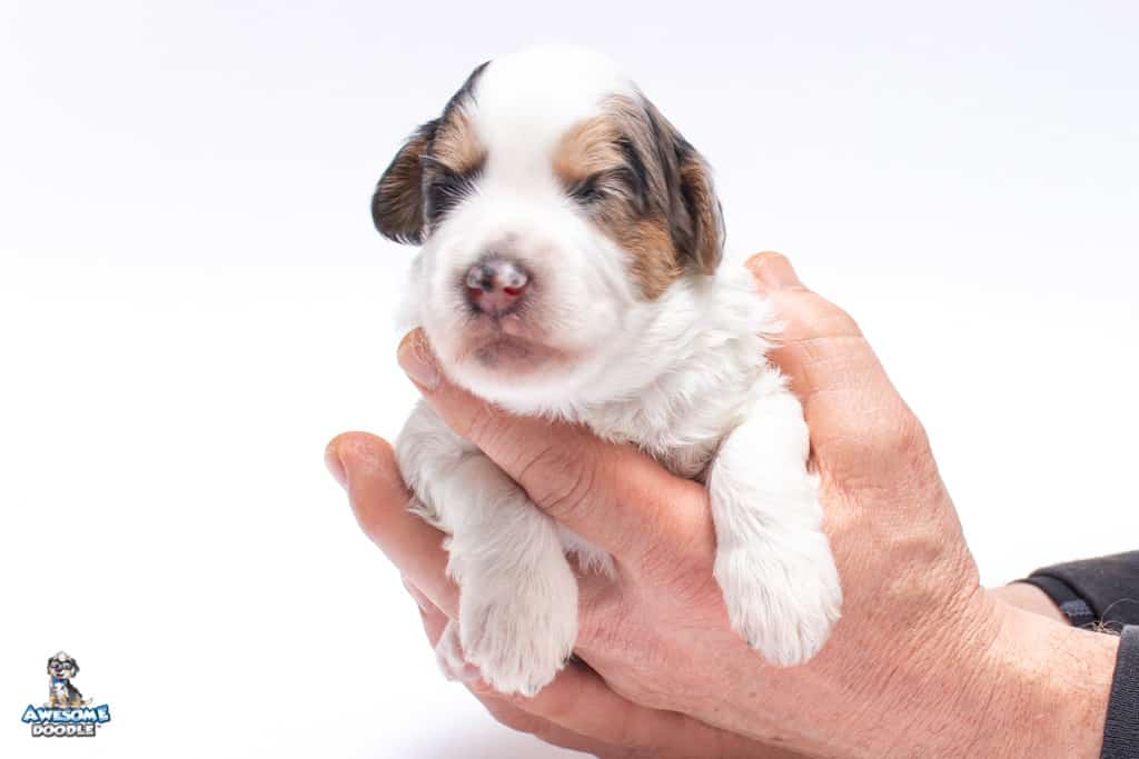 Benny is a male Blue Merle w/ White & Copper F1b AussieDoodle puppy.