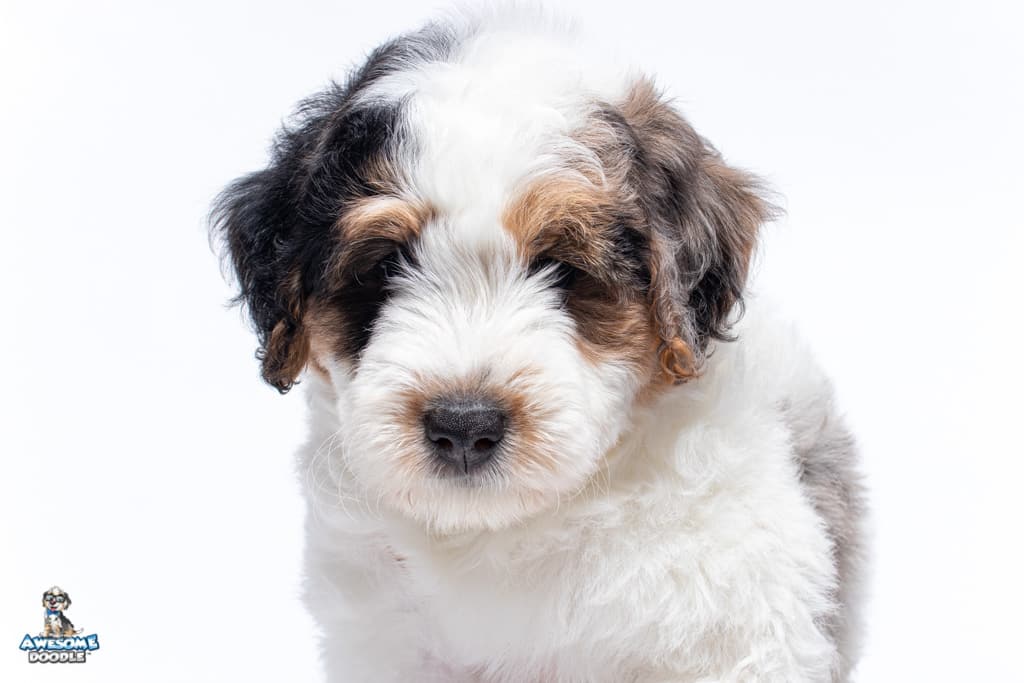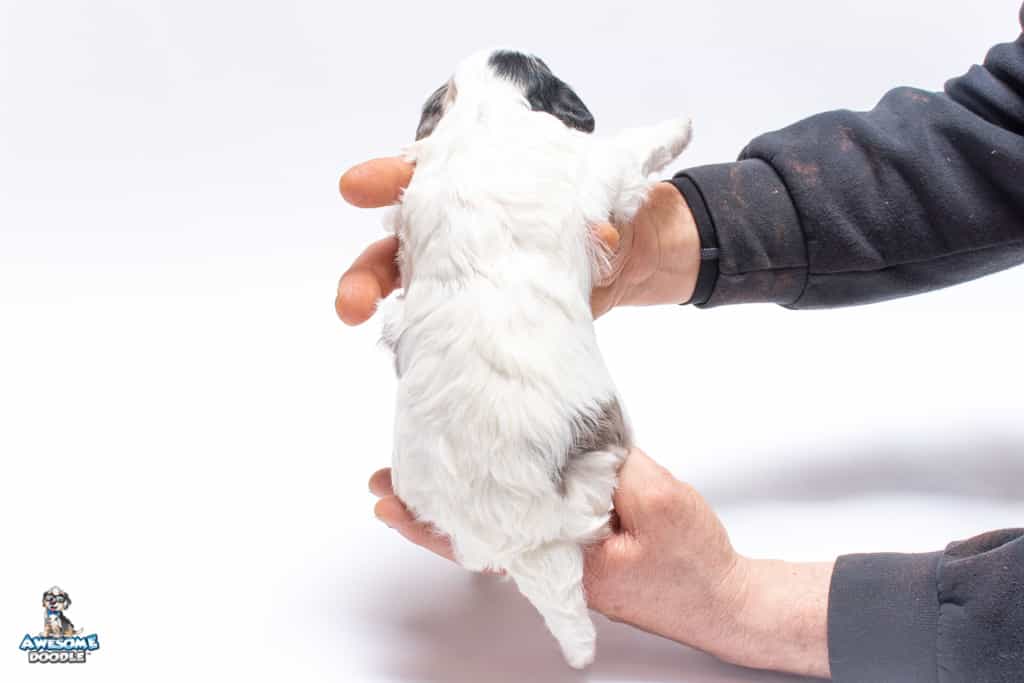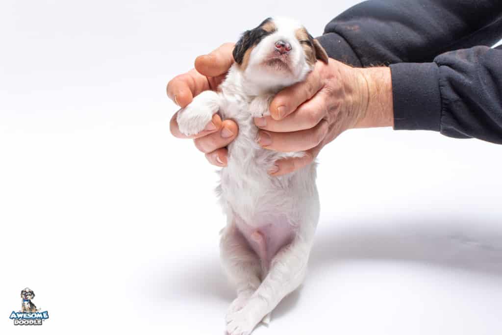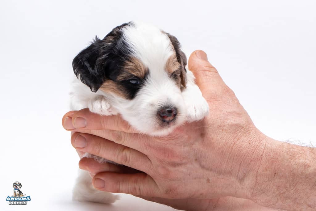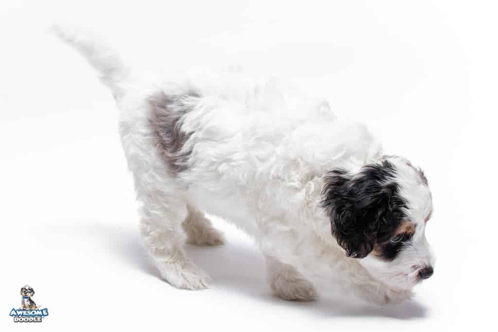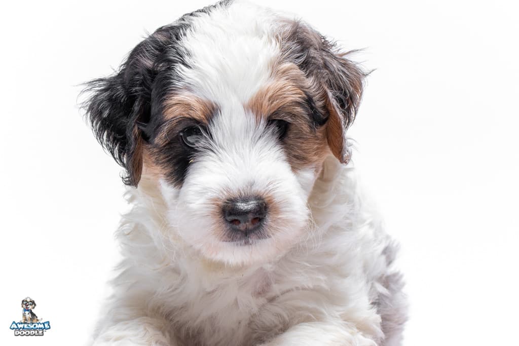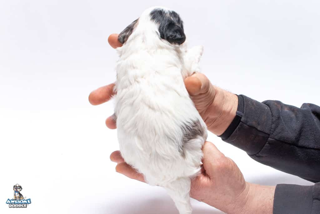Benny is a male Blue Merle w/ White & Copper F1b AussieDoodle puppy.