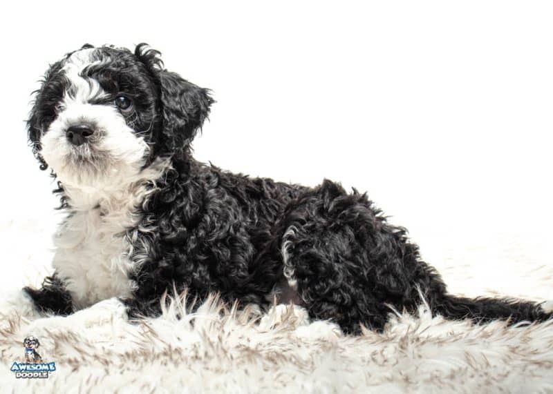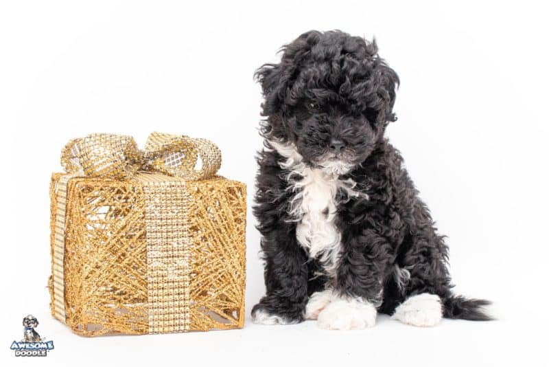 Congrats to: Tonya and family from Summerville, SC on this Black Bi-Color F1b AussieDoodle puppy.