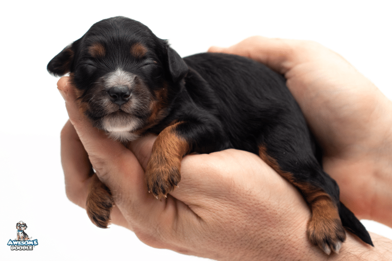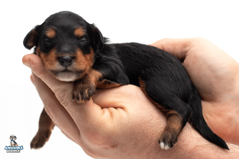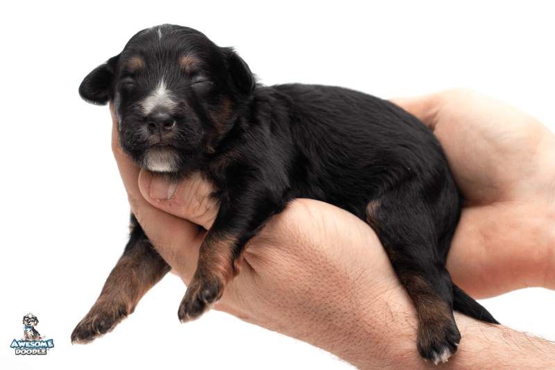 Congrats to: Susan and family from Lebanon, TN on this Black Tri-Color F1 AussieDoodle puppy.