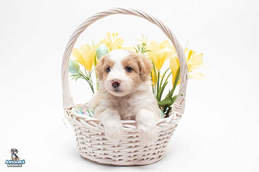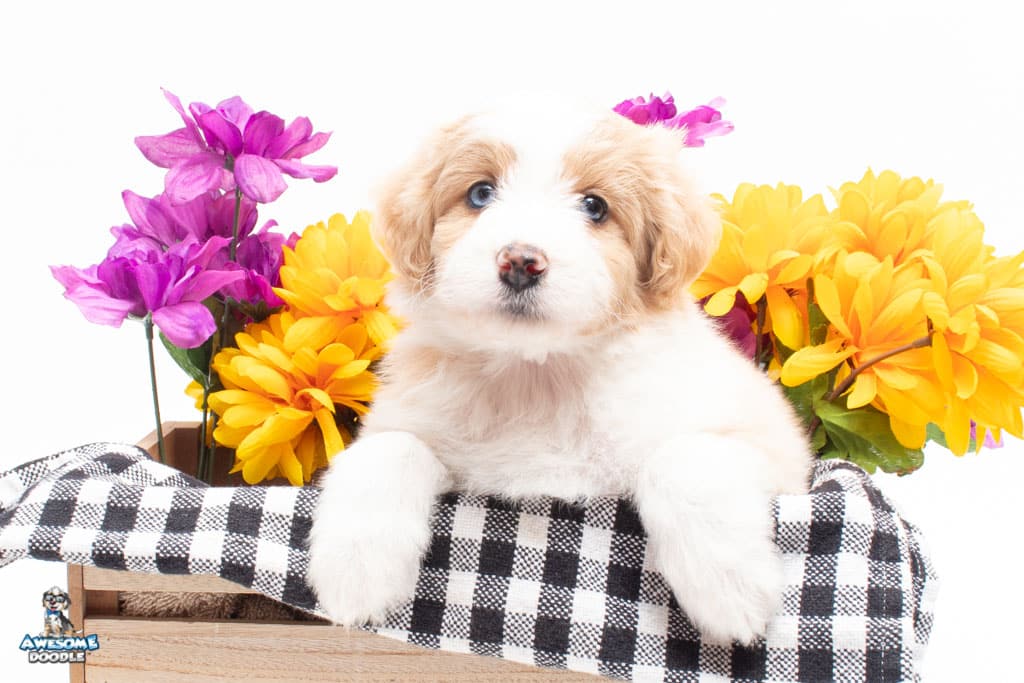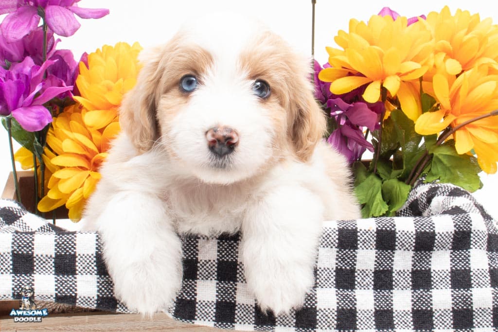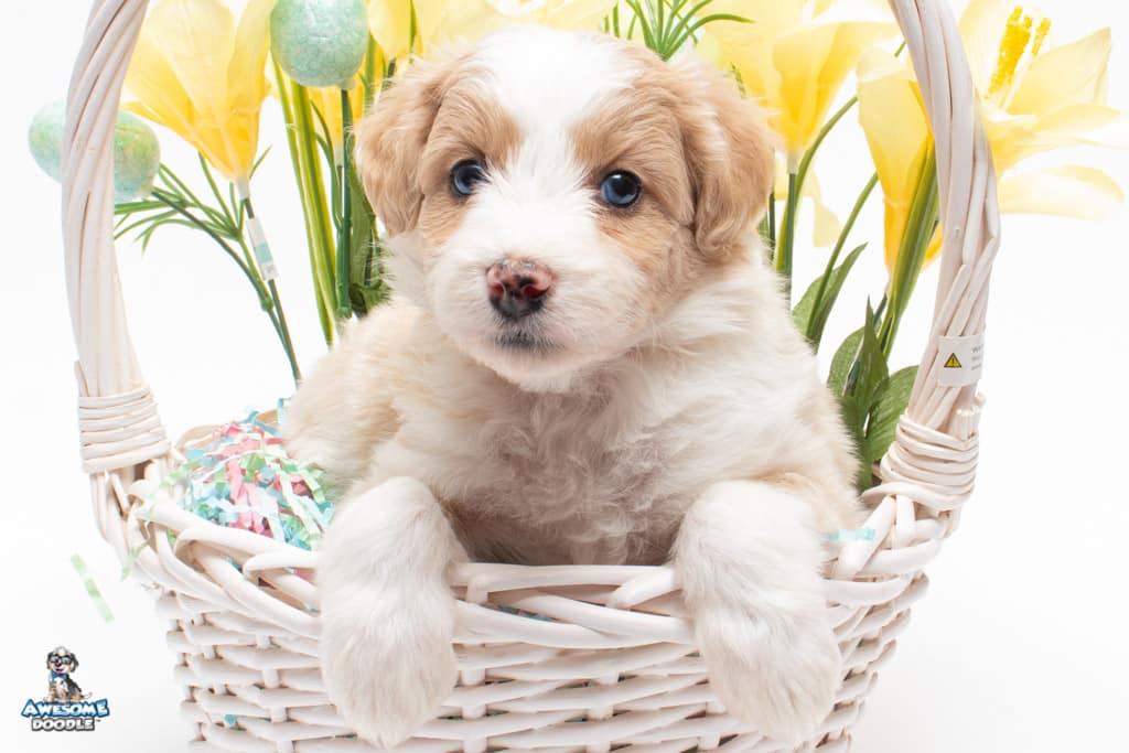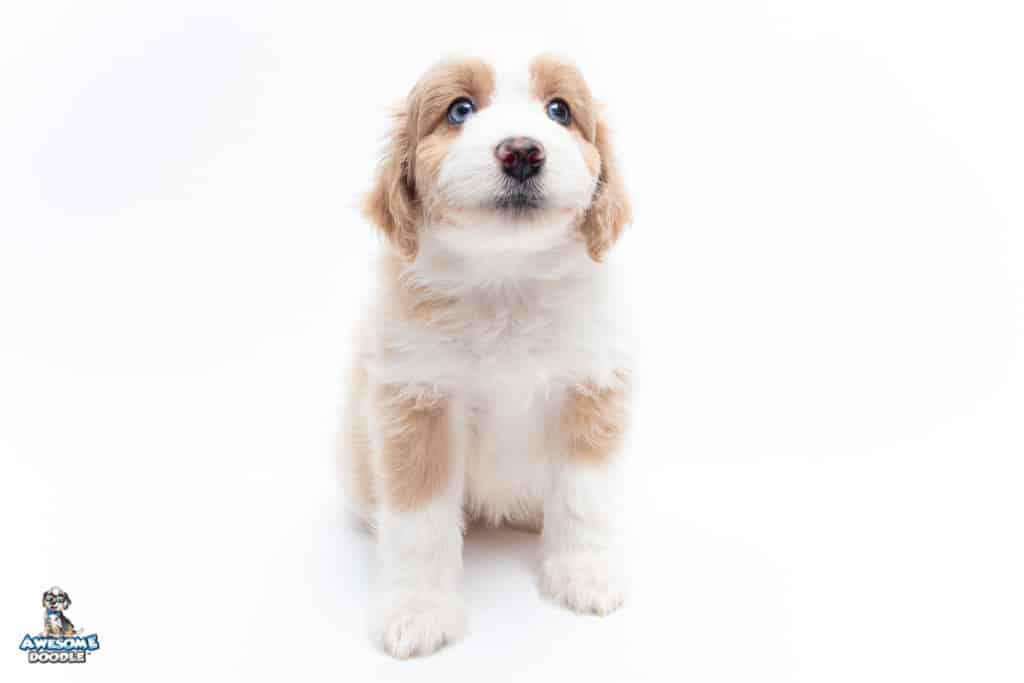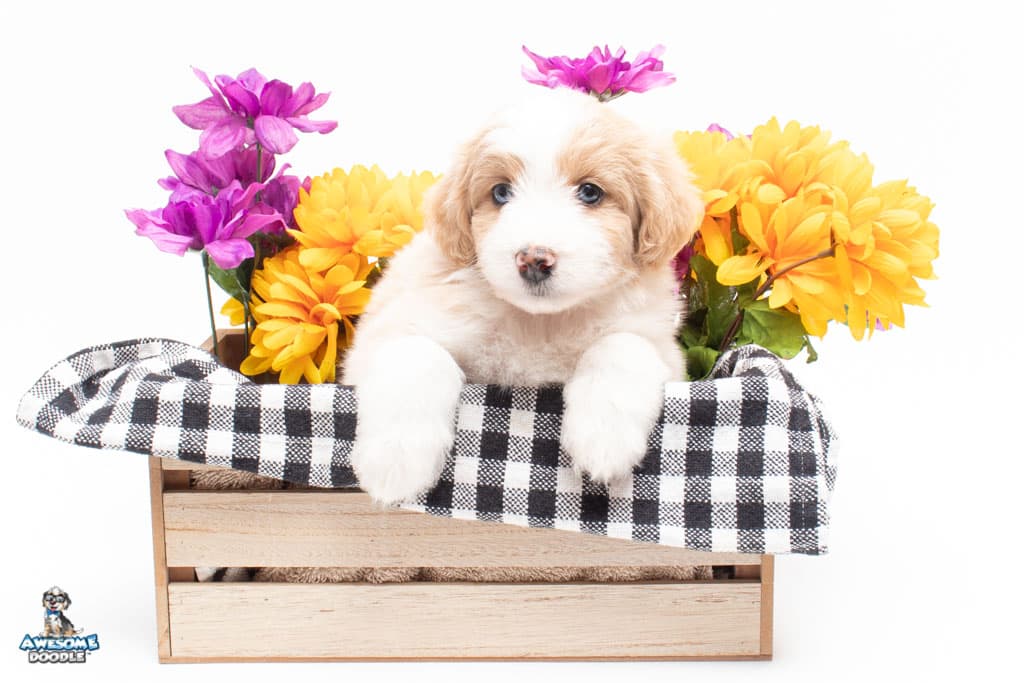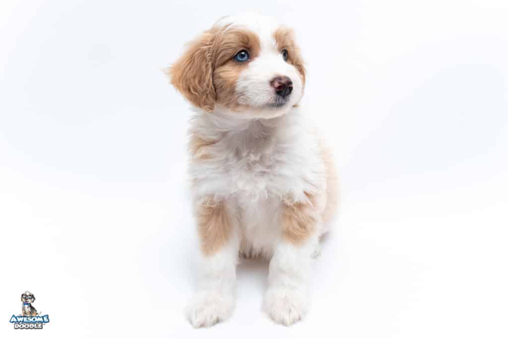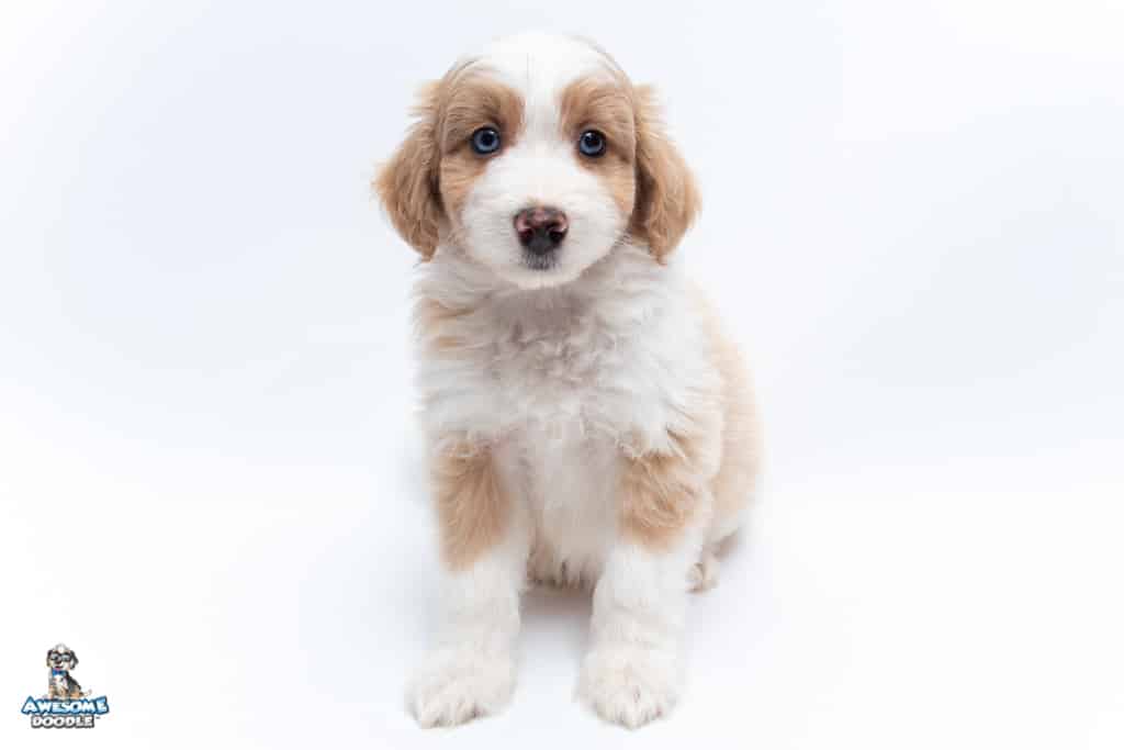 Coco is a female Apricot Bi-Color F1 AussieDoodle puppy.