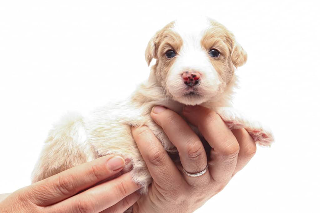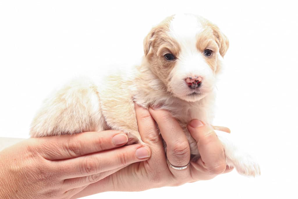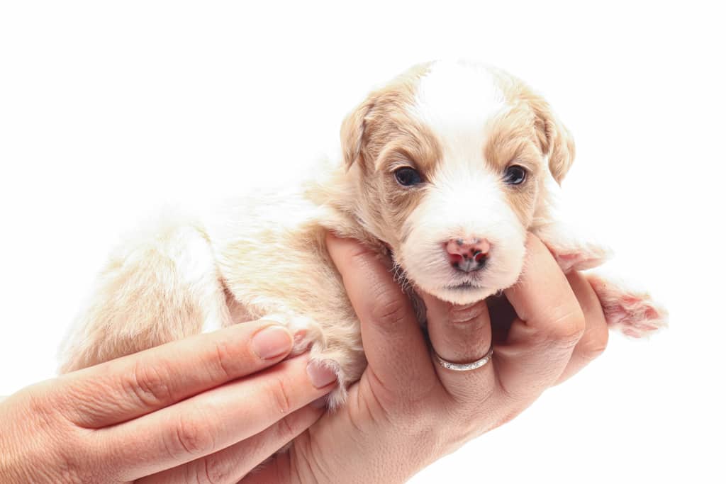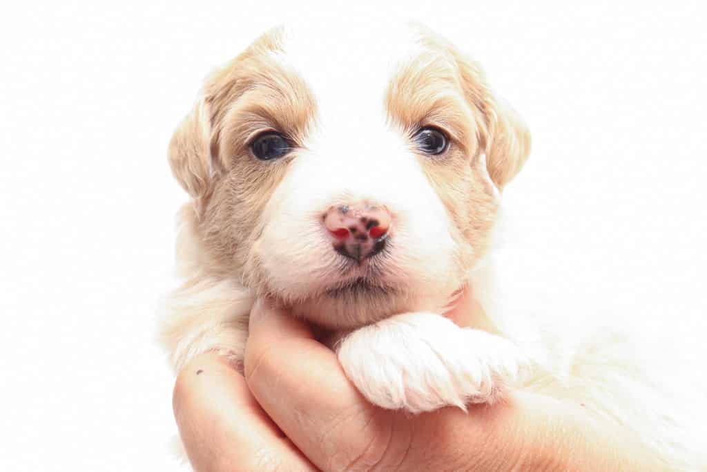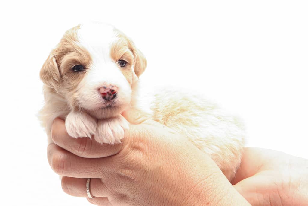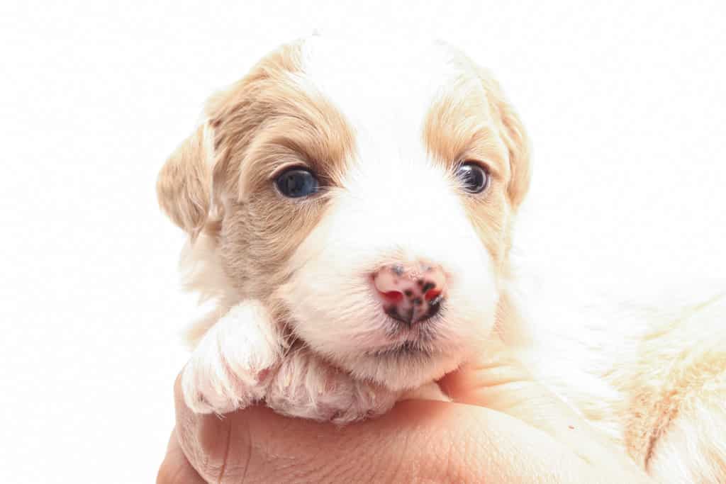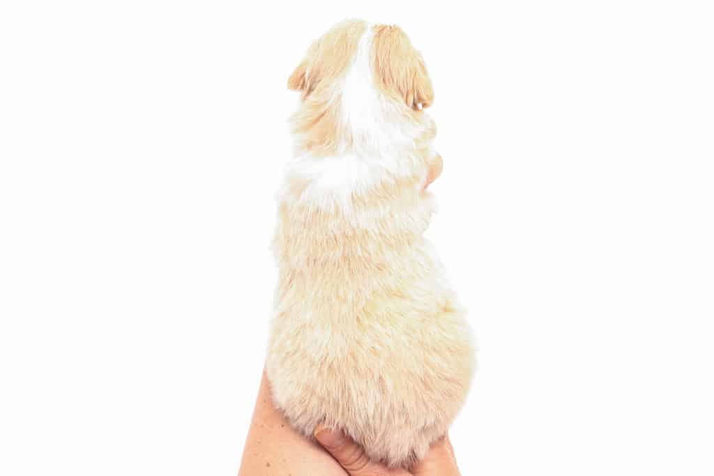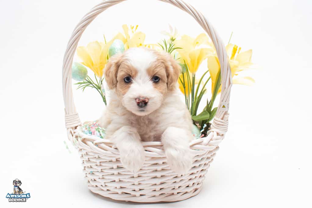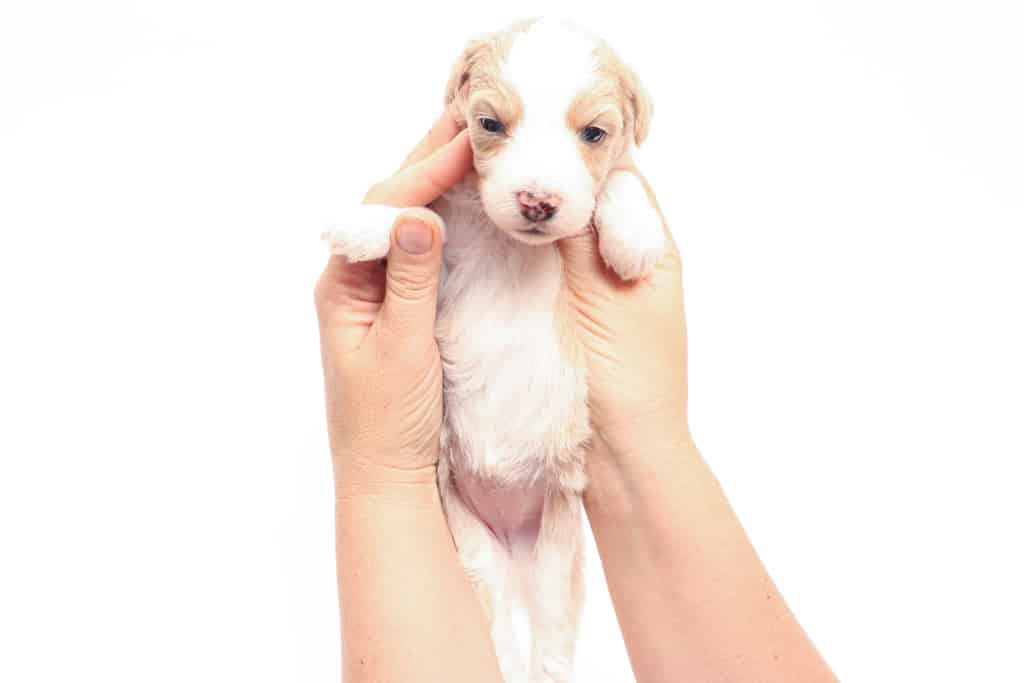 Coco is a female Apricot Bi-Color F1 AussieDoodle puppy.