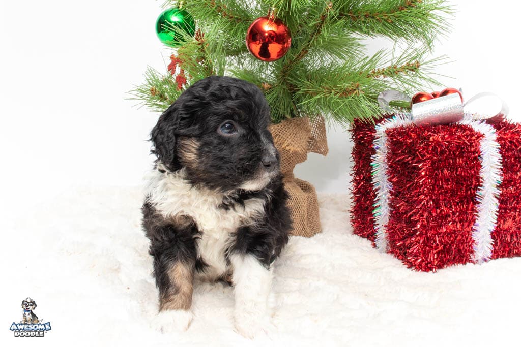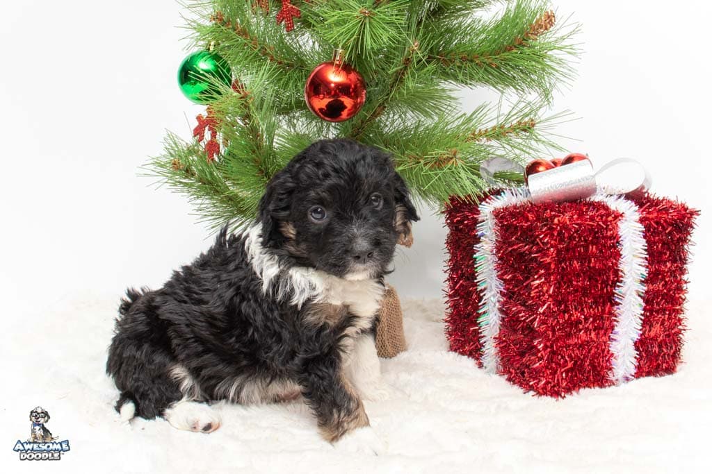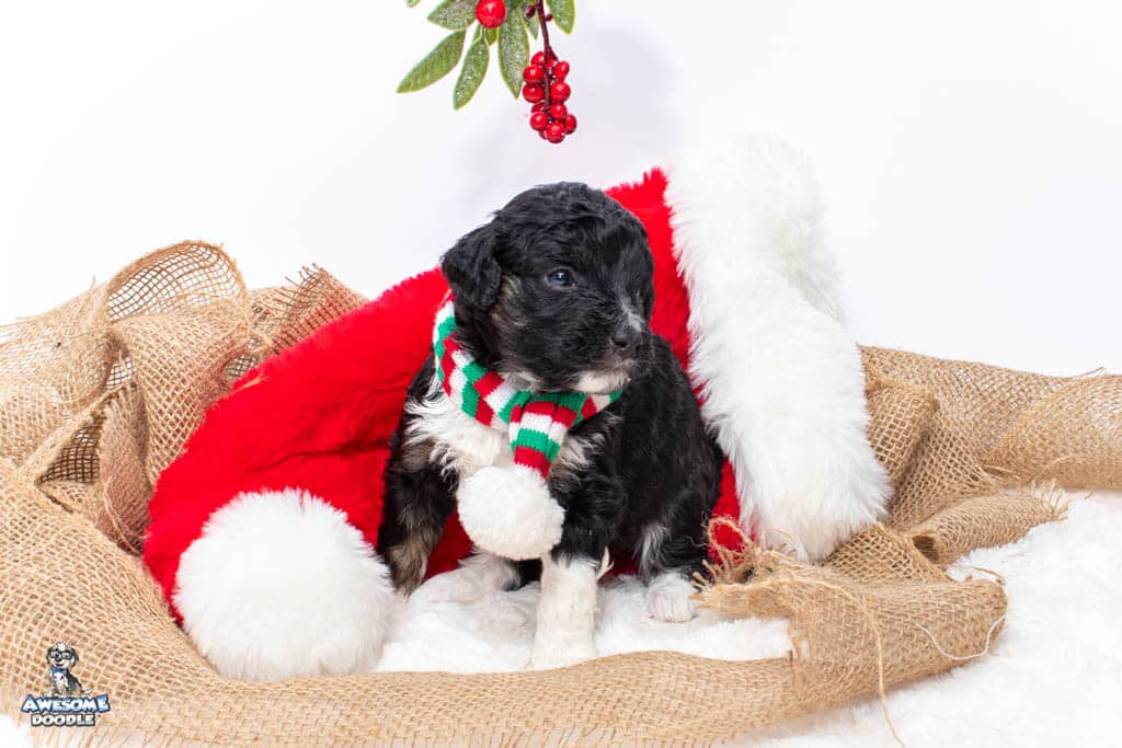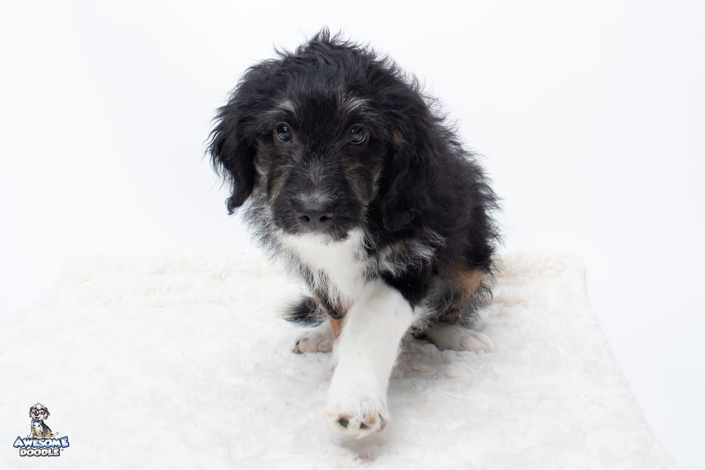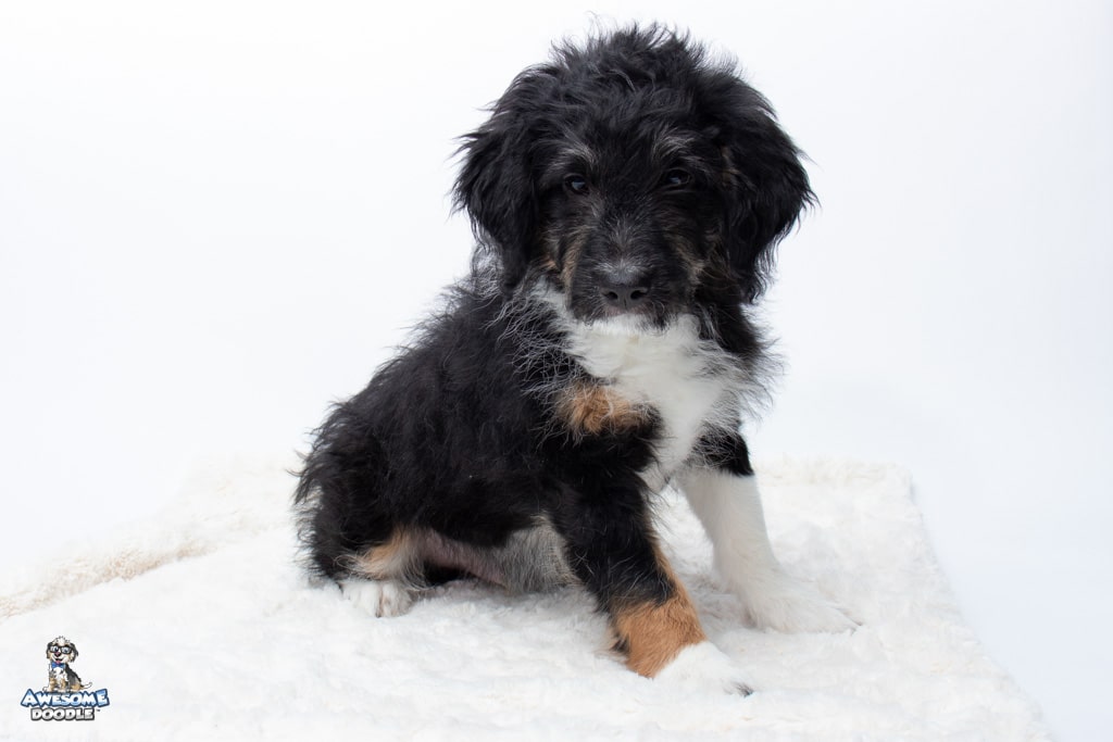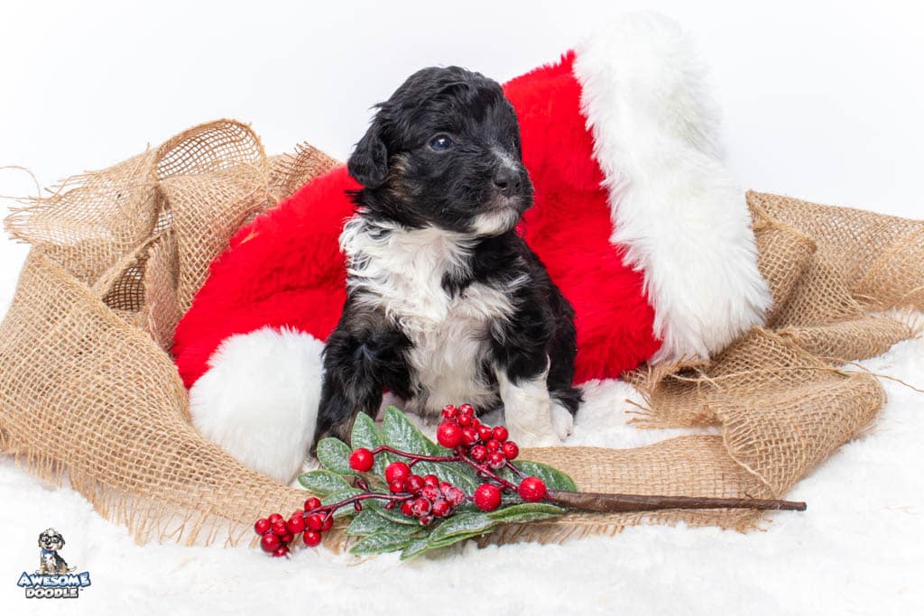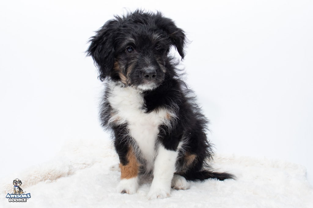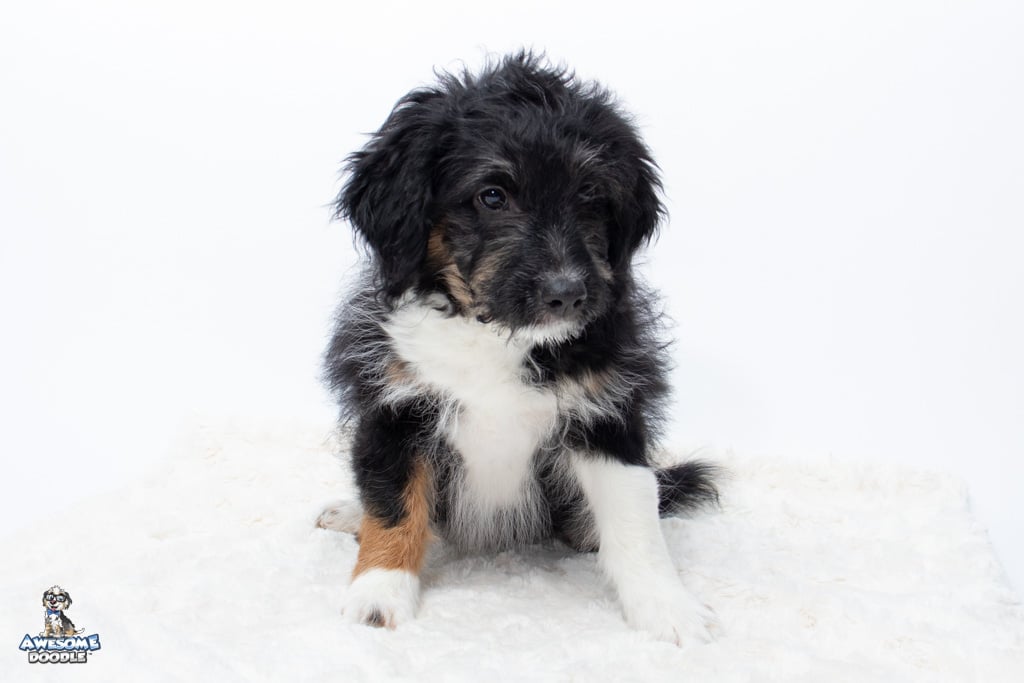 Apollo is a male Black Tri-Color F1 AussieDoodle puppy.