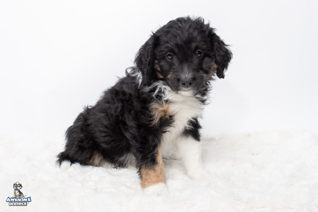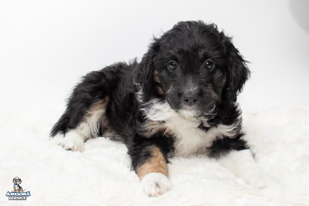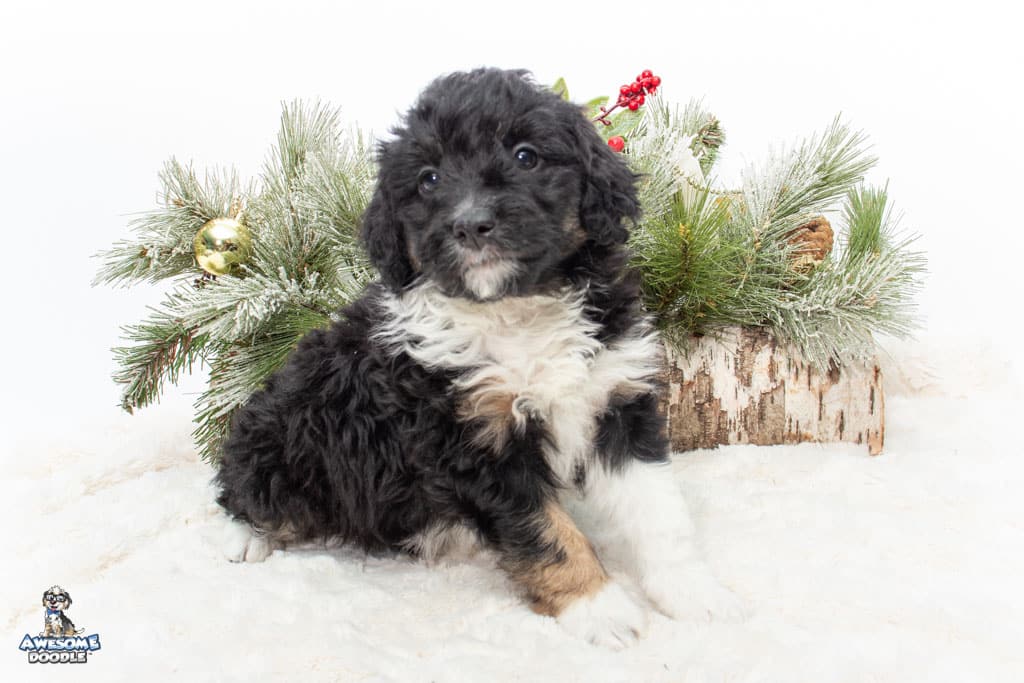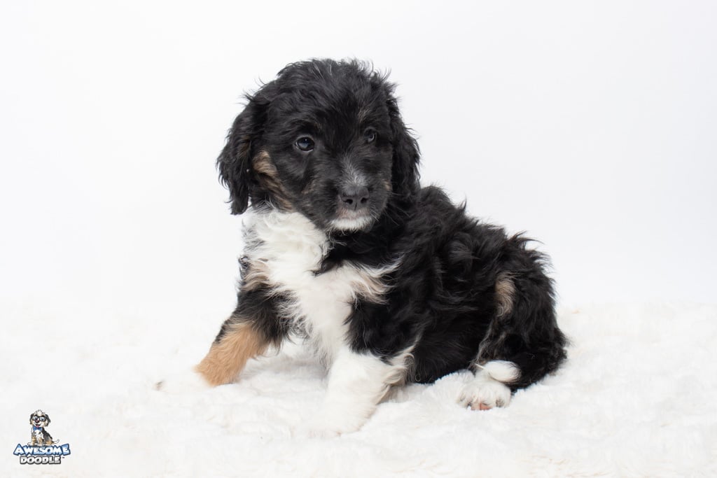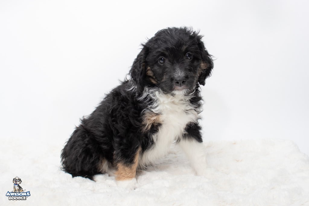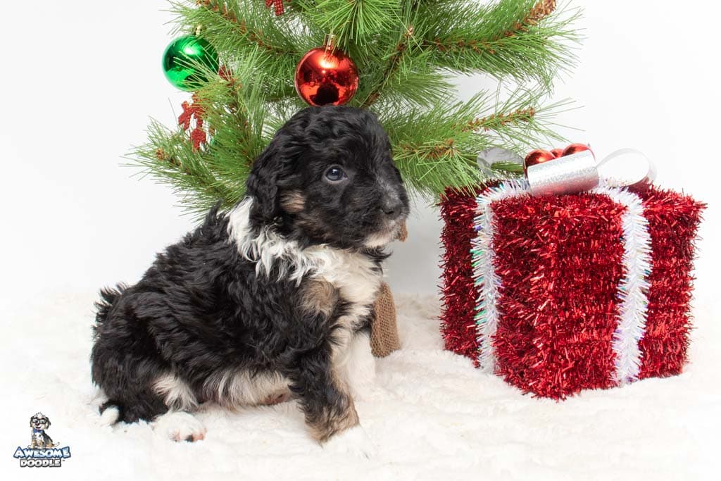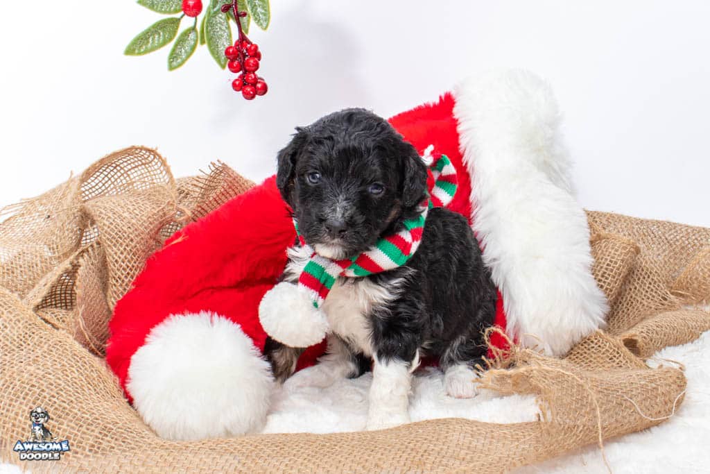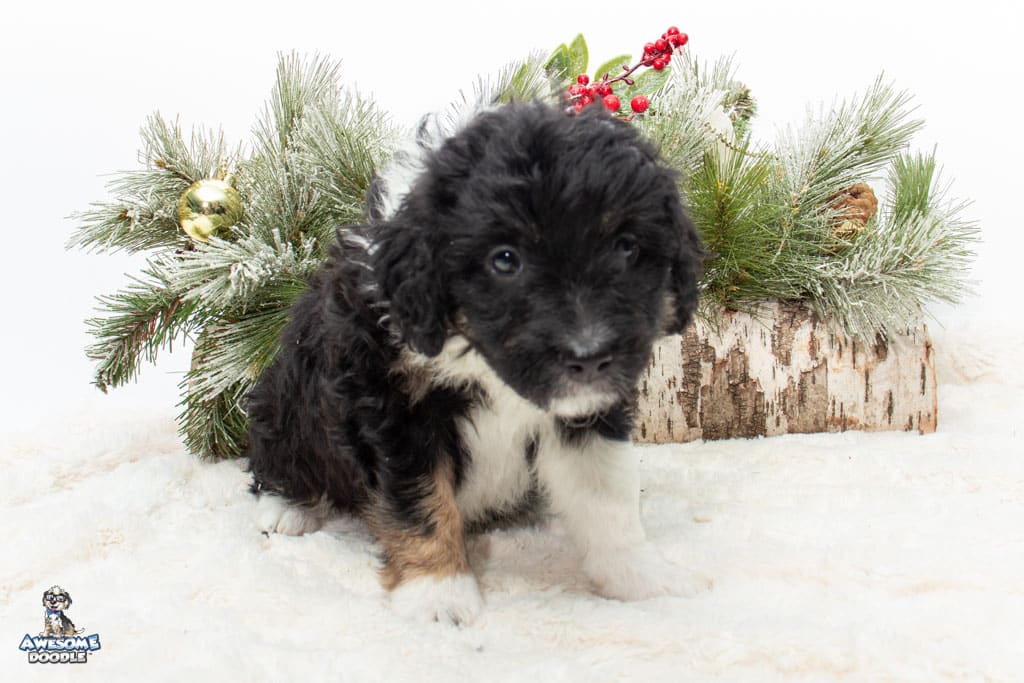 Apollo is a male Black Tri-Color F1 AussieDoodle puppy.