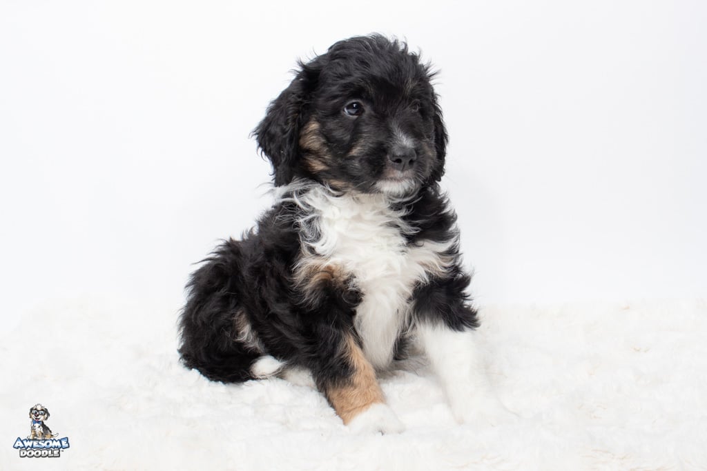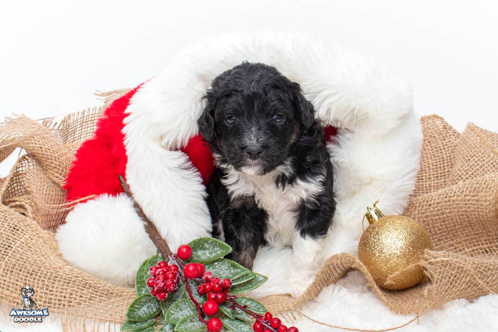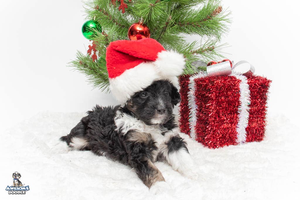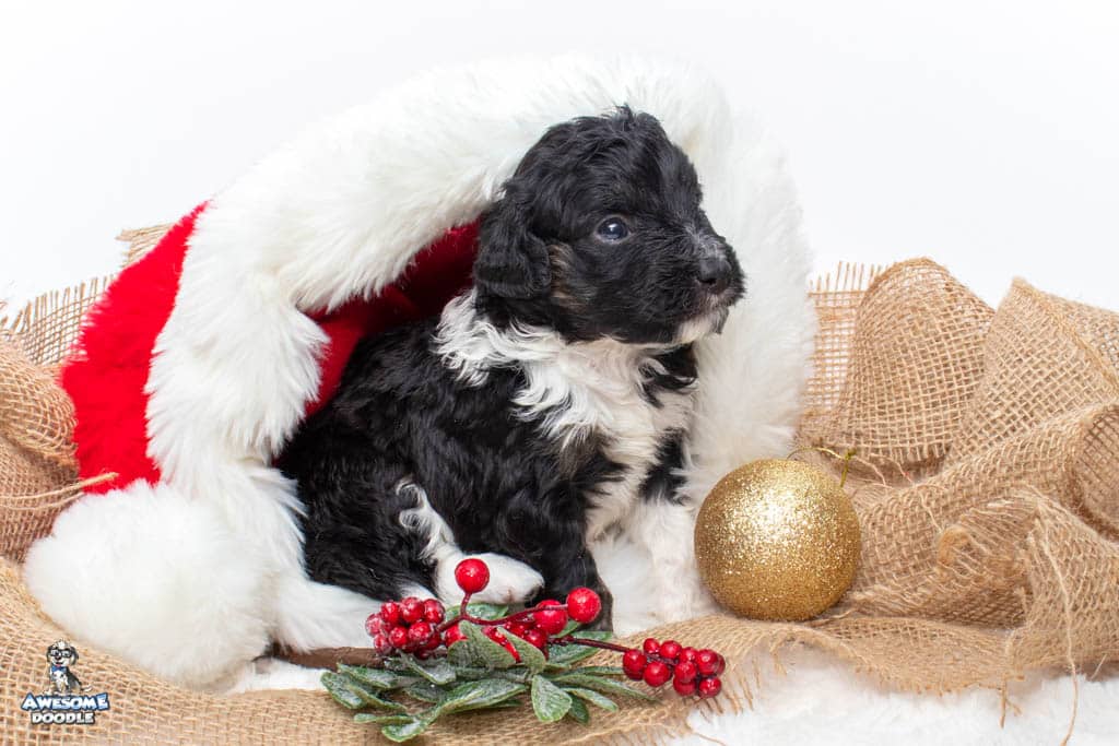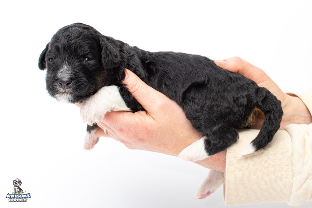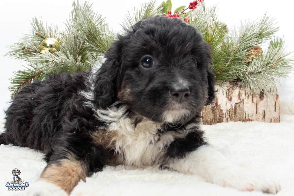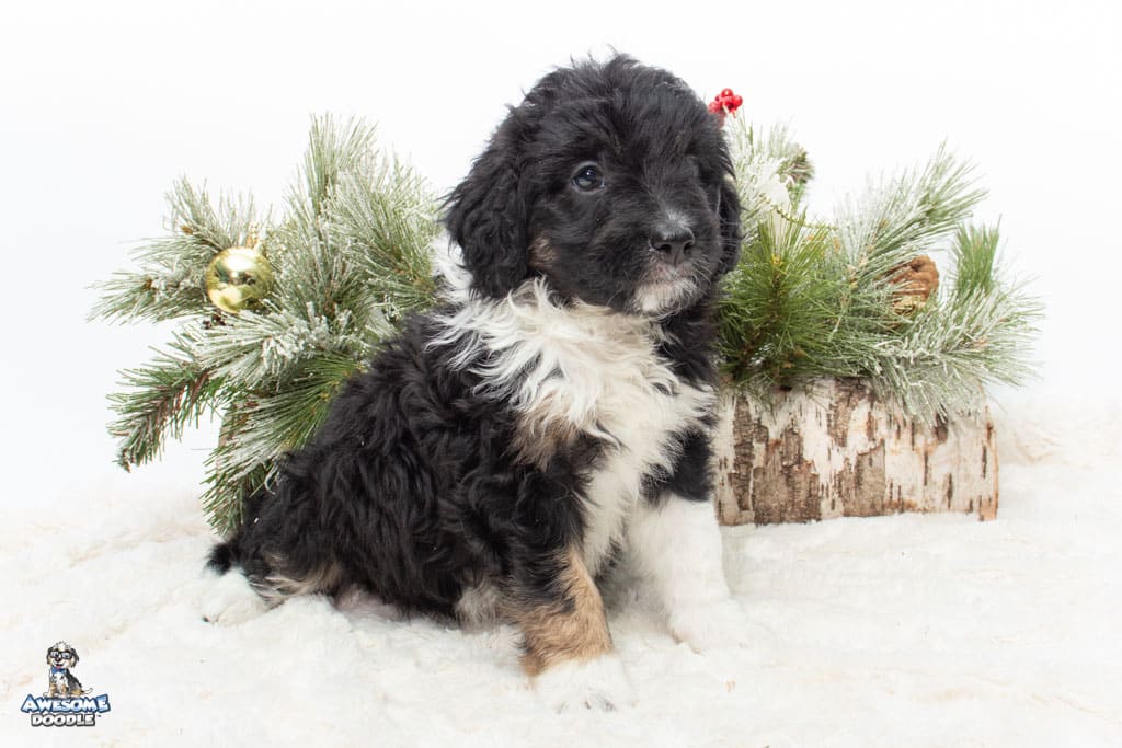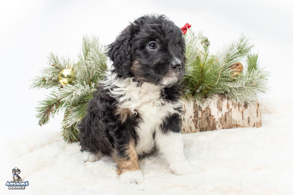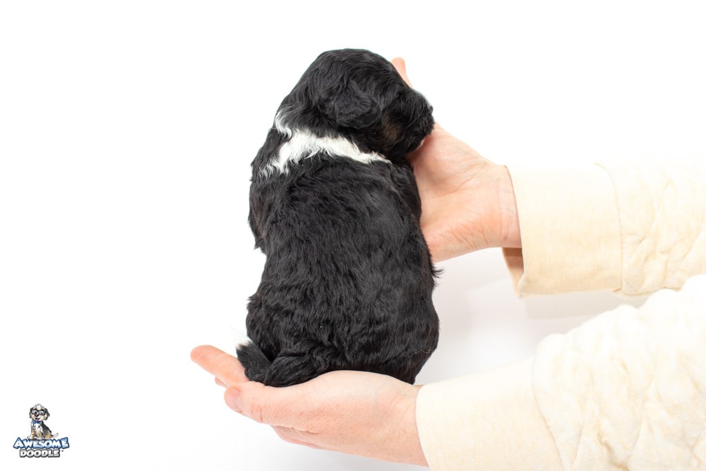 Apollo is a male Black Tri-Color F1 AussieDoodle puppy.