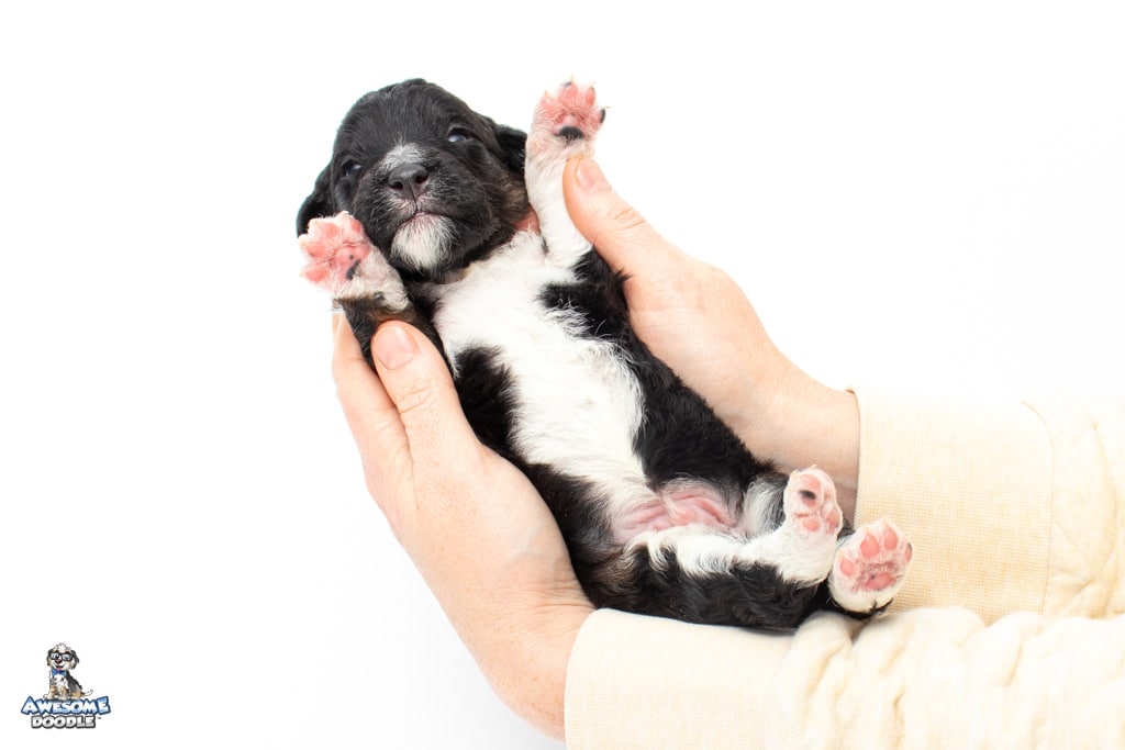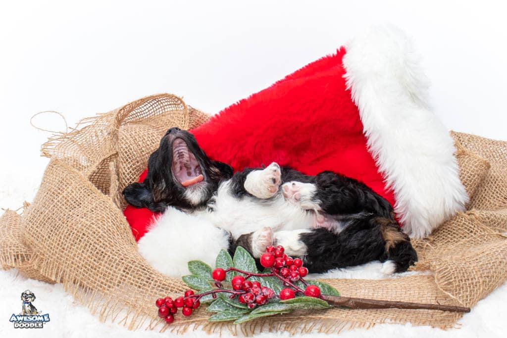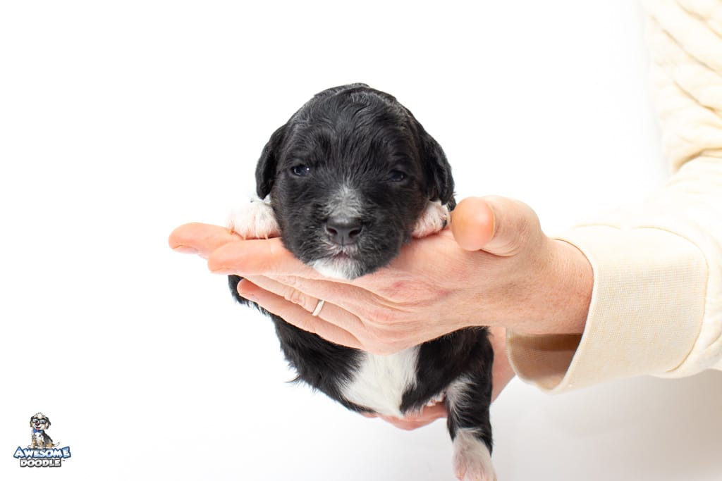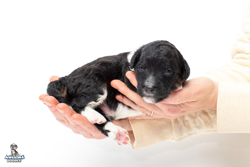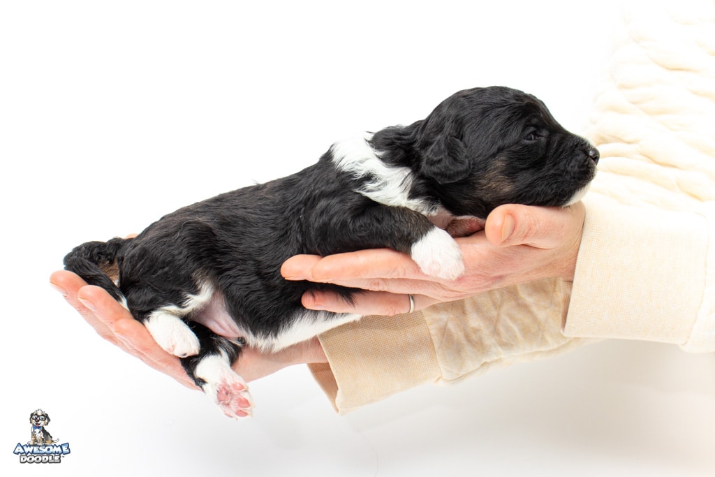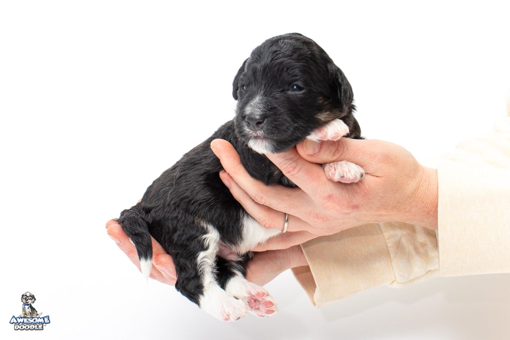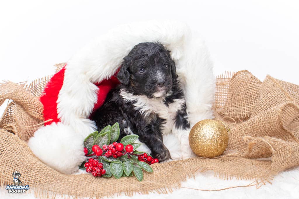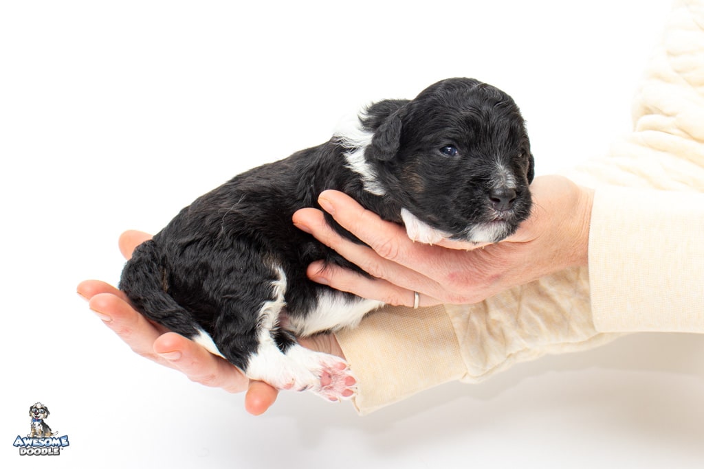 Apollo is a male Black Tri-Color F1 AussieDoodle puppy.