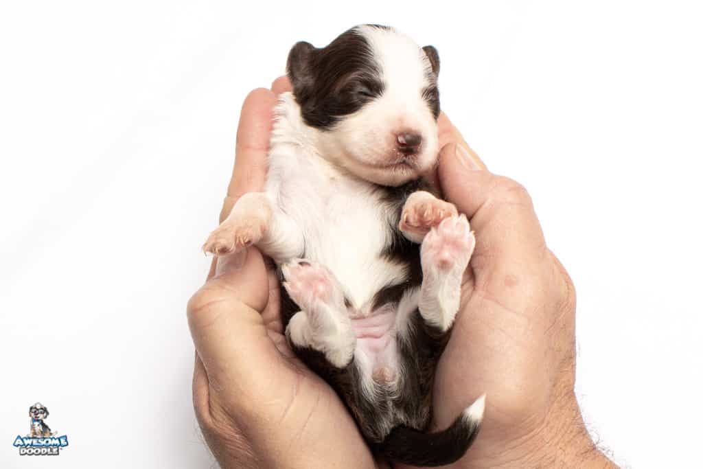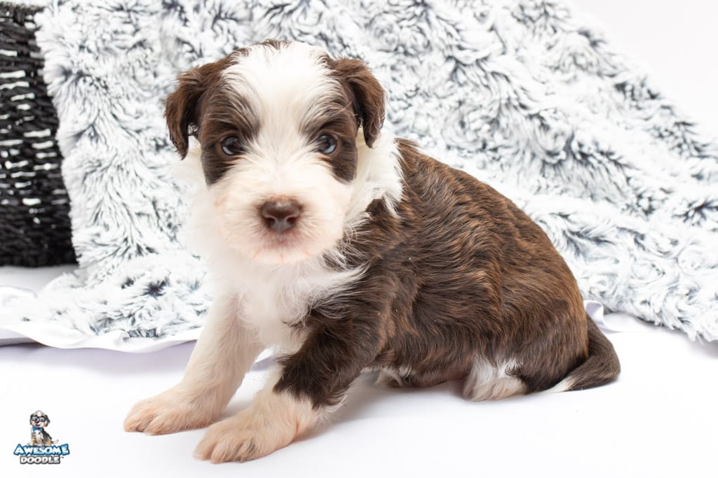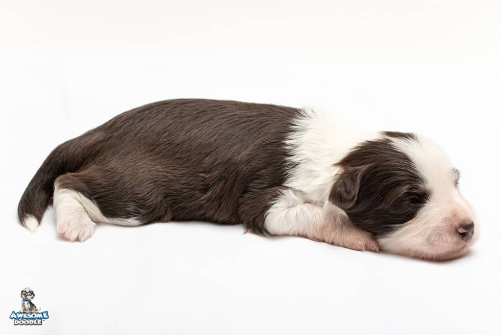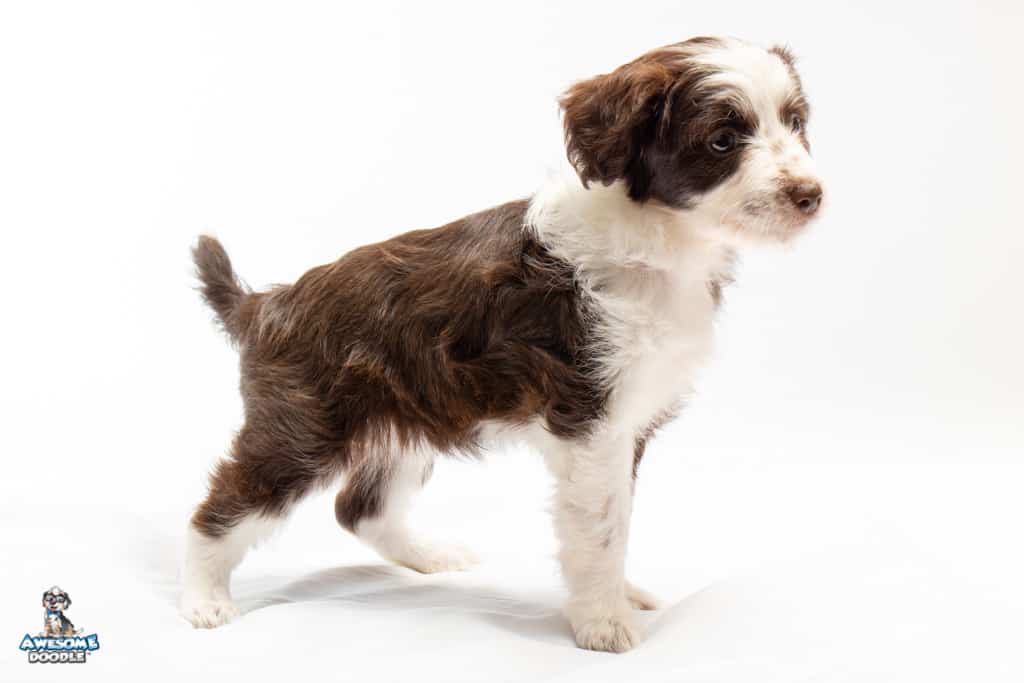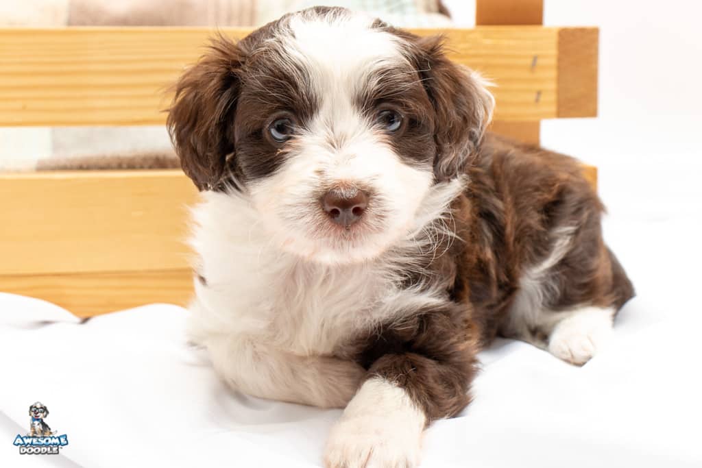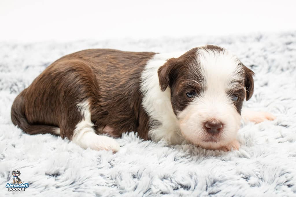 Tessa is a female Chocolate Bi-Color F1 AussieDoodle puppy.