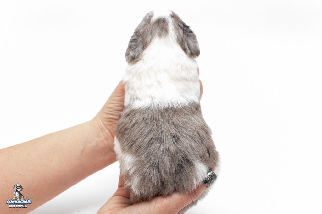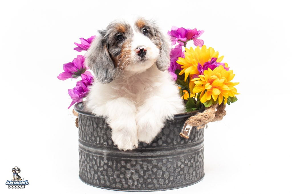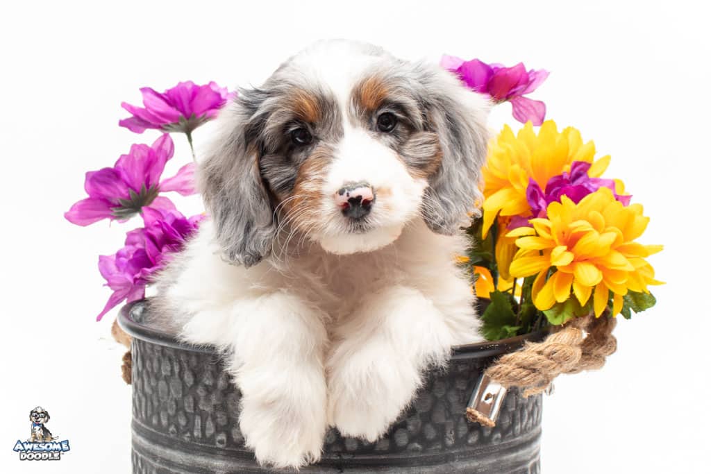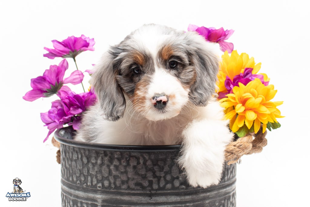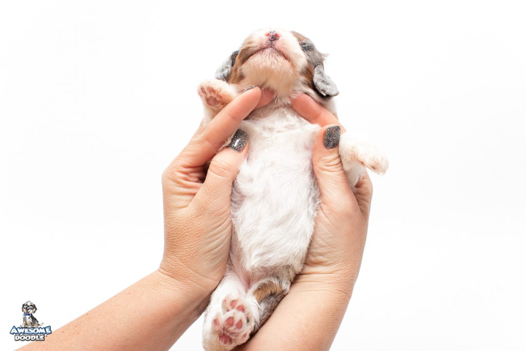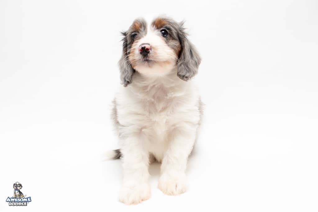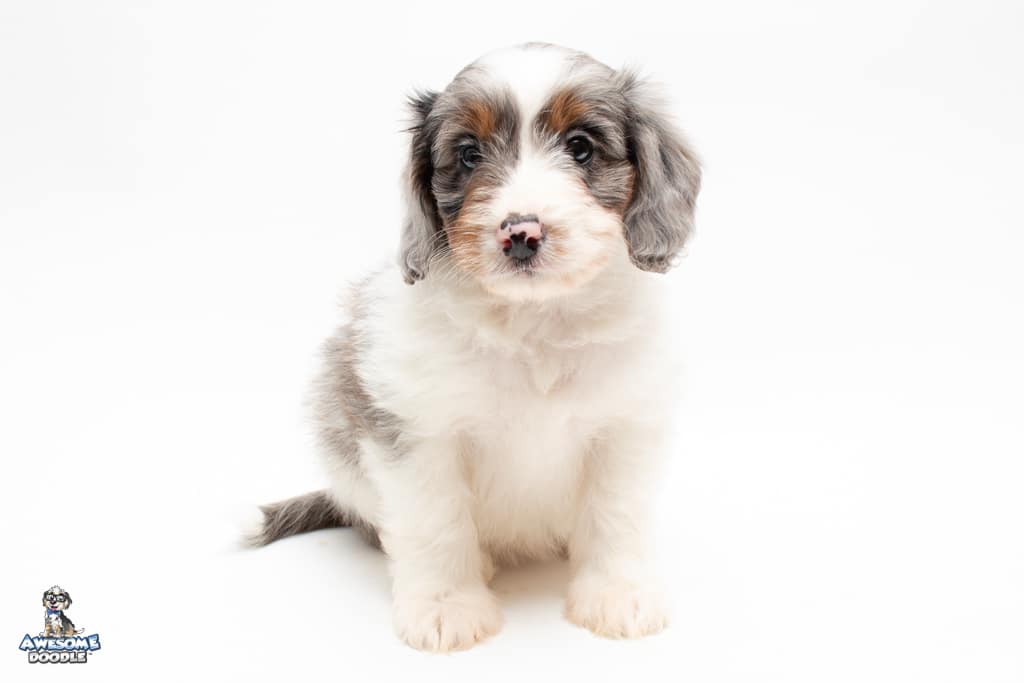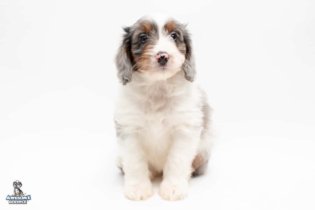 Belle is a female Blue Merle w/ White & Copper F1 AussieDoodle puppy.