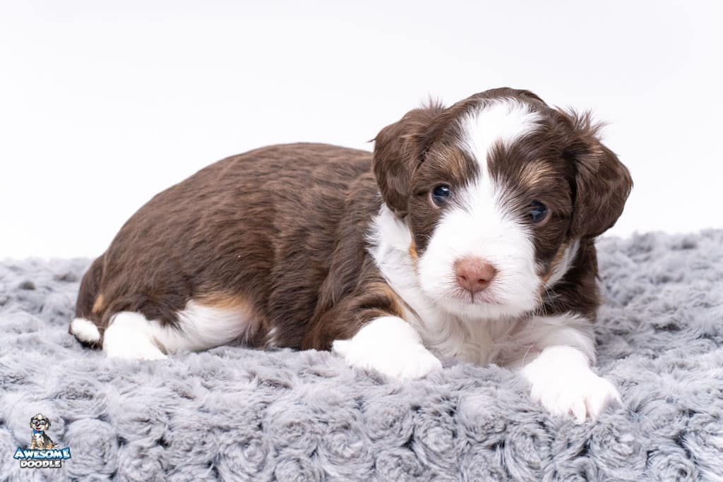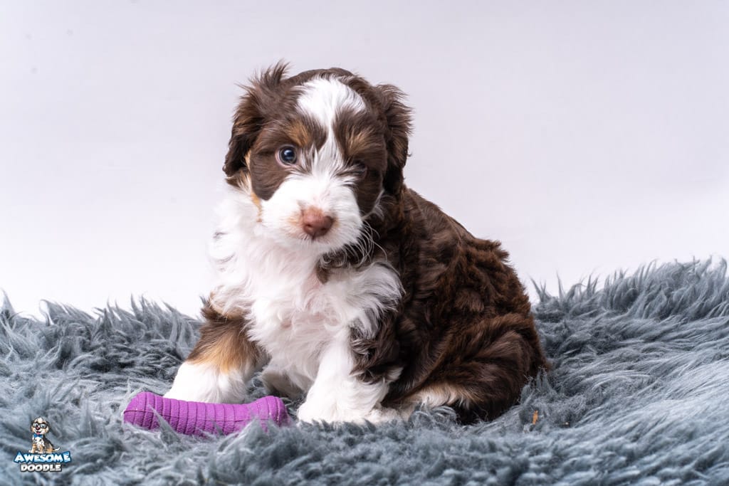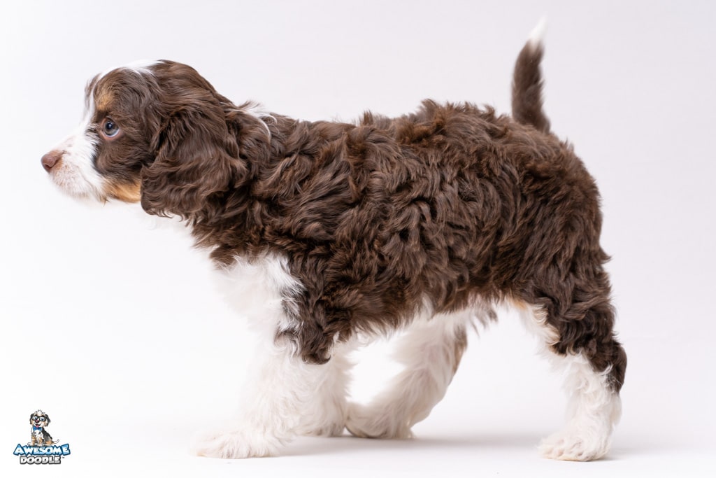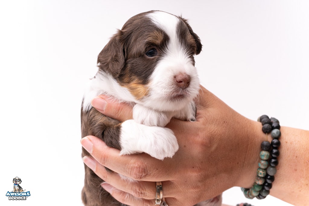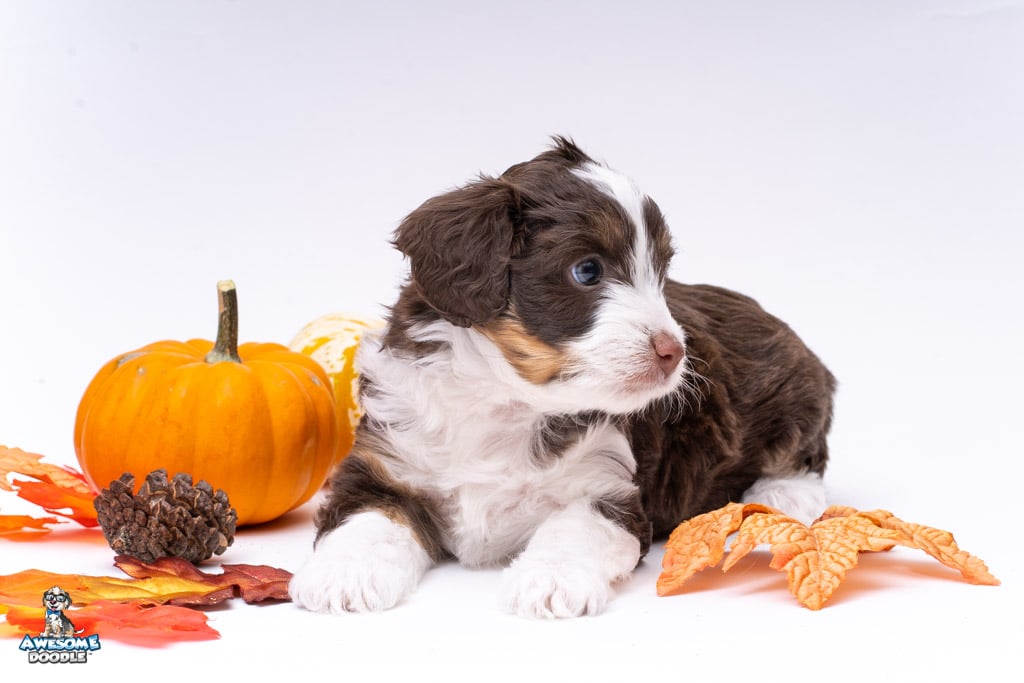 Malty is a male Chocolate Tri-Color F1 AussieDoodle puppy.