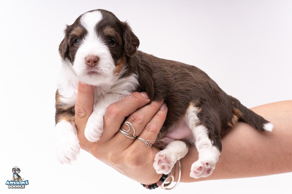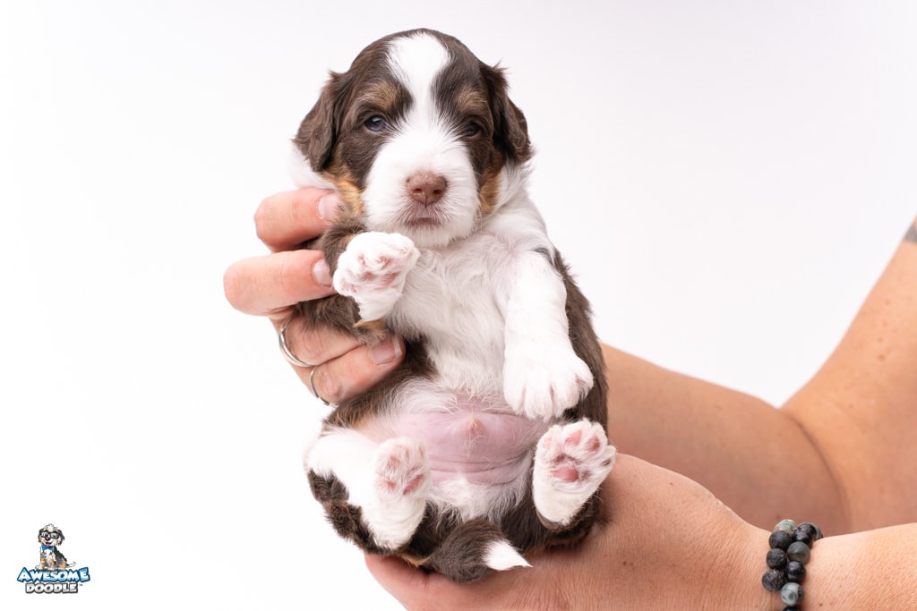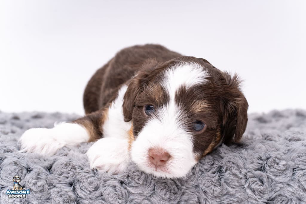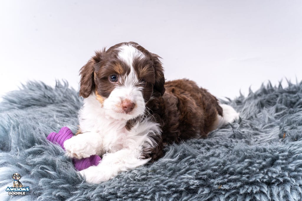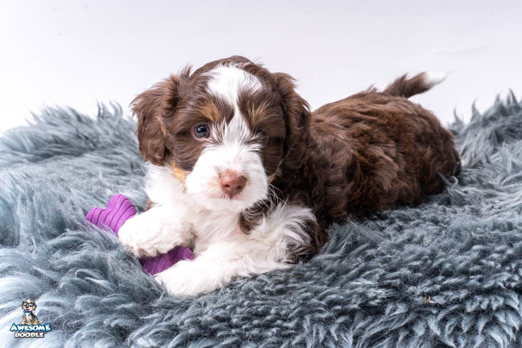 Malty is a male Chocolate Tri-Color F1 AussieDoodle puppy.