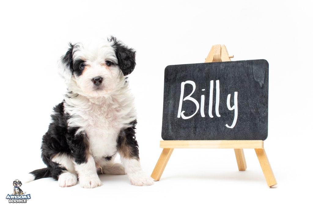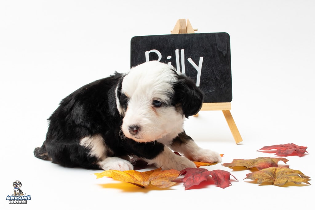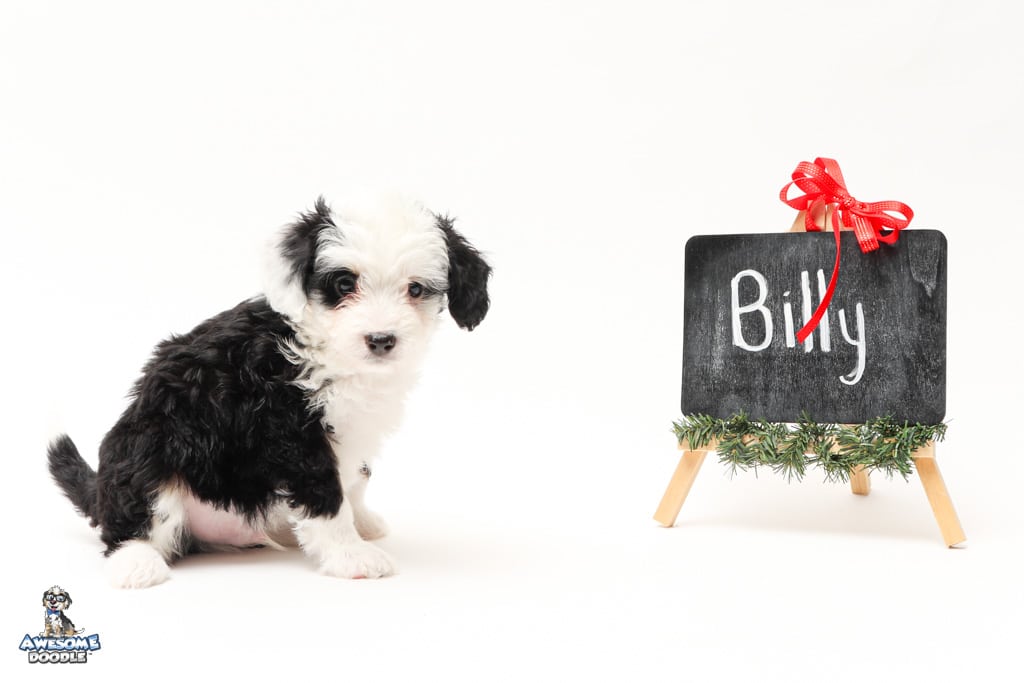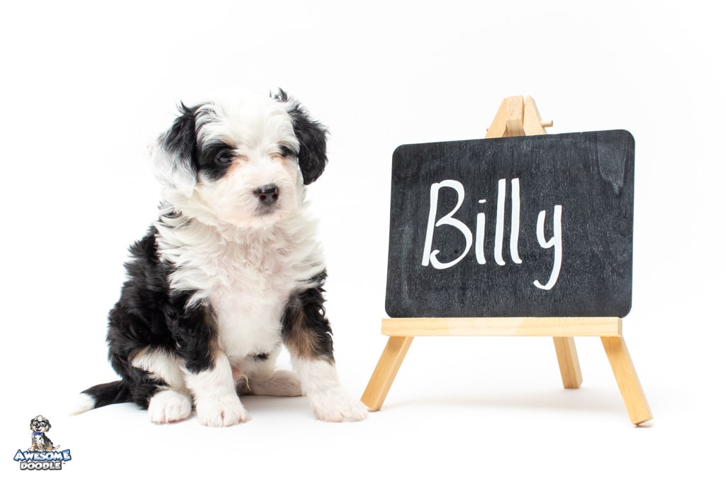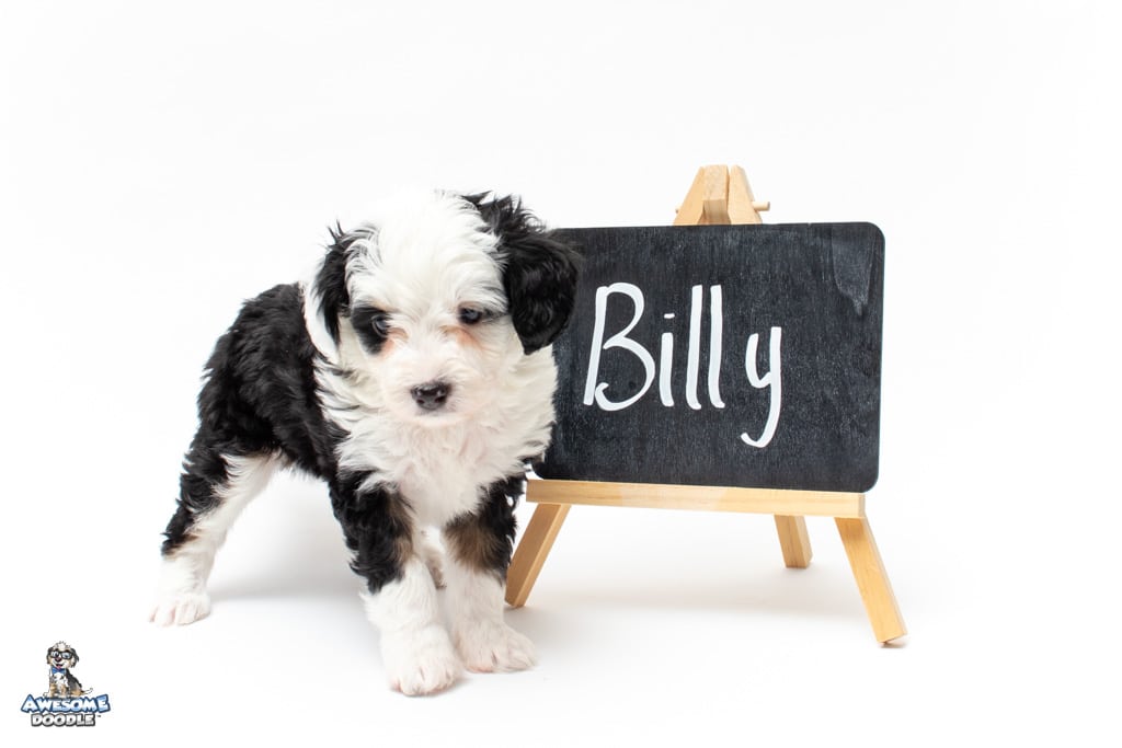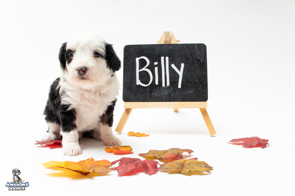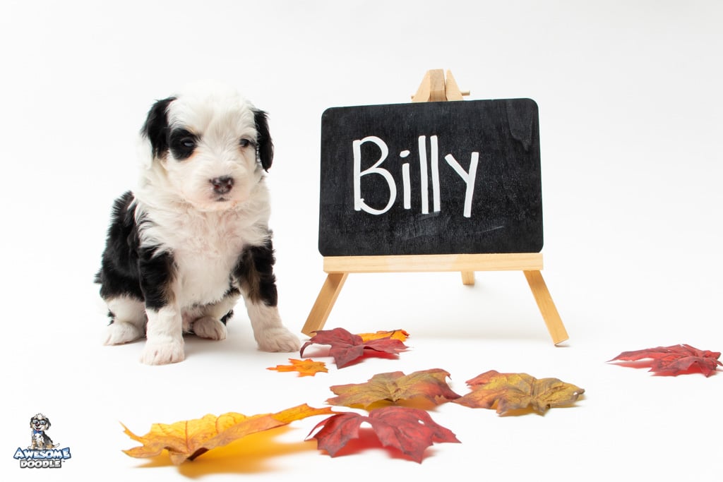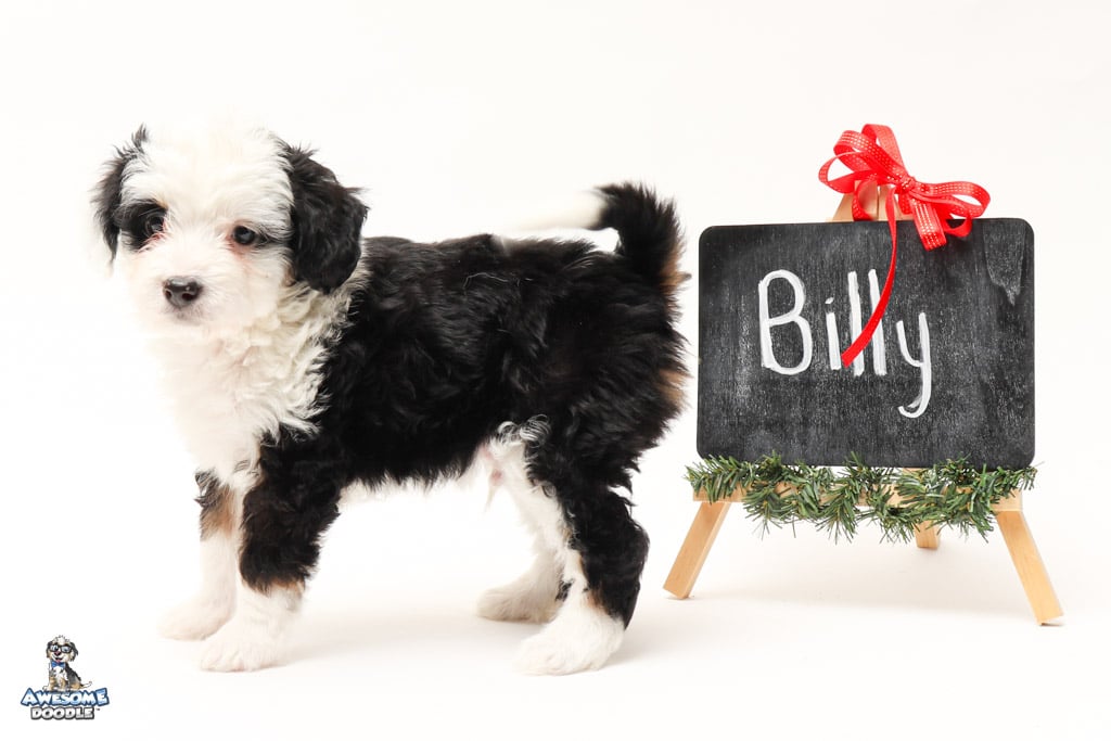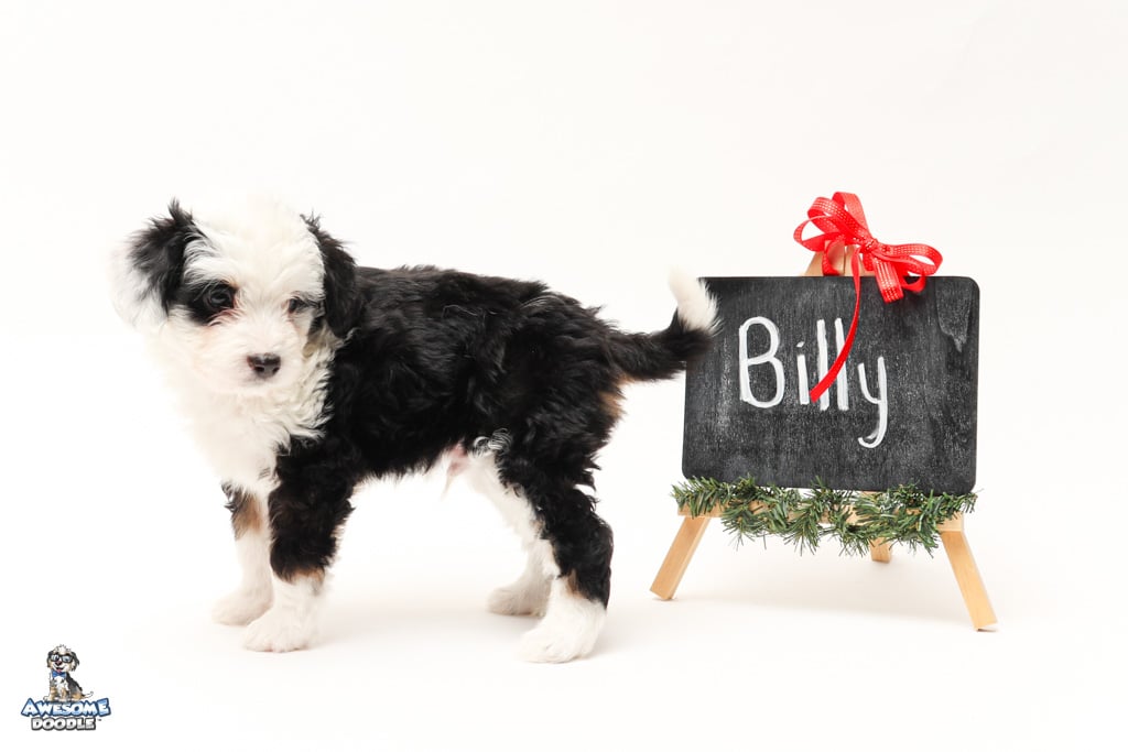 Billy is a male Black Tri-Color F1 AussieDoodle puppy.