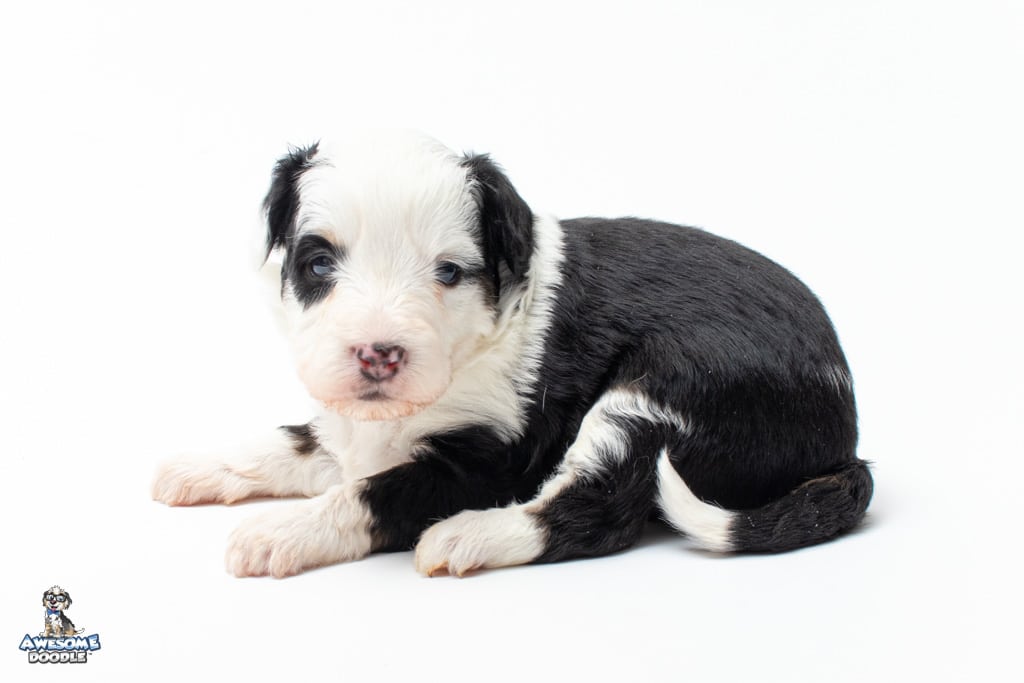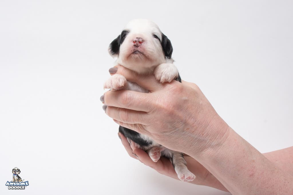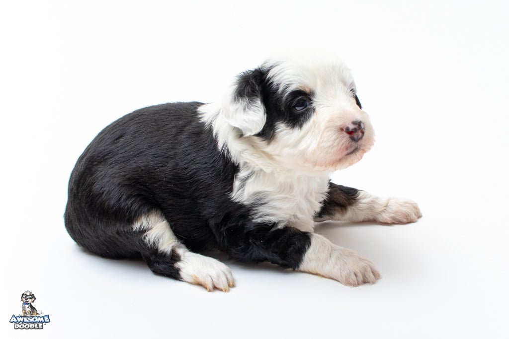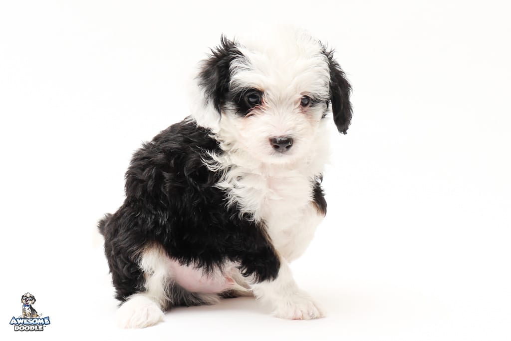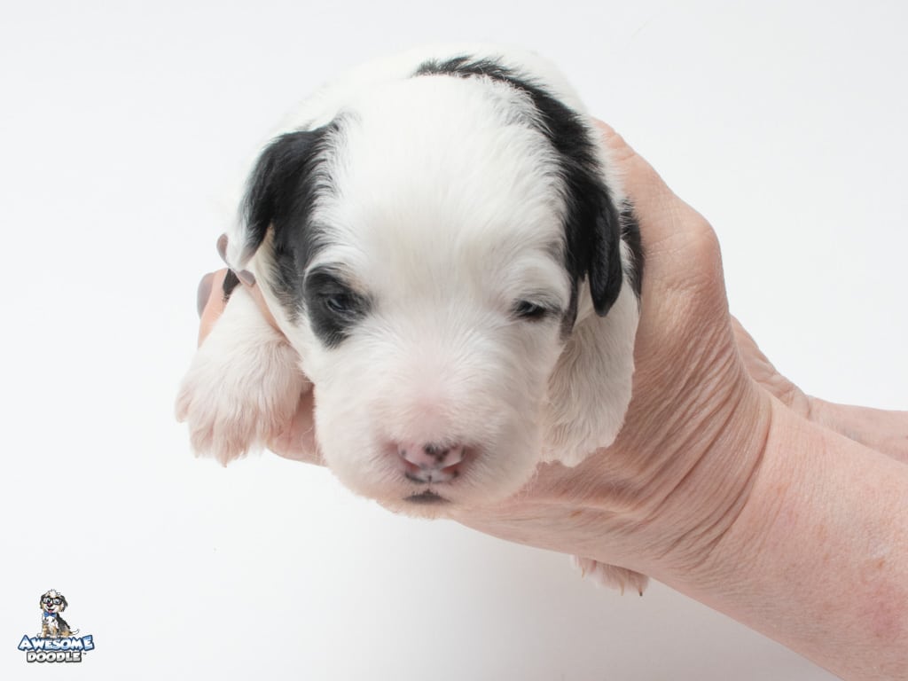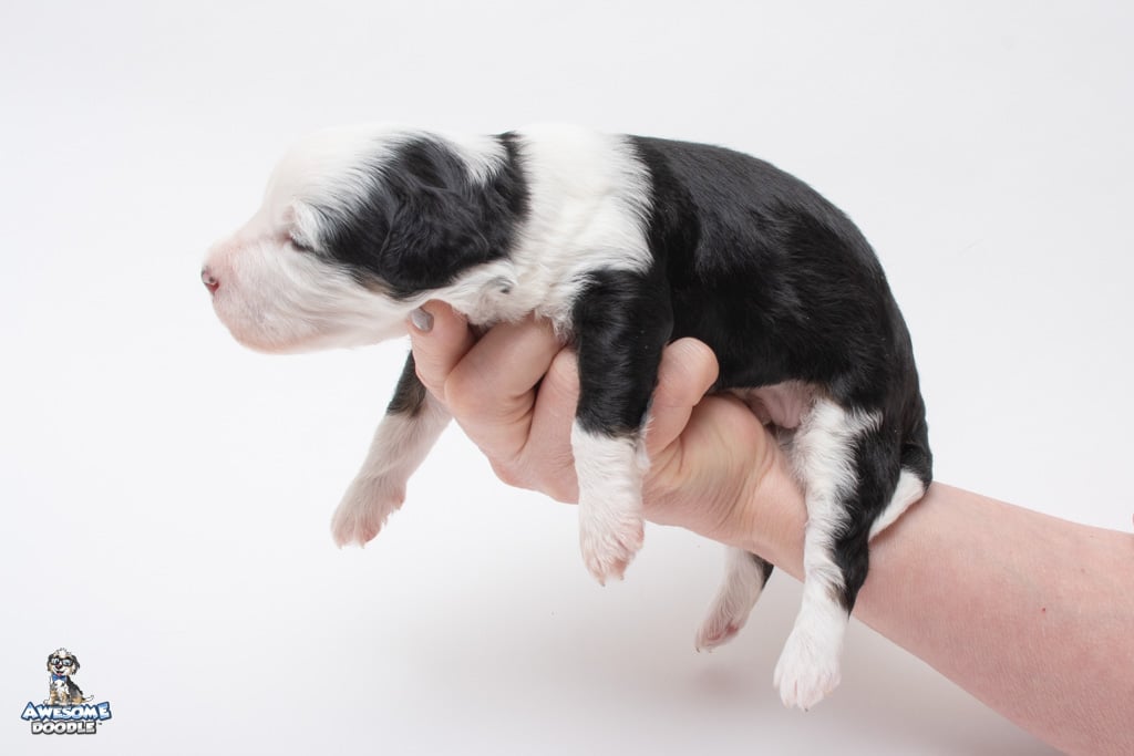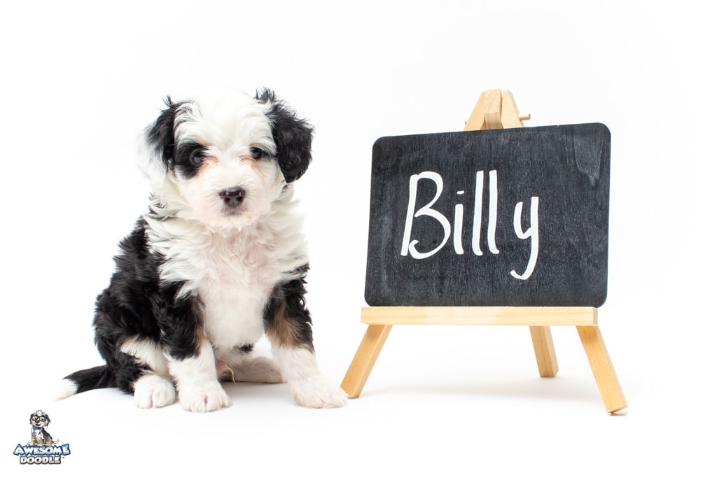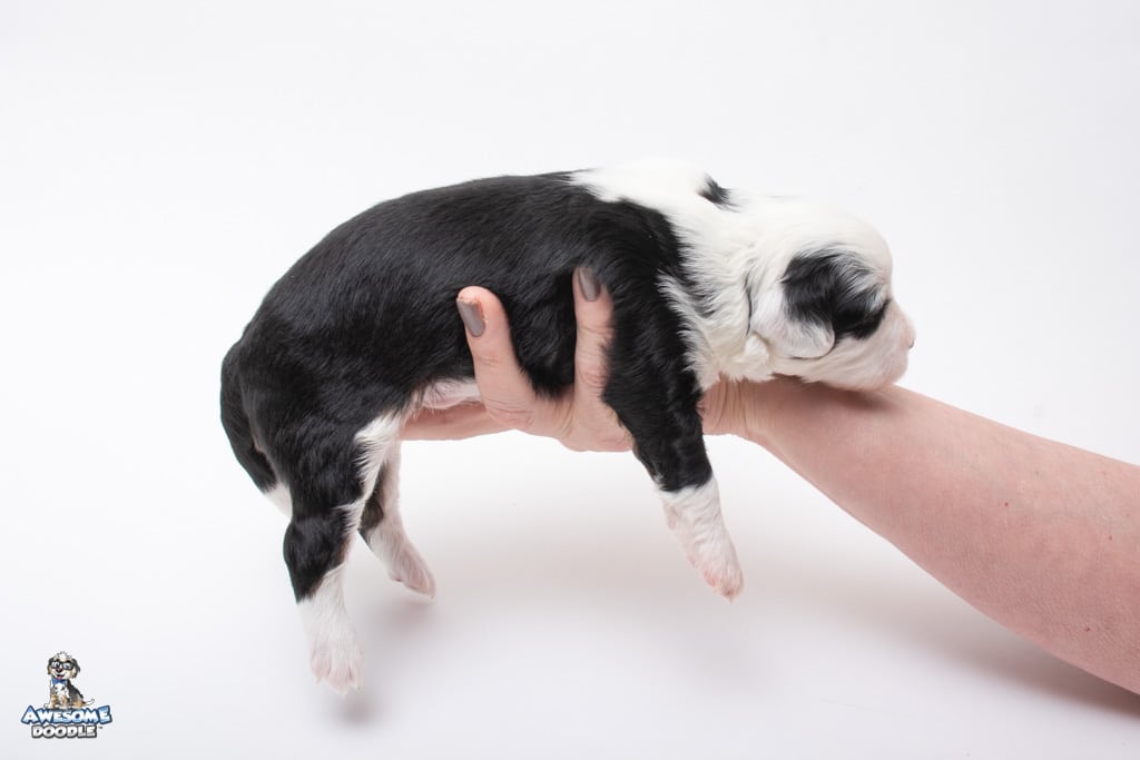 Billy is a male Black Tri-Color F1 AussieDoodle puppy.