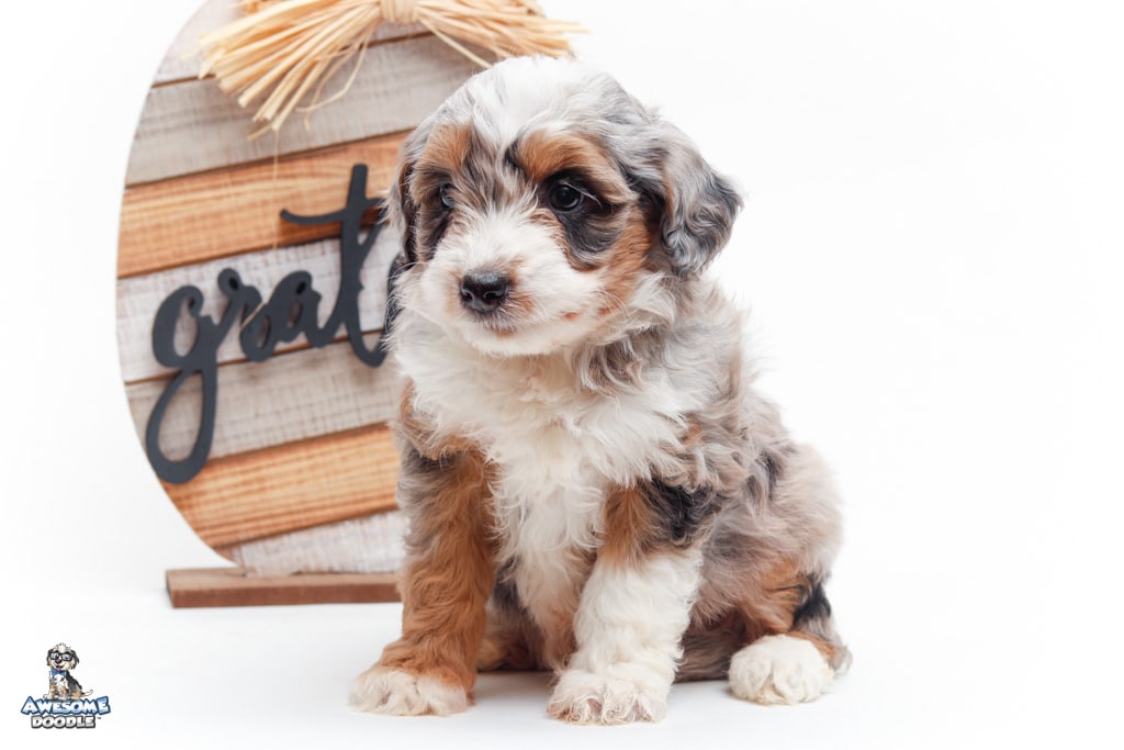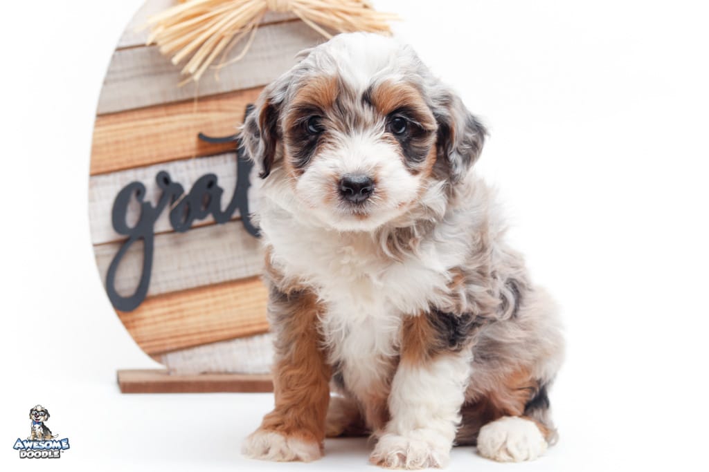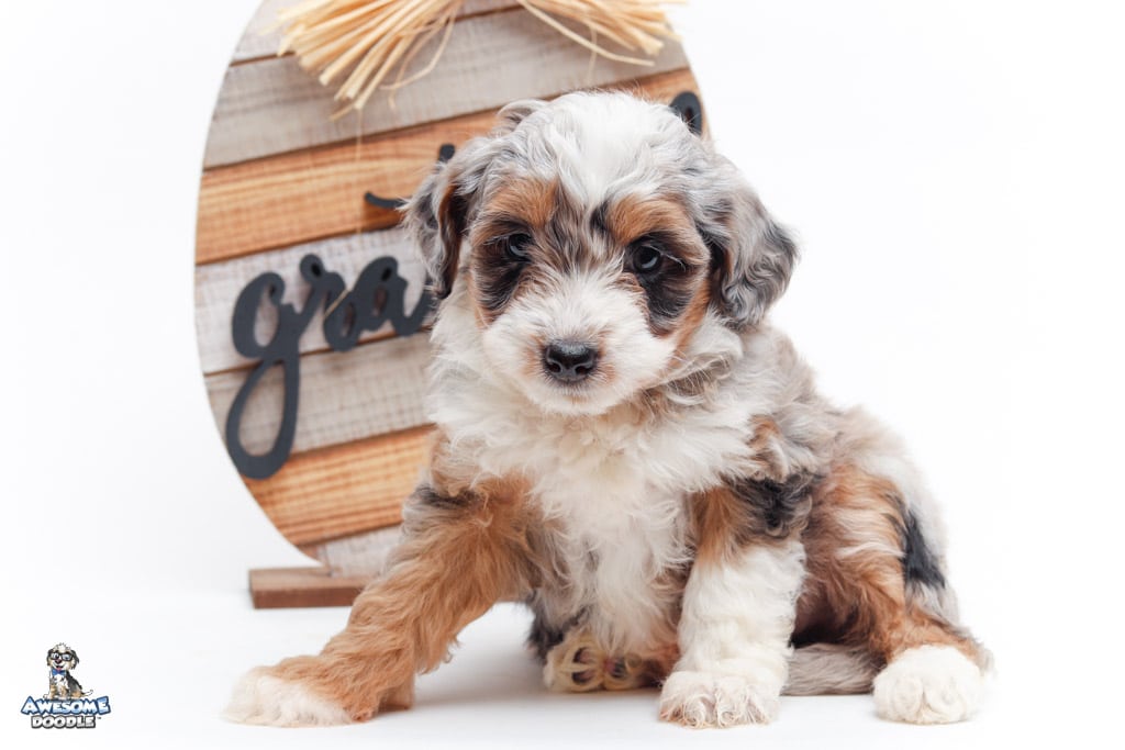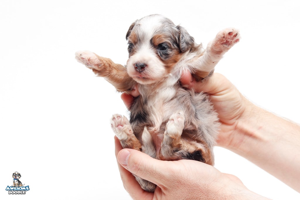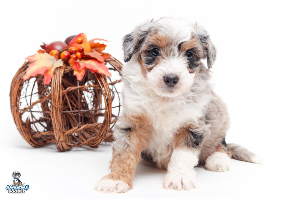 Sophie is a female Blue Merle w/ White & Copper F1 AussieDoodle puppy.
