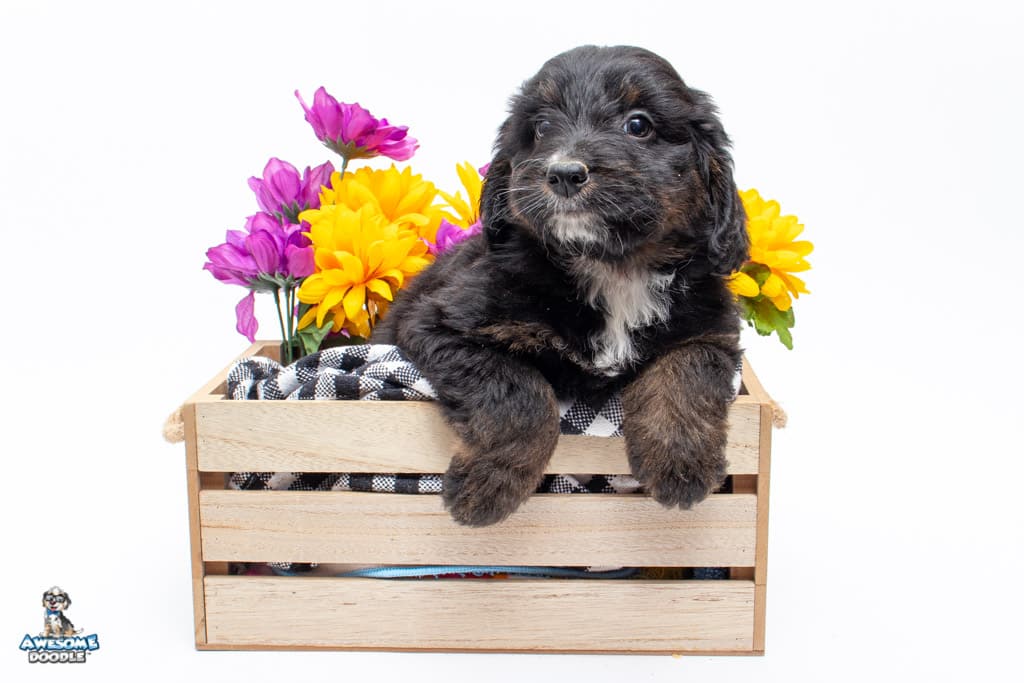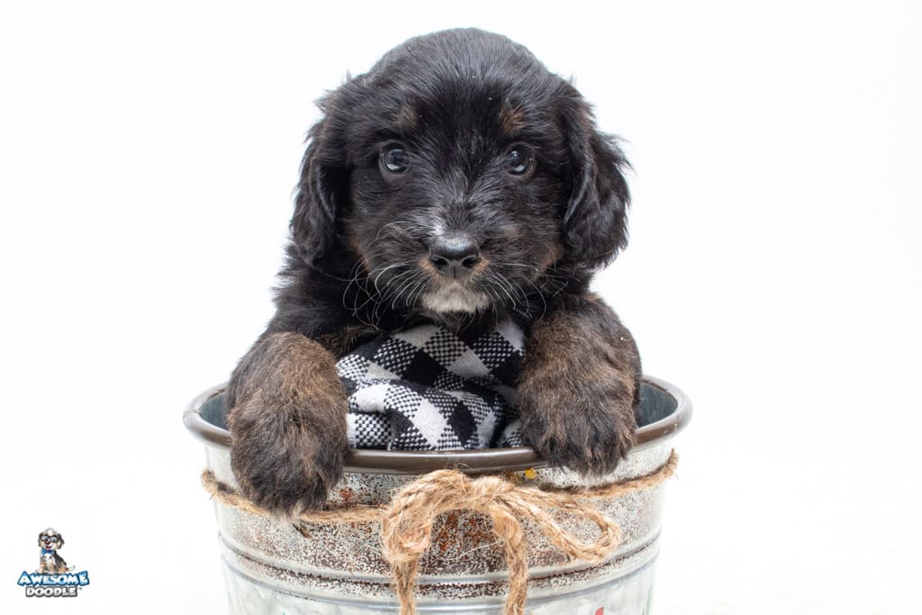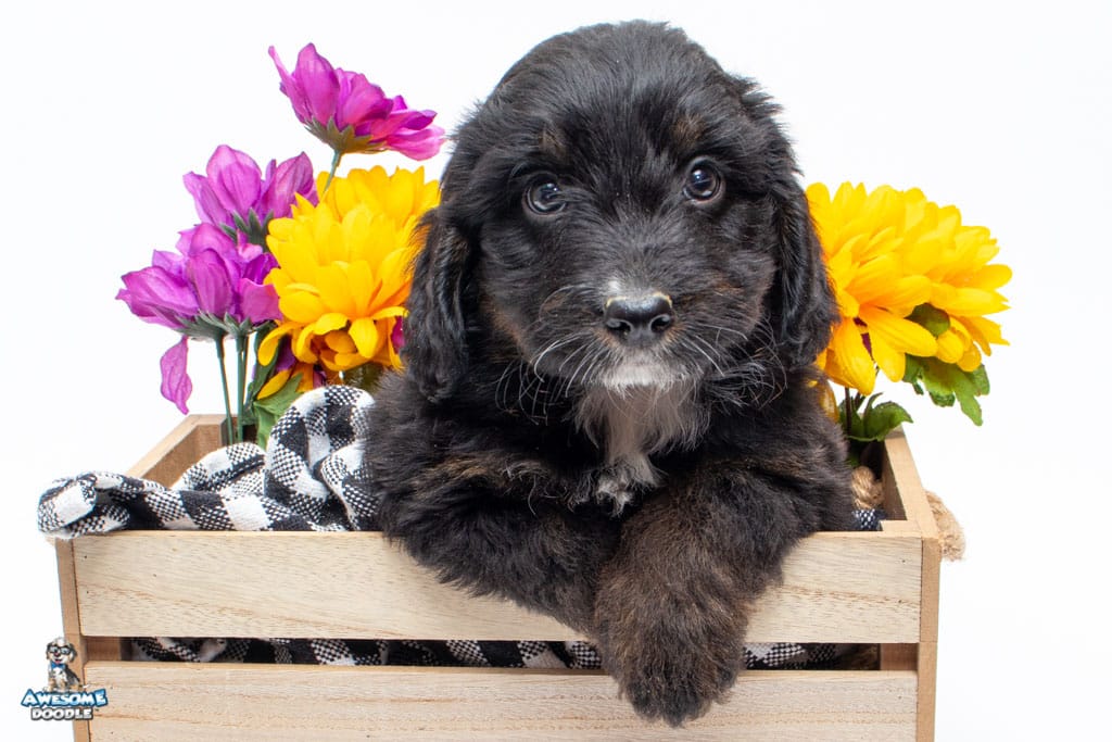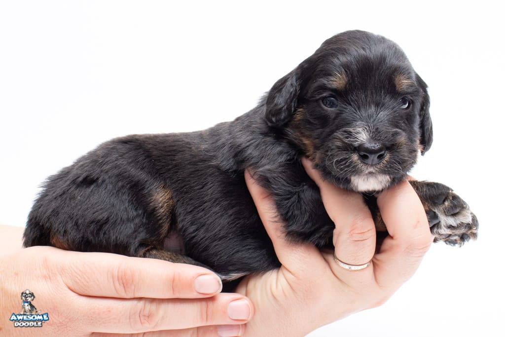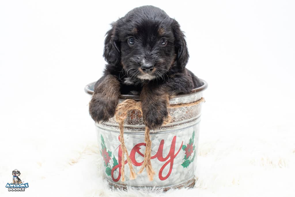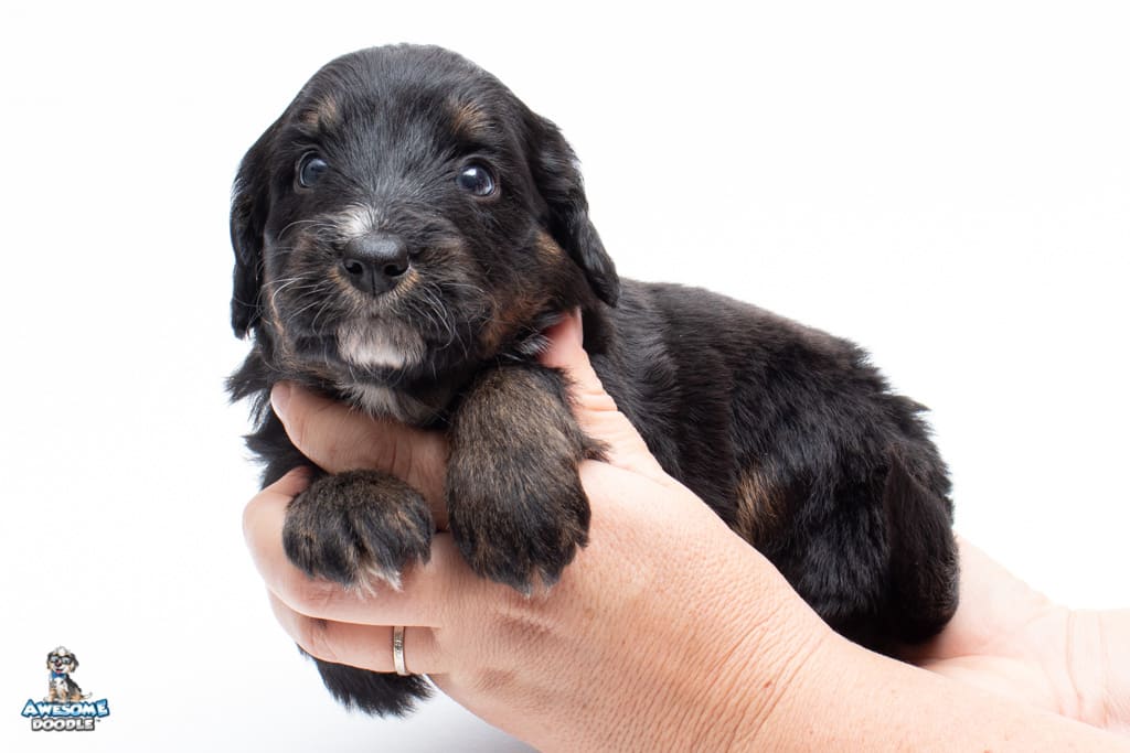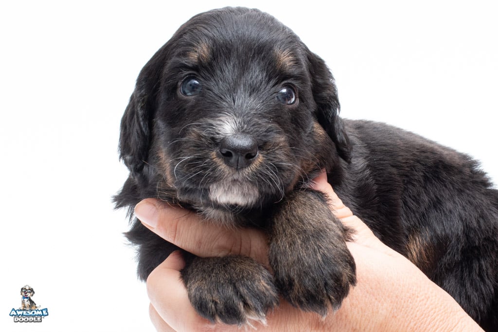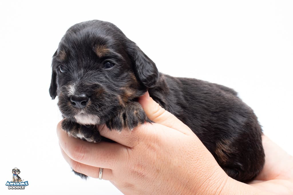 Cash is a male Black Phantom F1 AussieDoodle puppy.