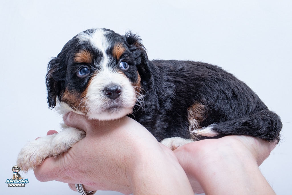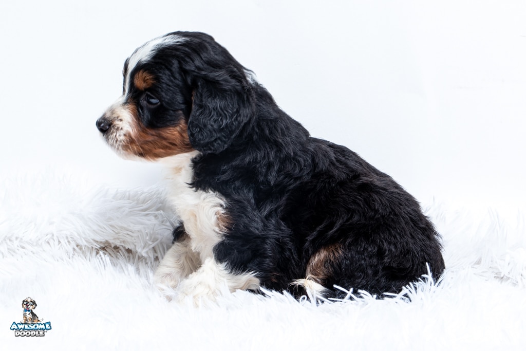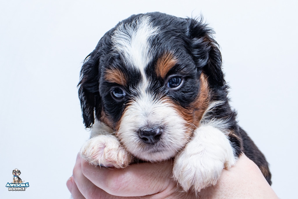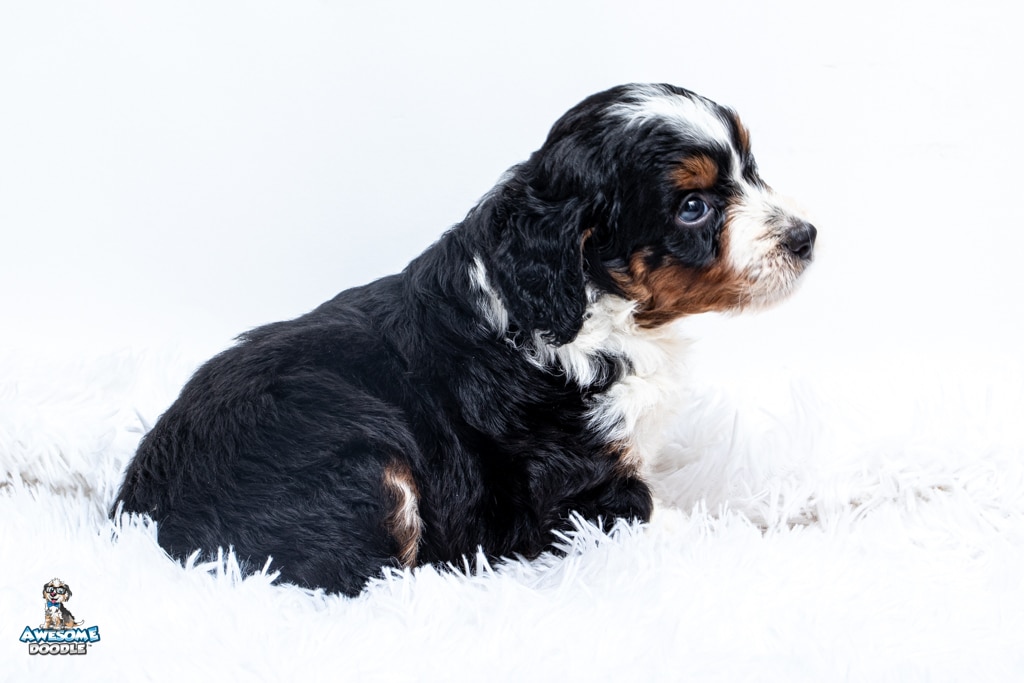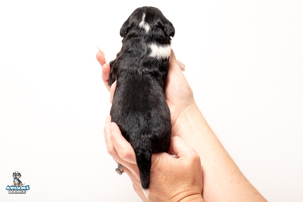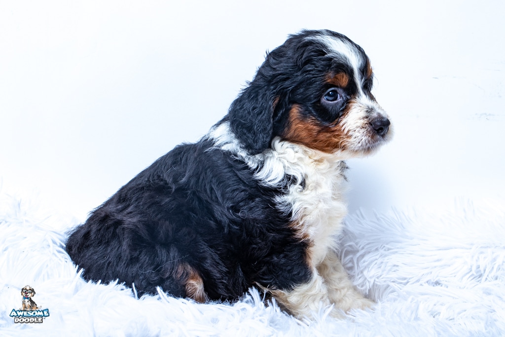Buddy is a male Black Tri-Color F1 AussieDoodle puppy.