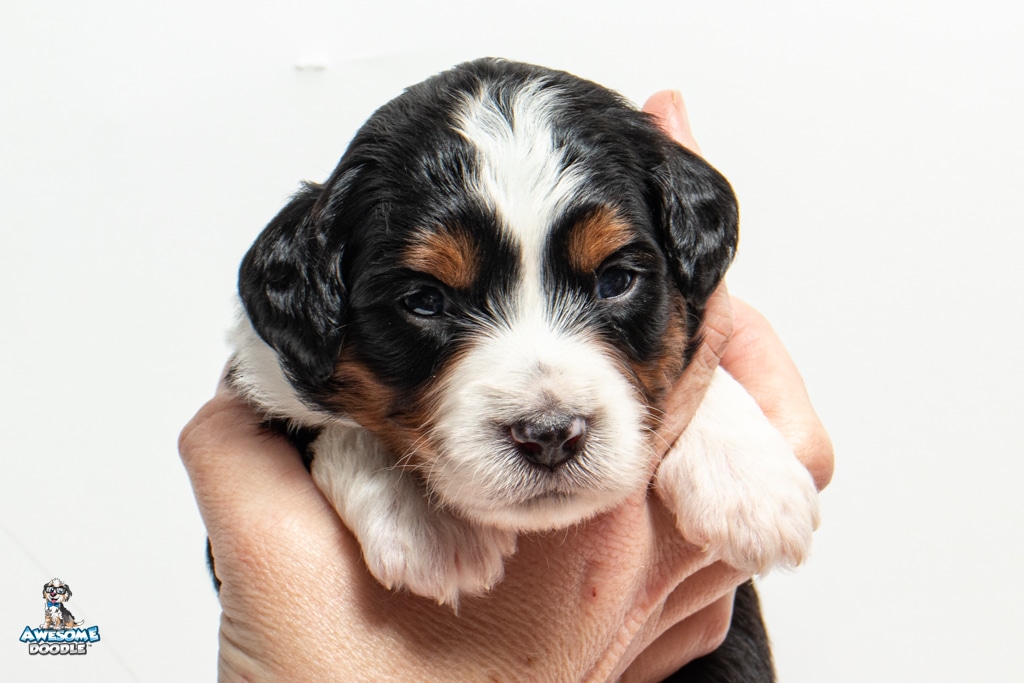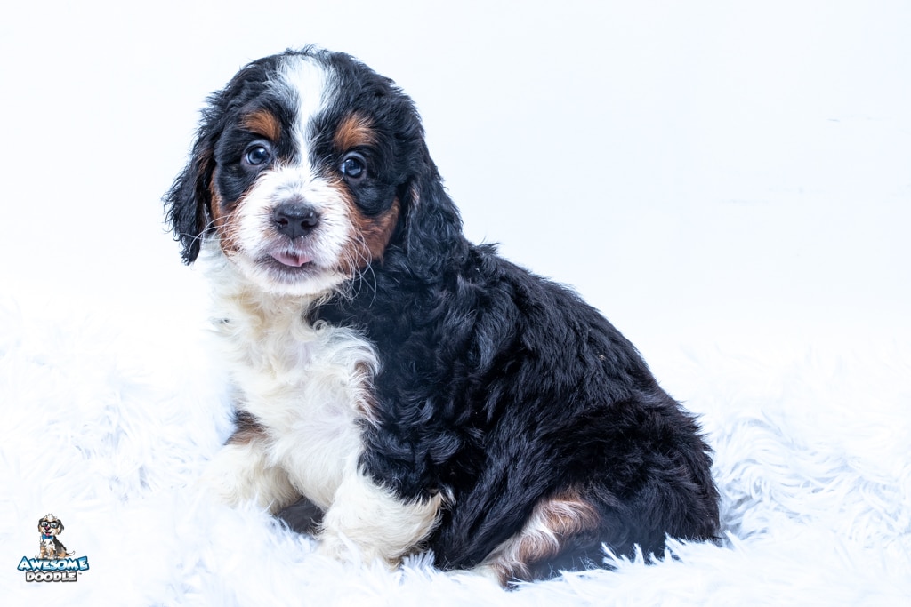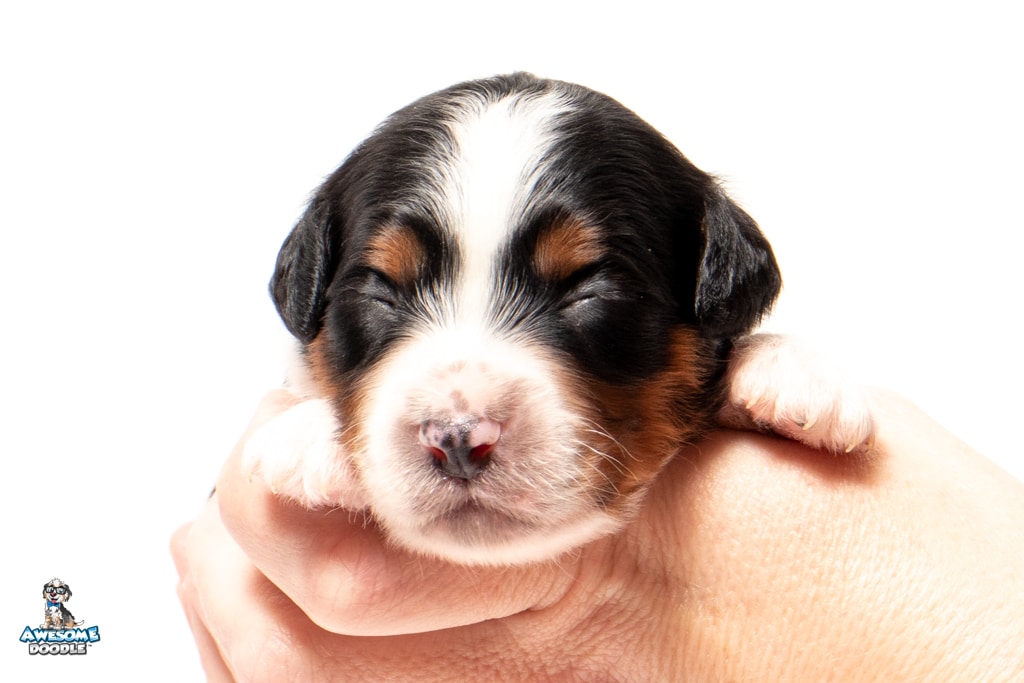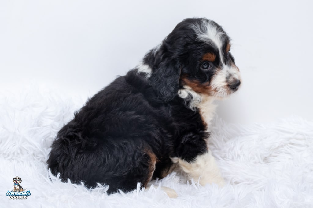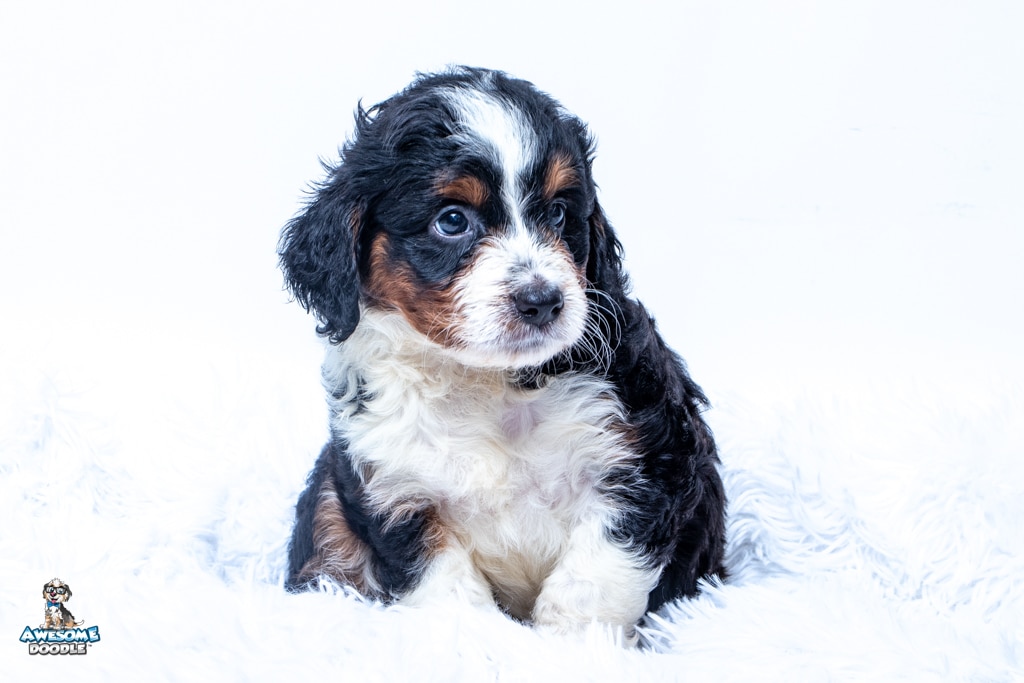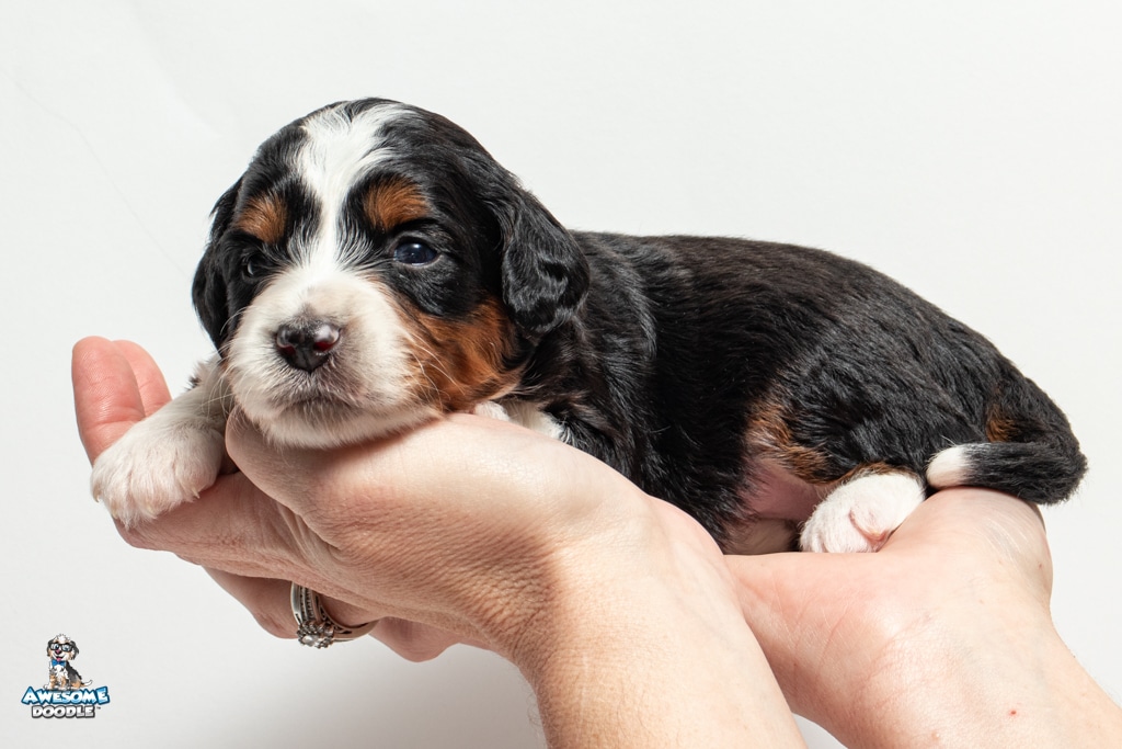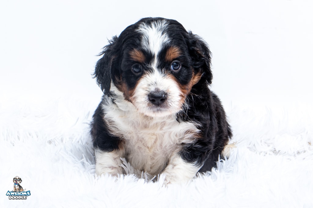 Buddy is a male Black Tri-Color F1 AussieDoodle puppy.