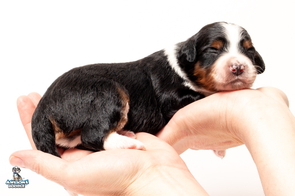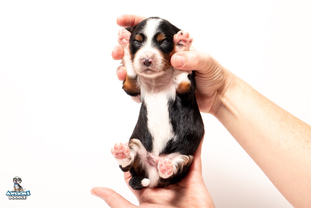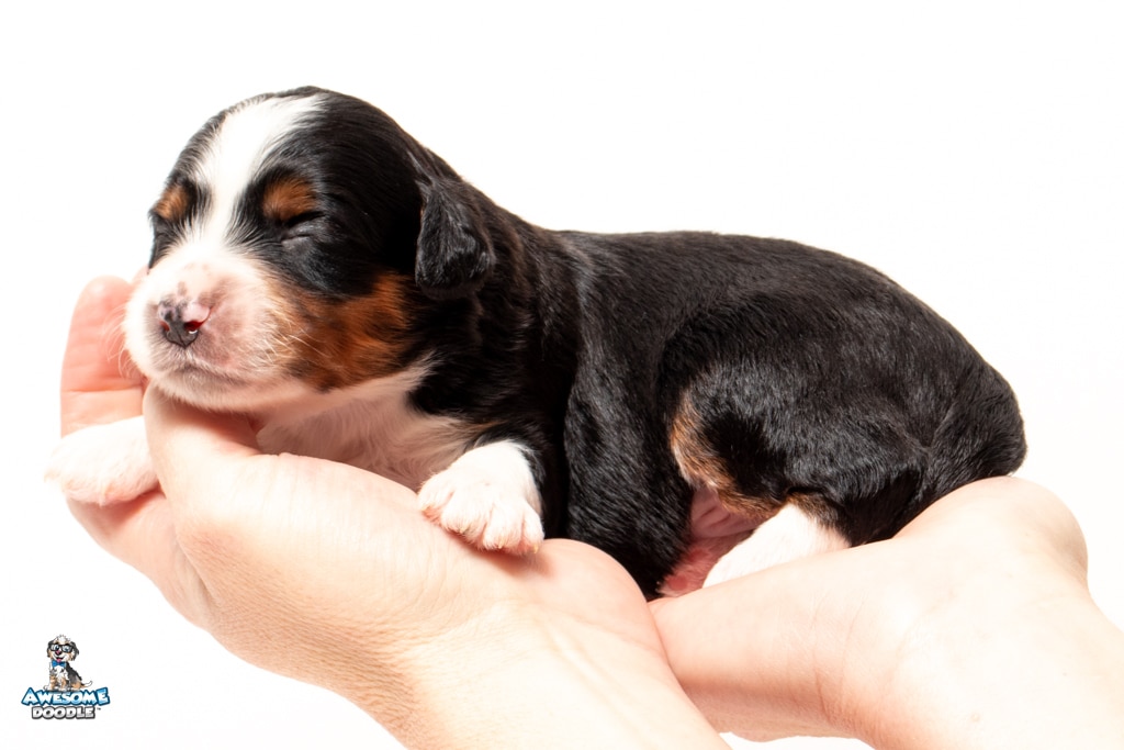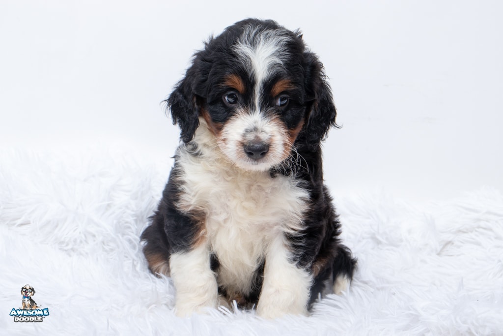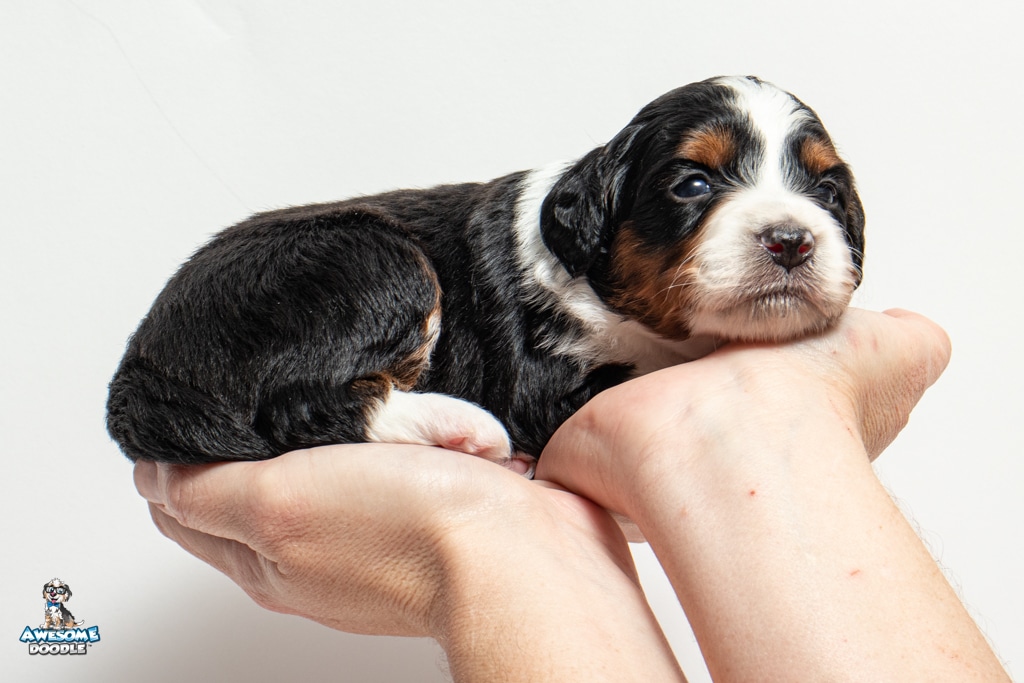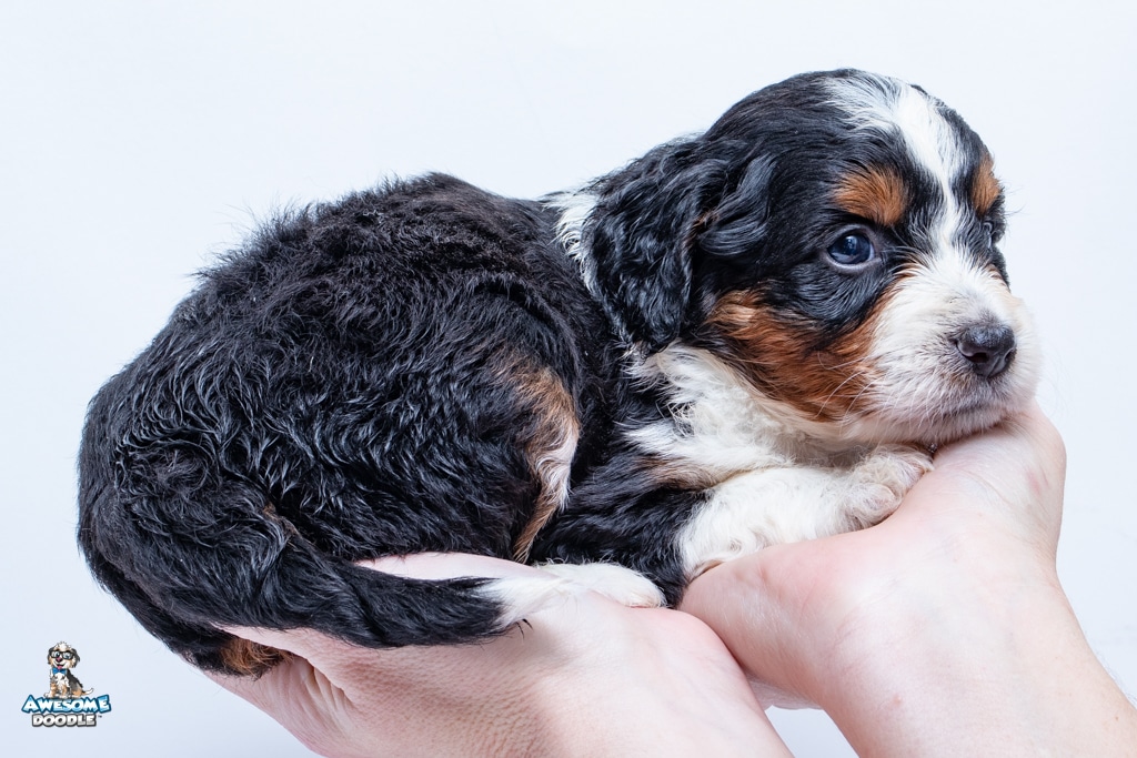Buddy is a male Black Tri-Color F1 AussieDoodle puppy.