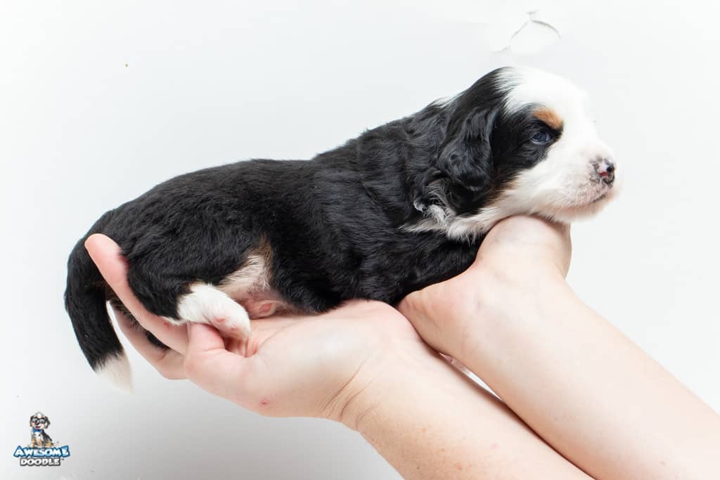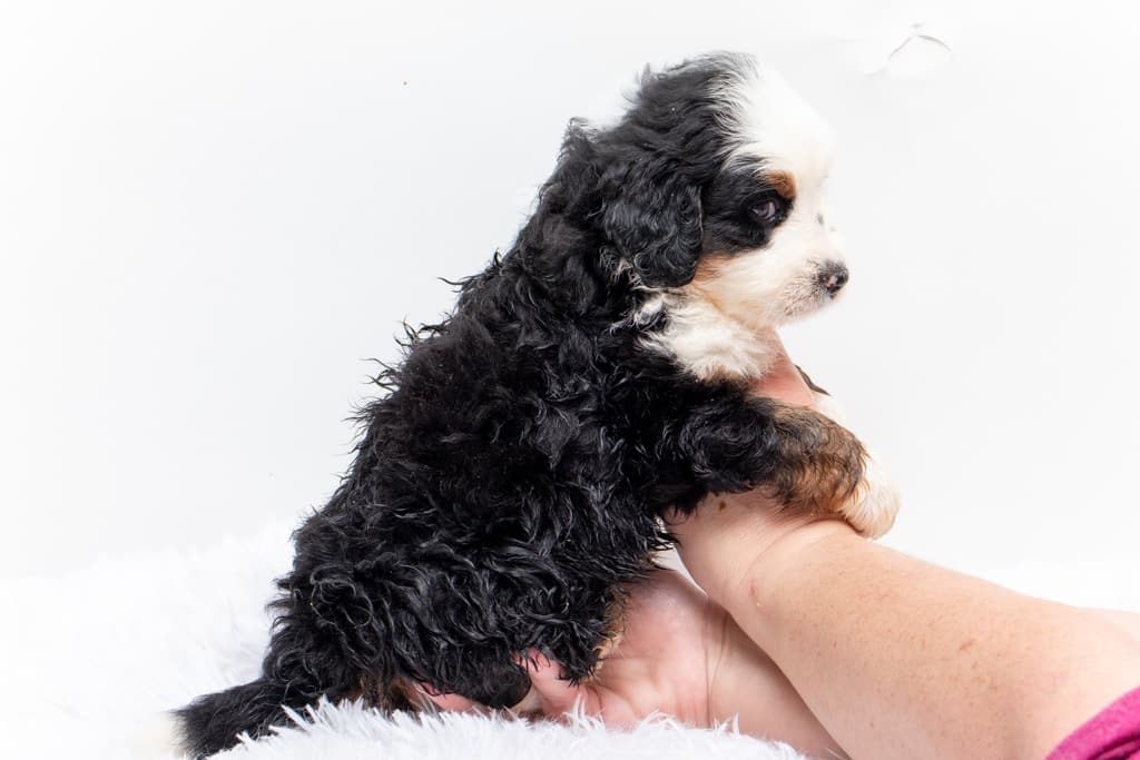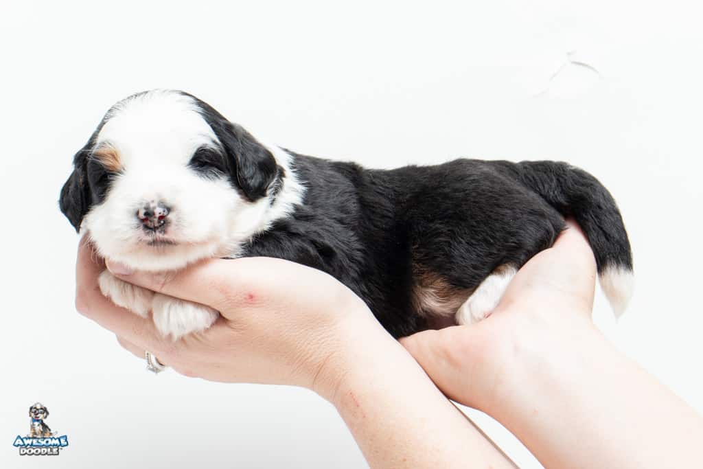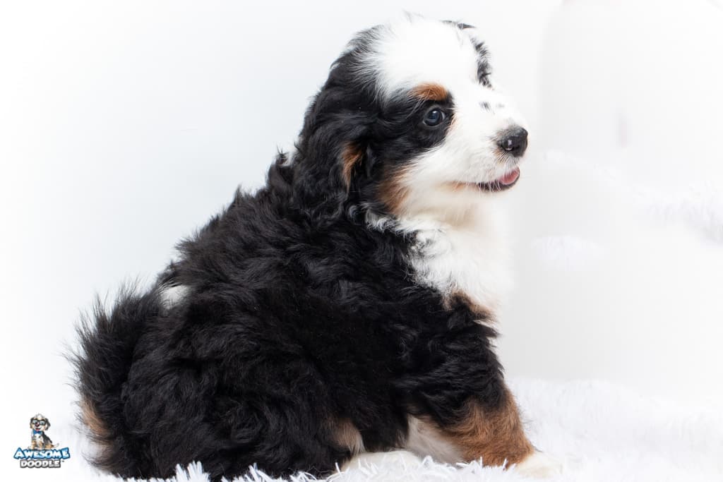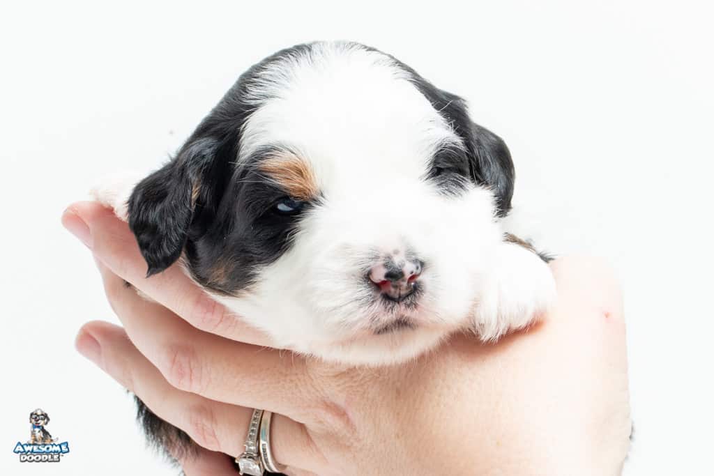 Camilo is a male Black Tri-Color F1 AussieDoodle puppy.