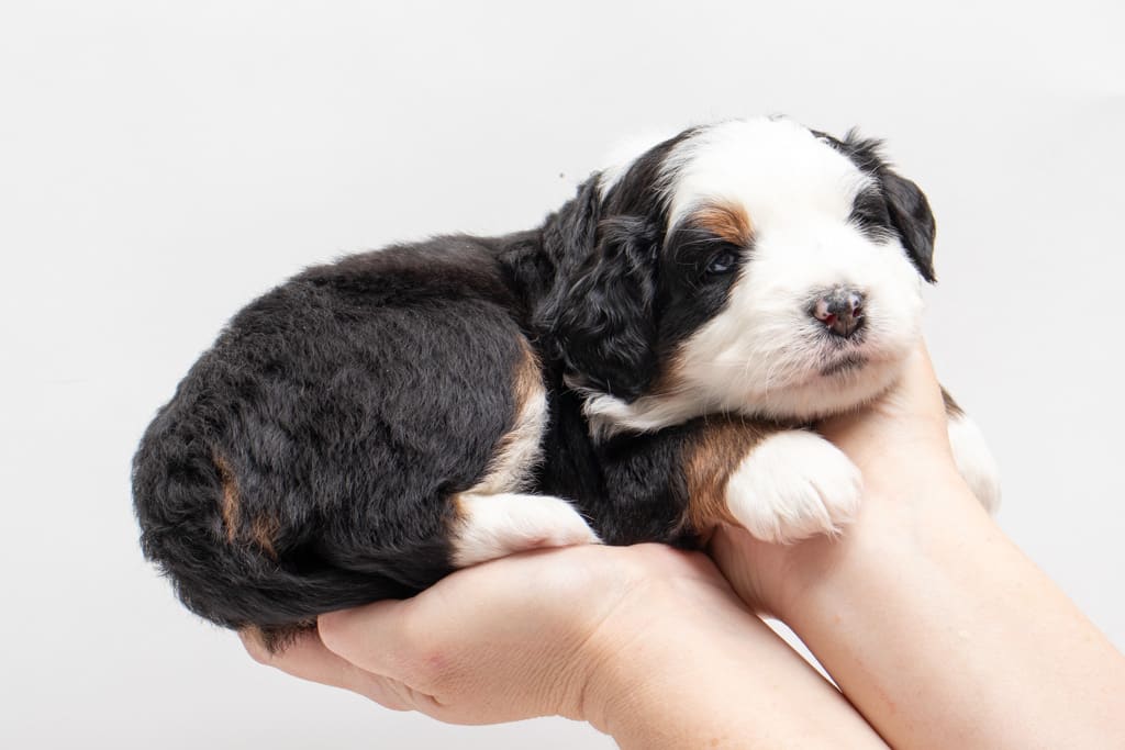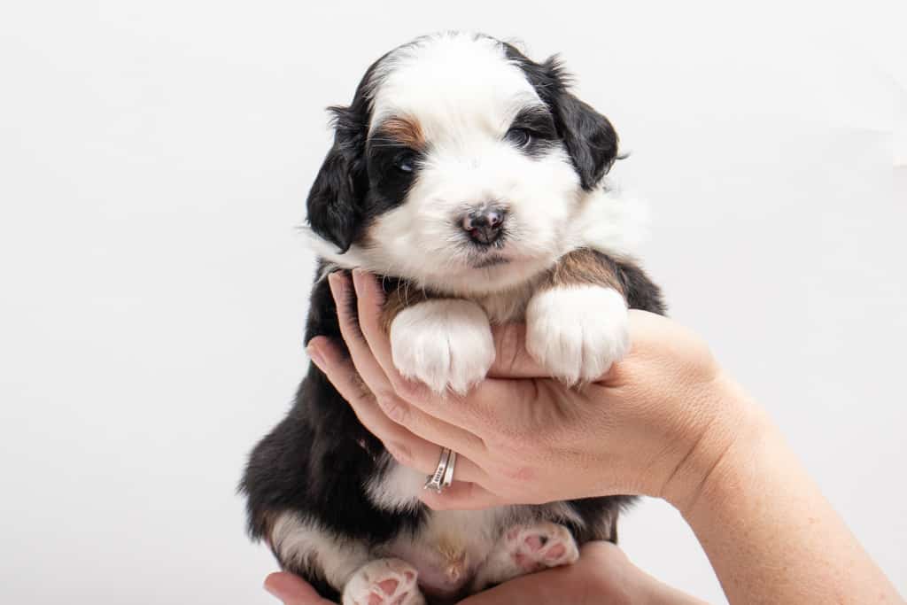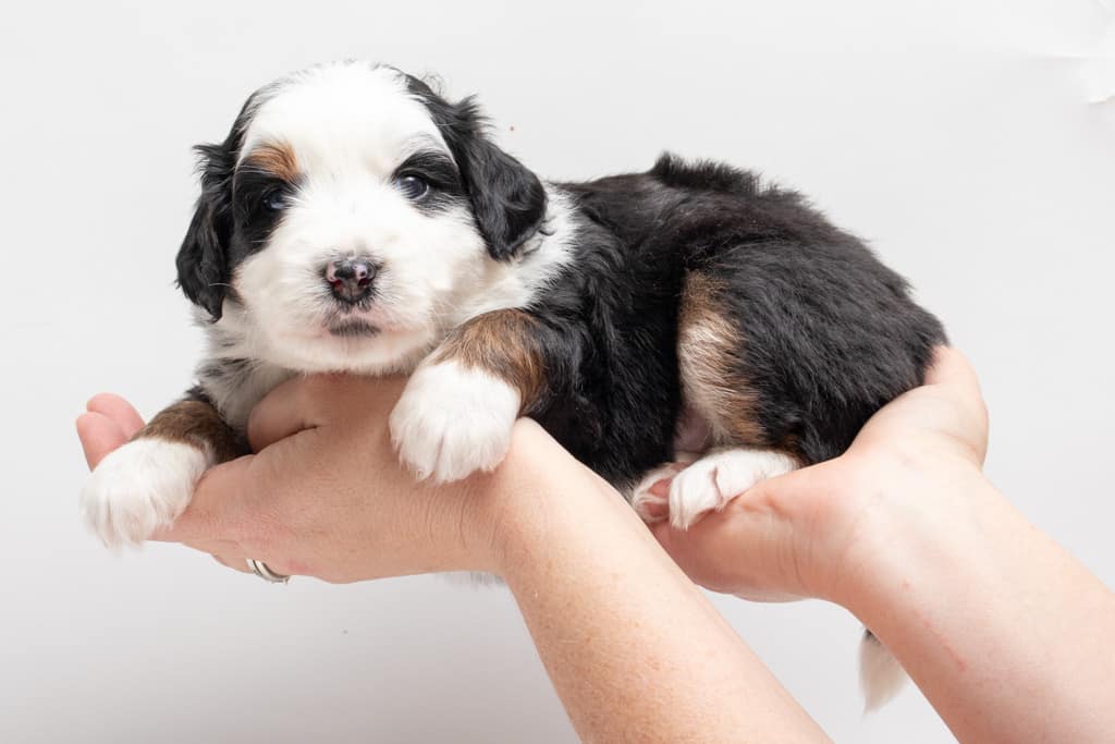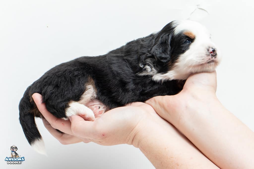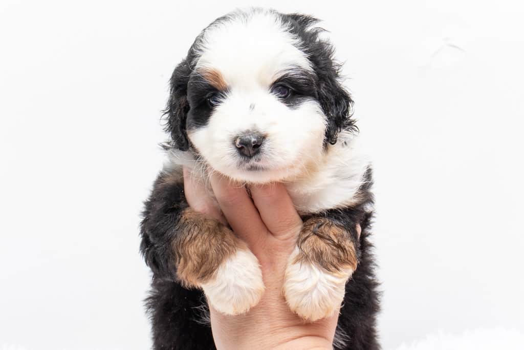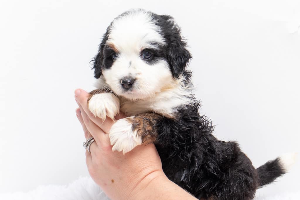 Camilo is a male Black Tri-Color F1 AussieDoodle puppy.