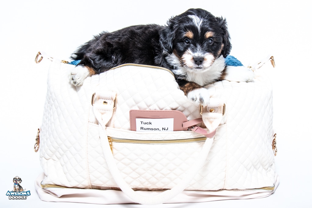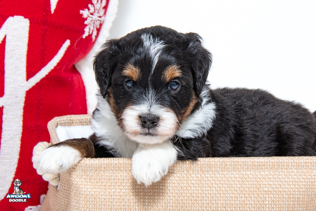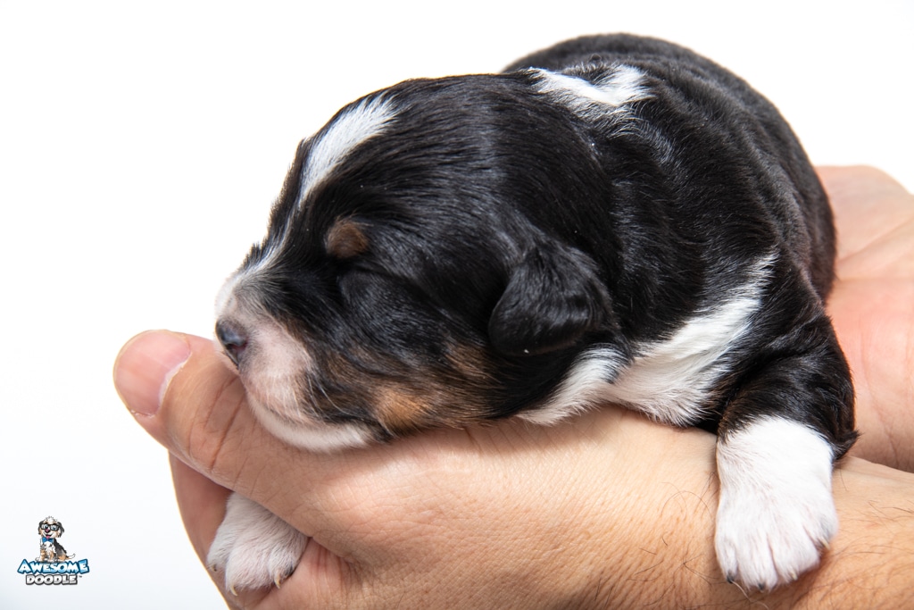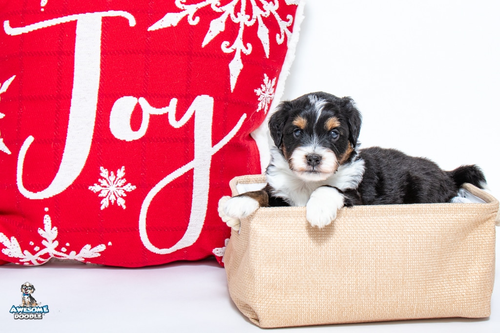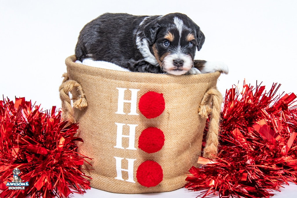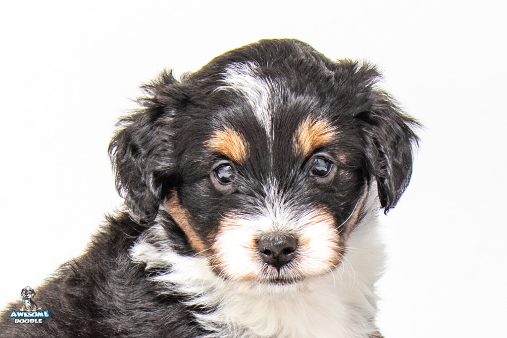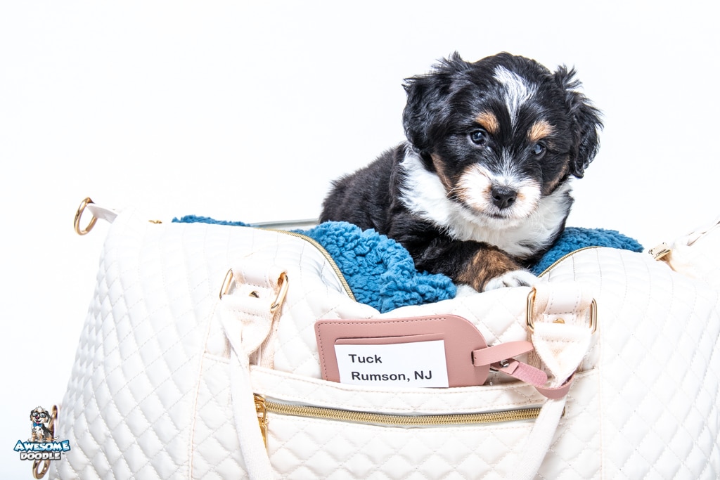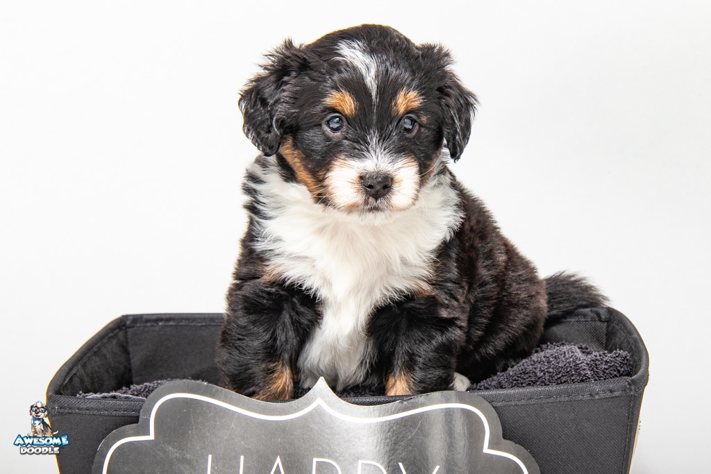 Tuck is a male Black Tri-Color F1 AussieDoodle puppy.