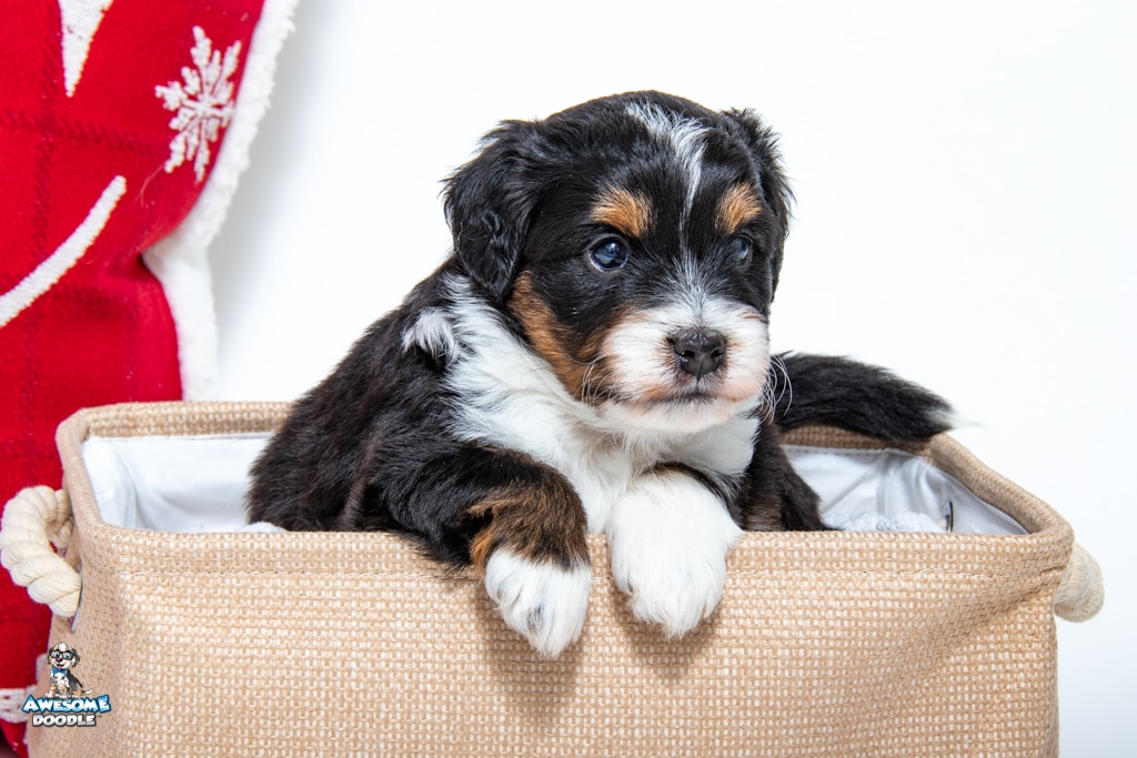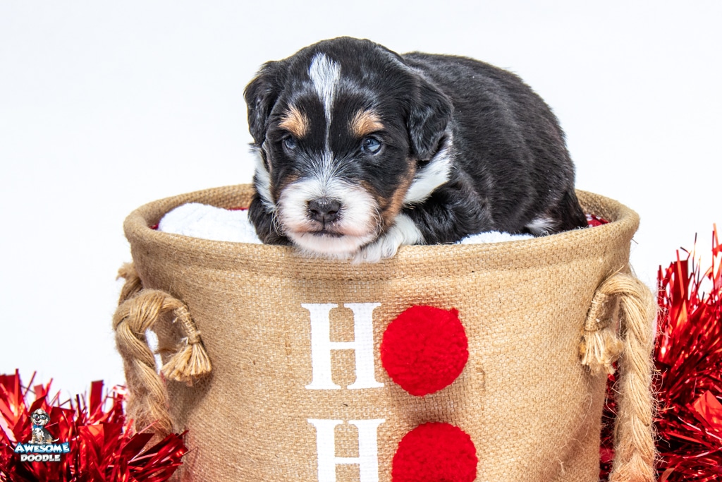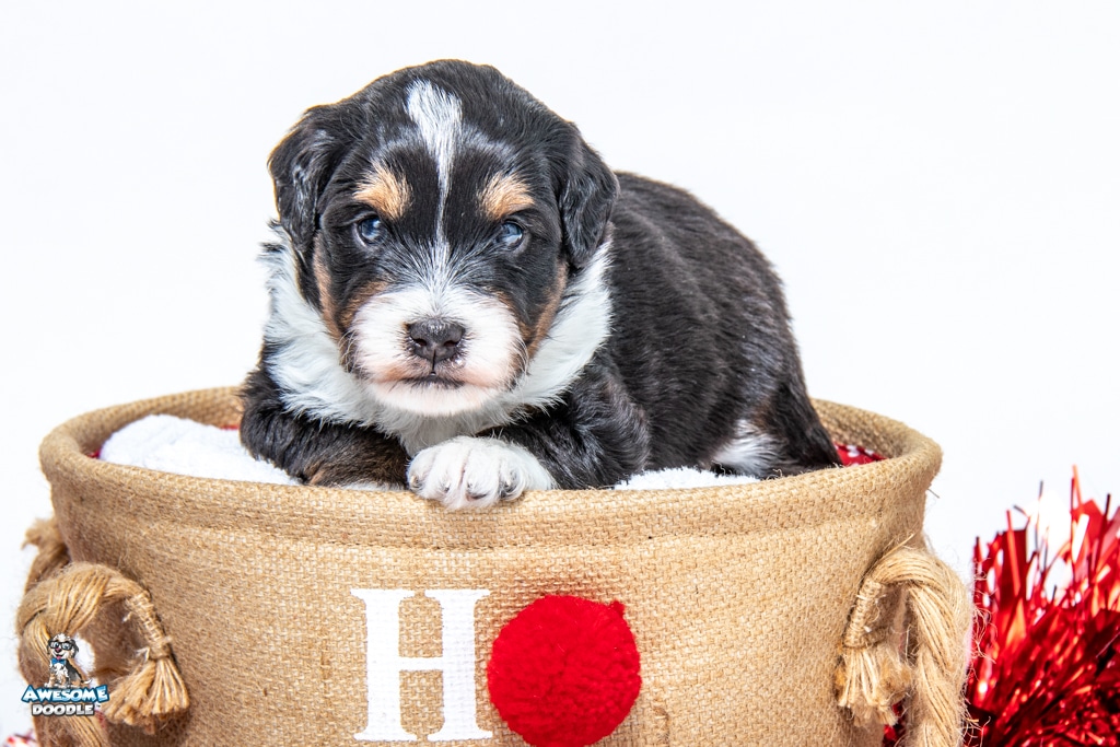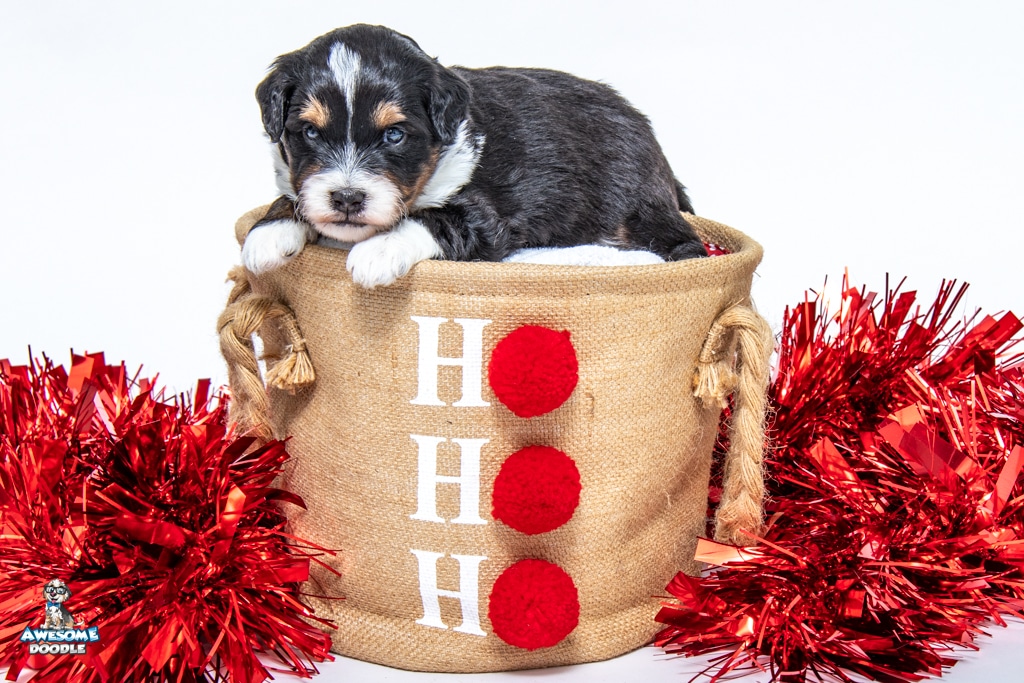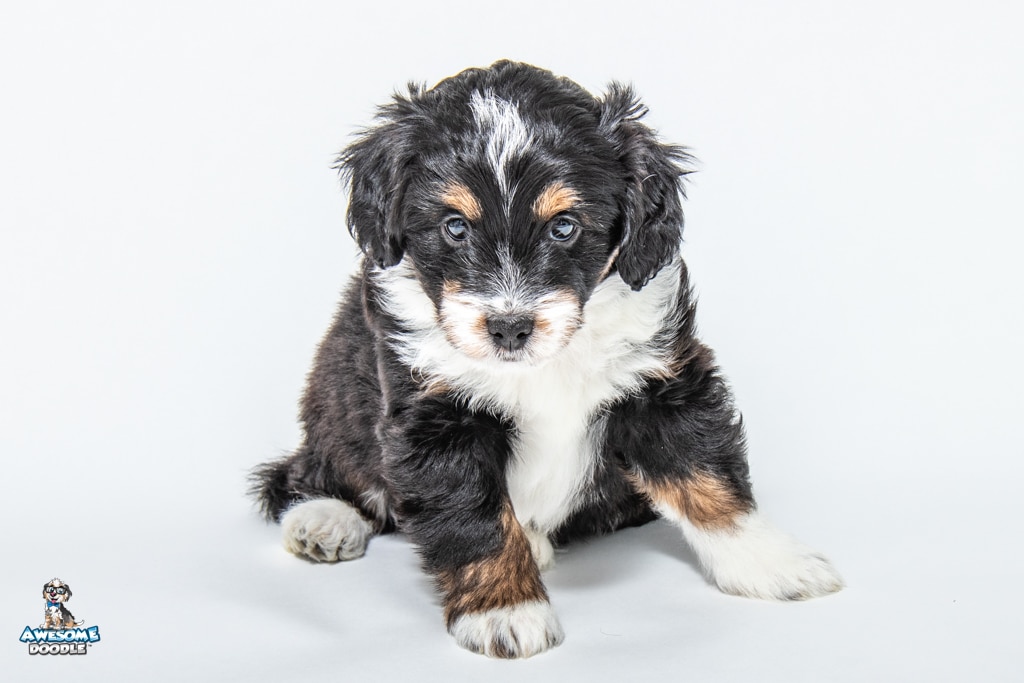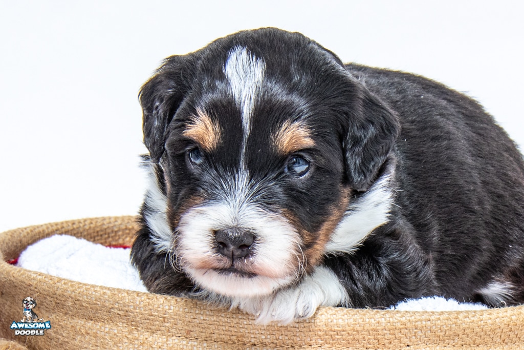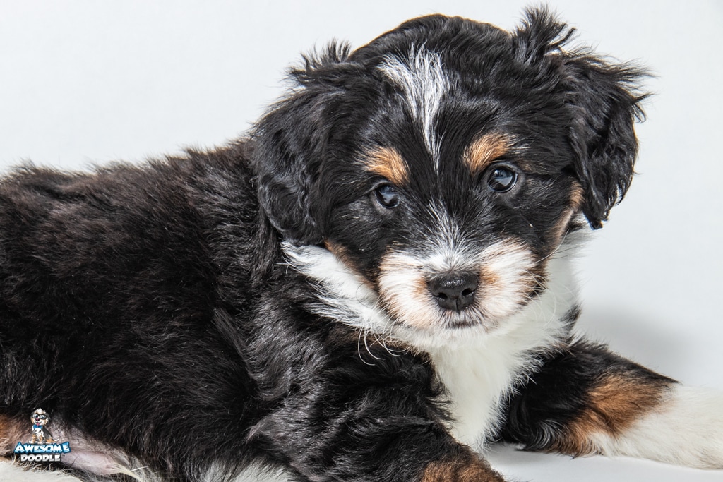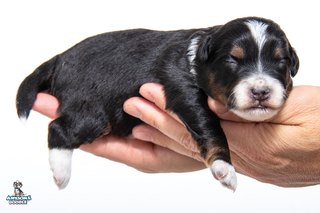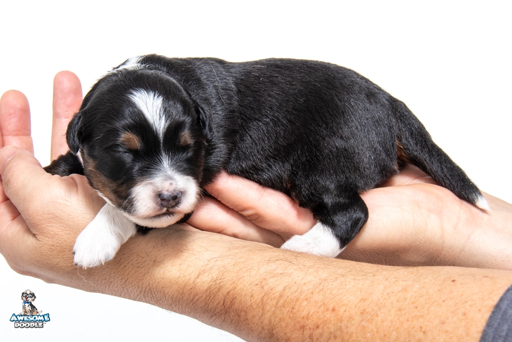 Tuck is a male Black Tri-Color F1 AussieDoodle puppy.
