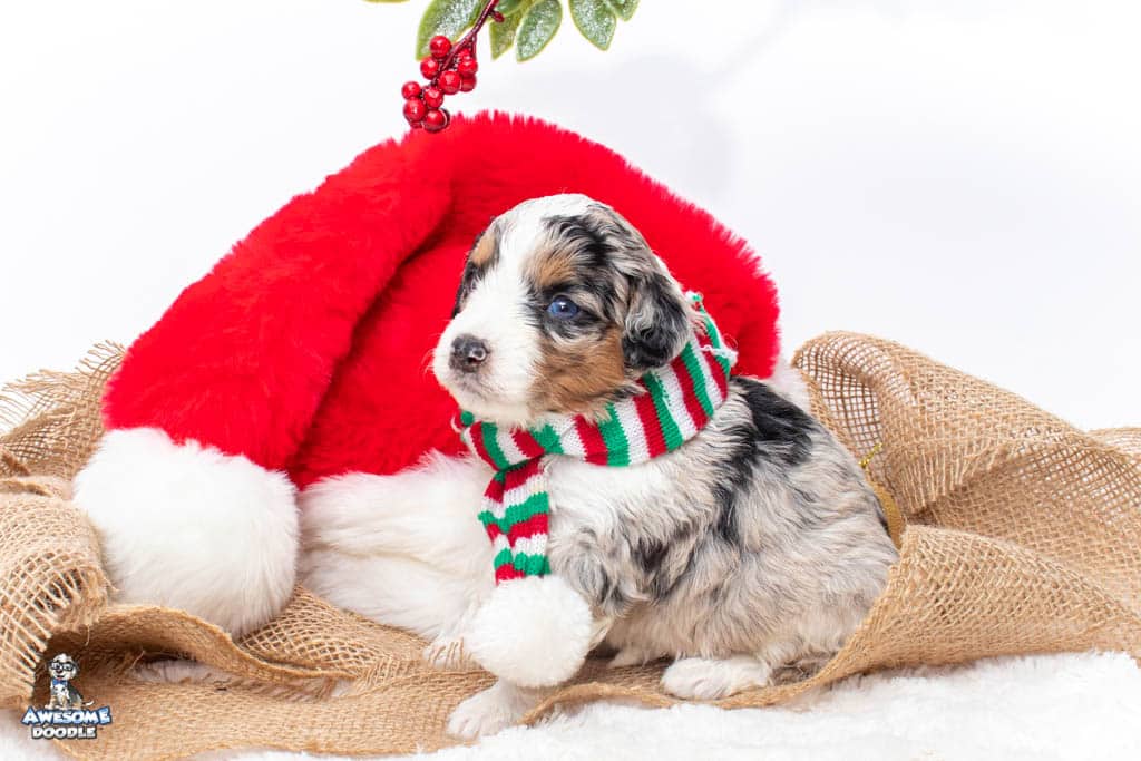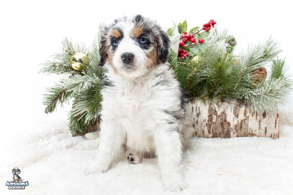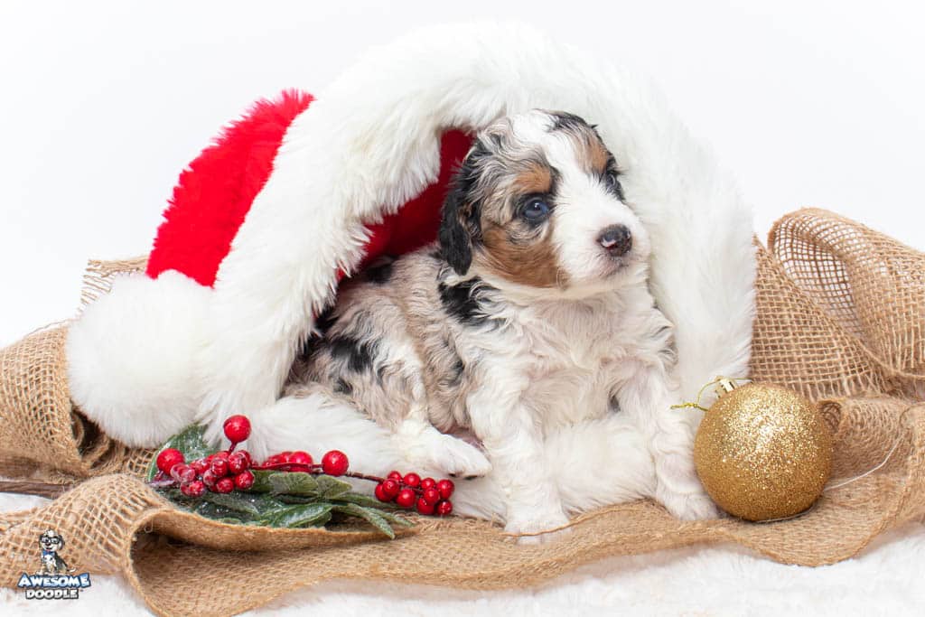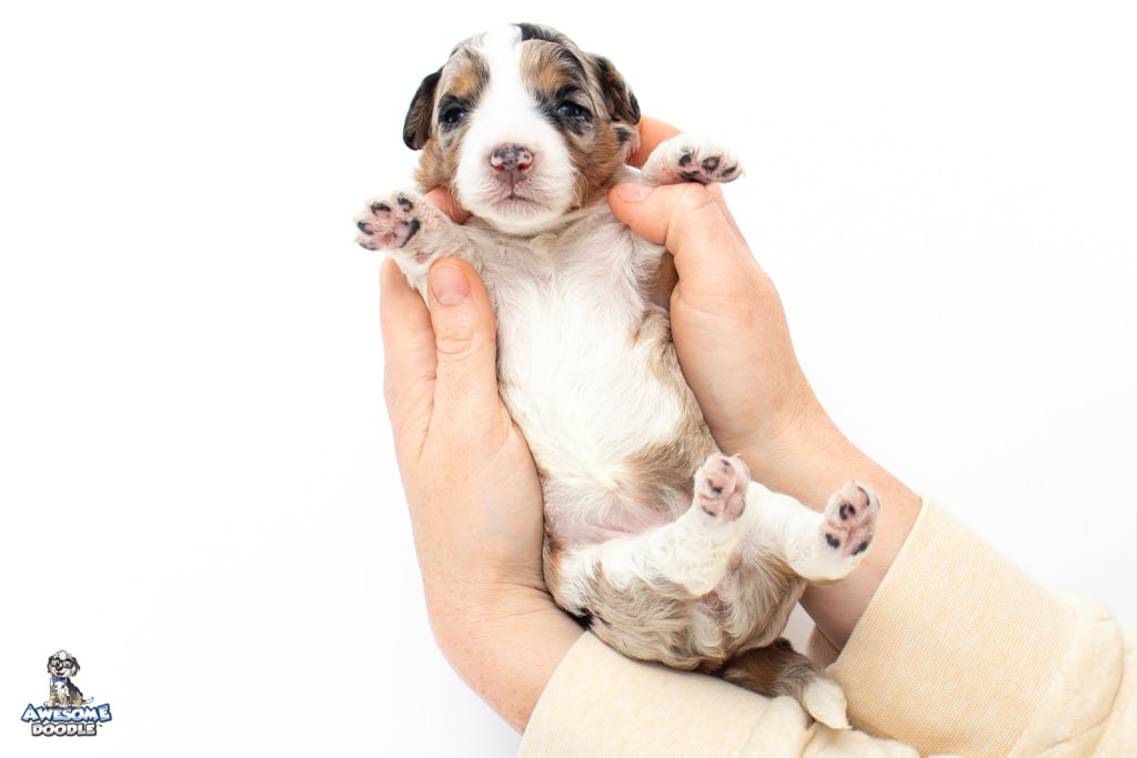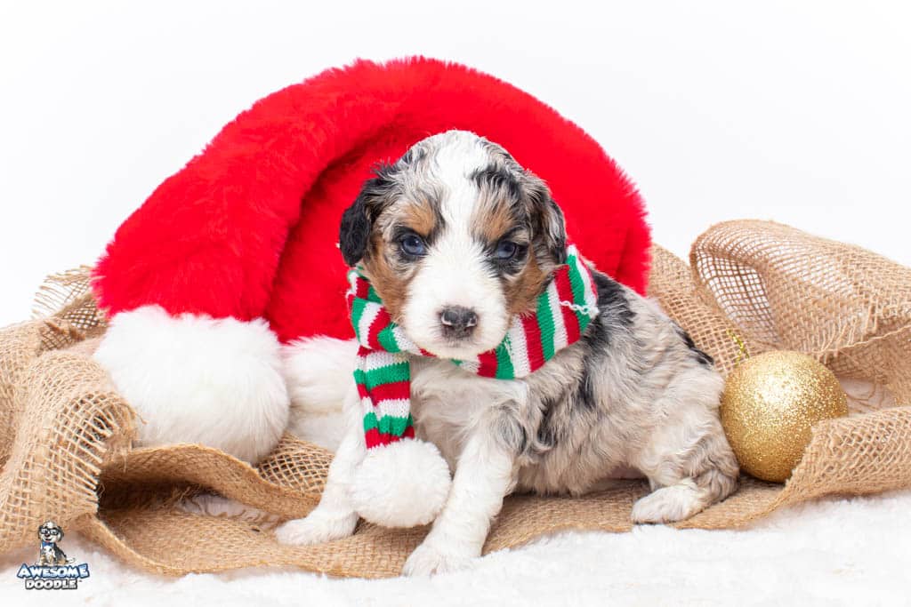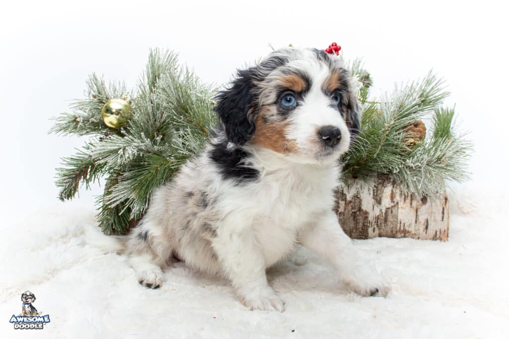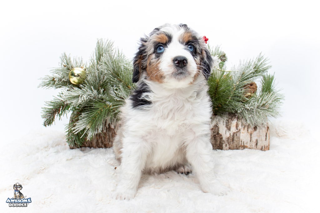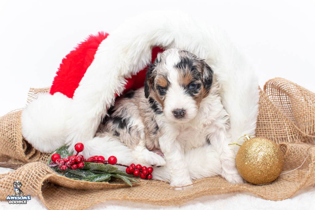 Celeste is a female Blue Merle w/ White & Copper F1 AussieDoodle puppy.
