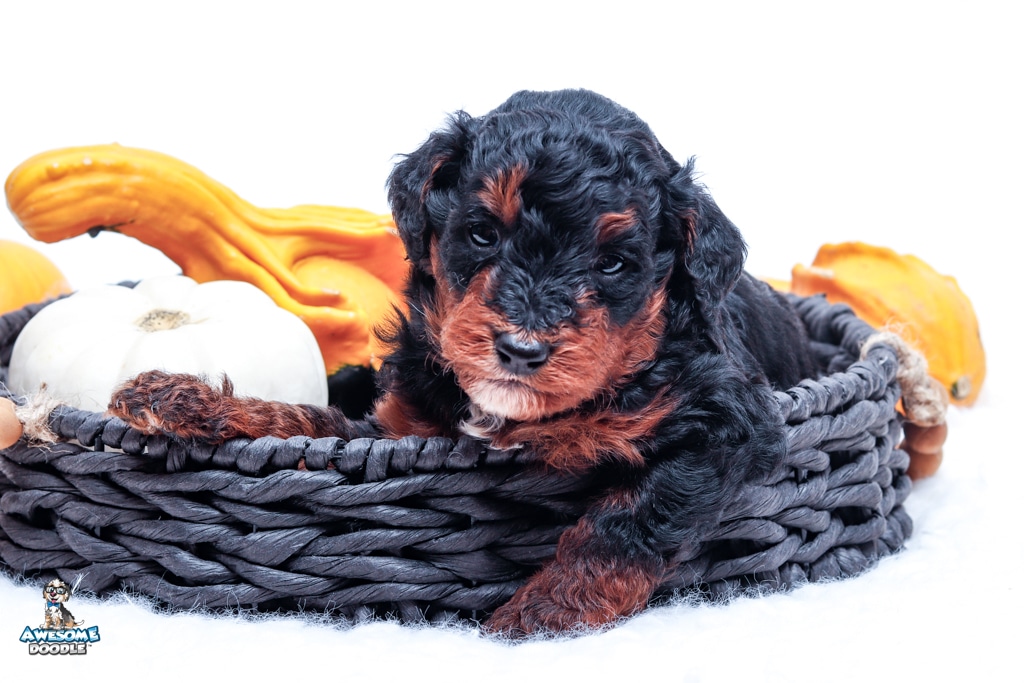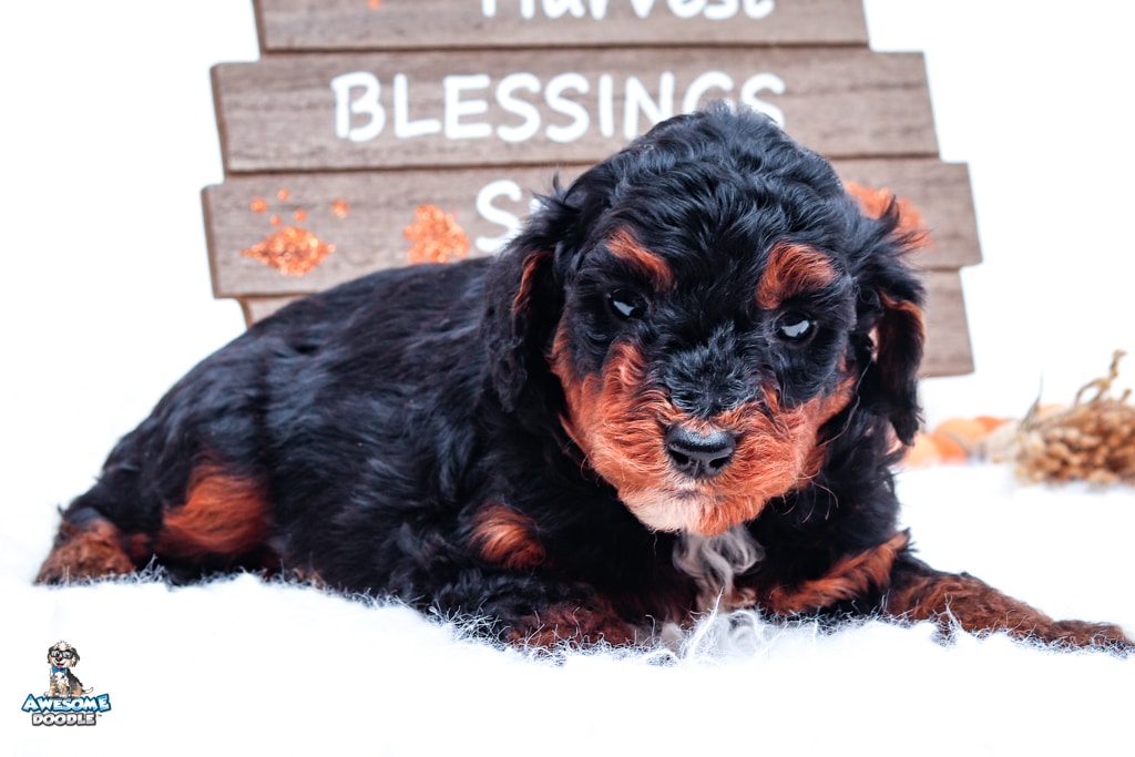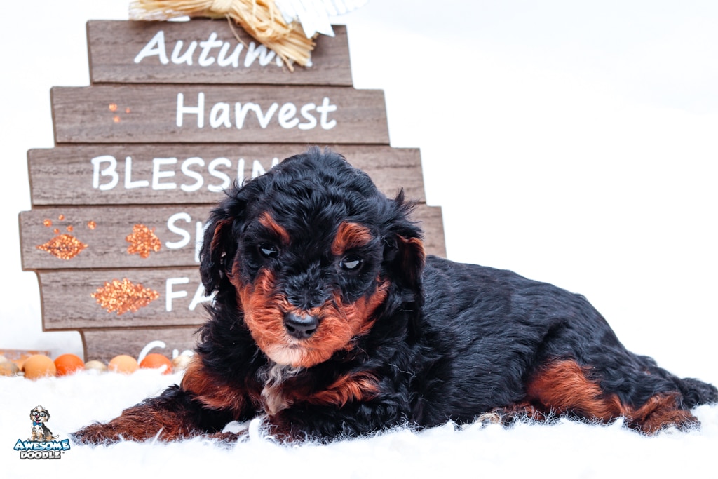 Chance is a male Black Phantom F1 AussieDoodle puppy.