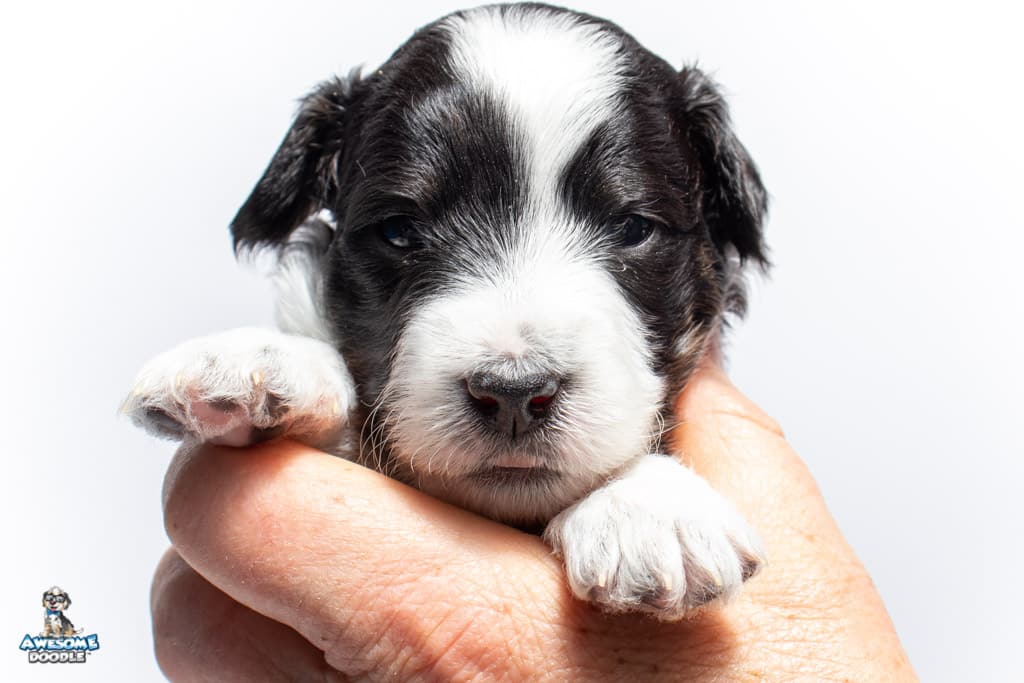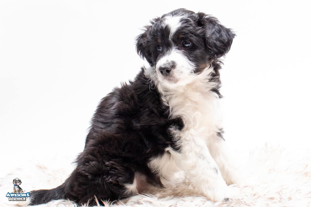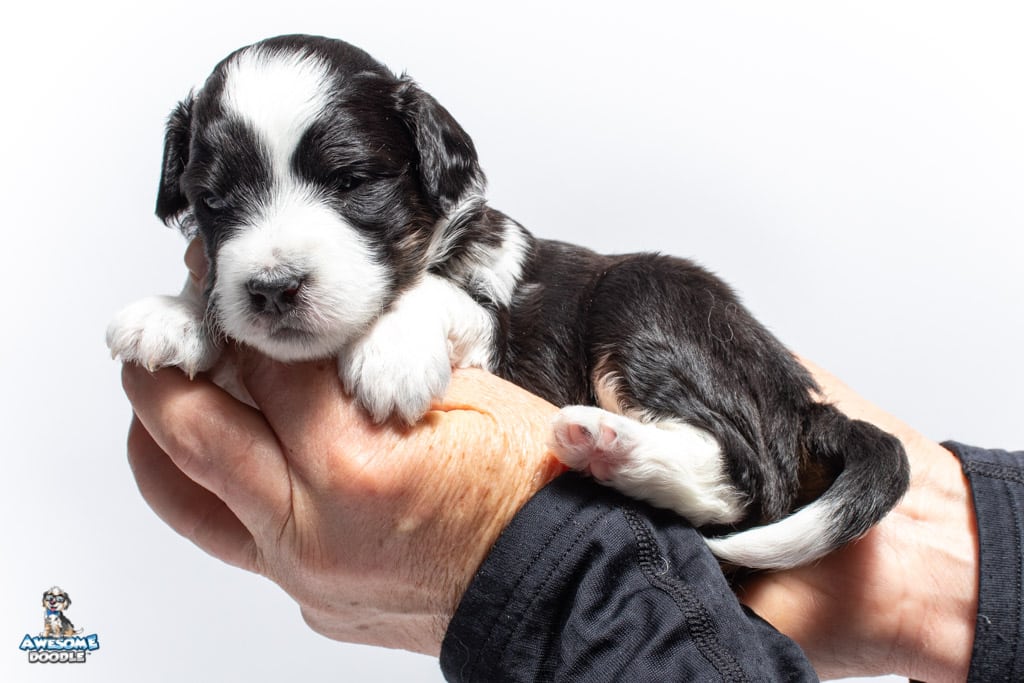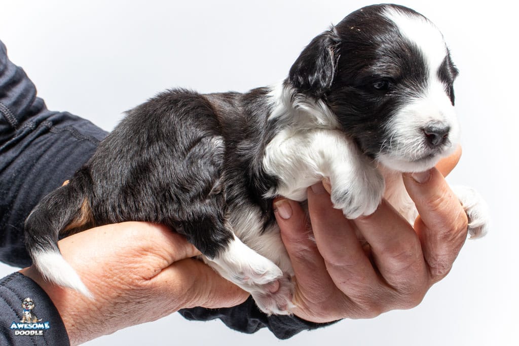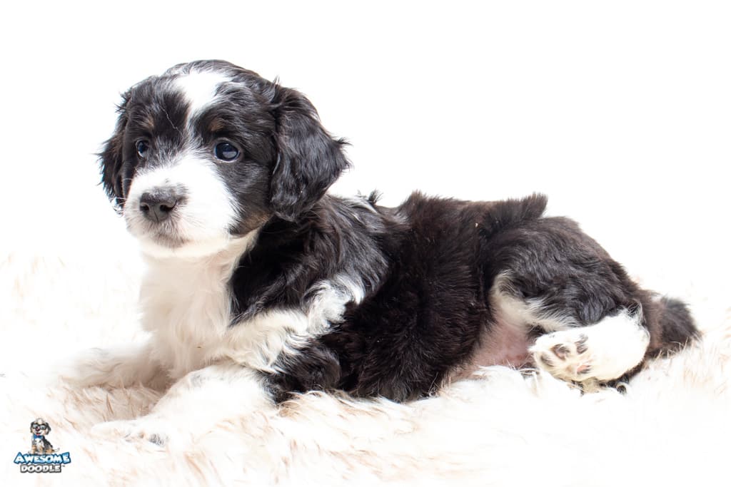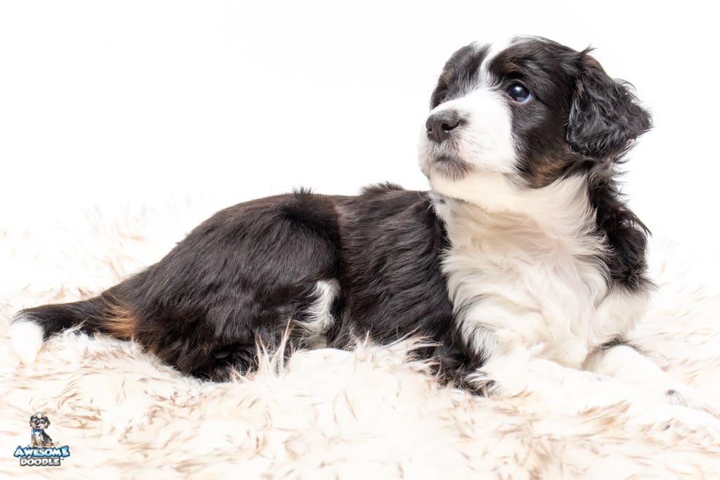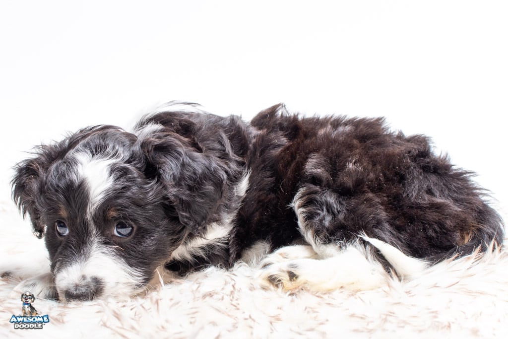 Charlie is a female Black Tri-Color F1 AussieDoodle puppy.