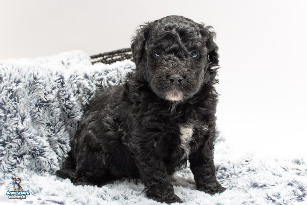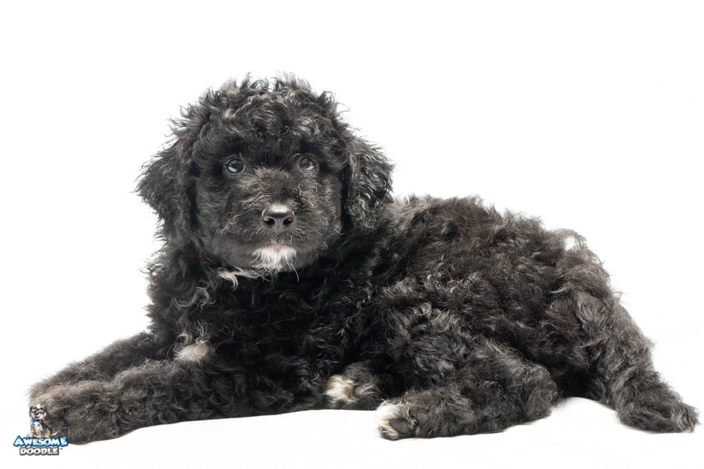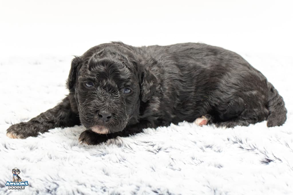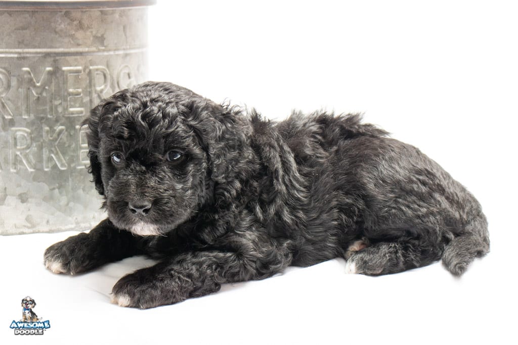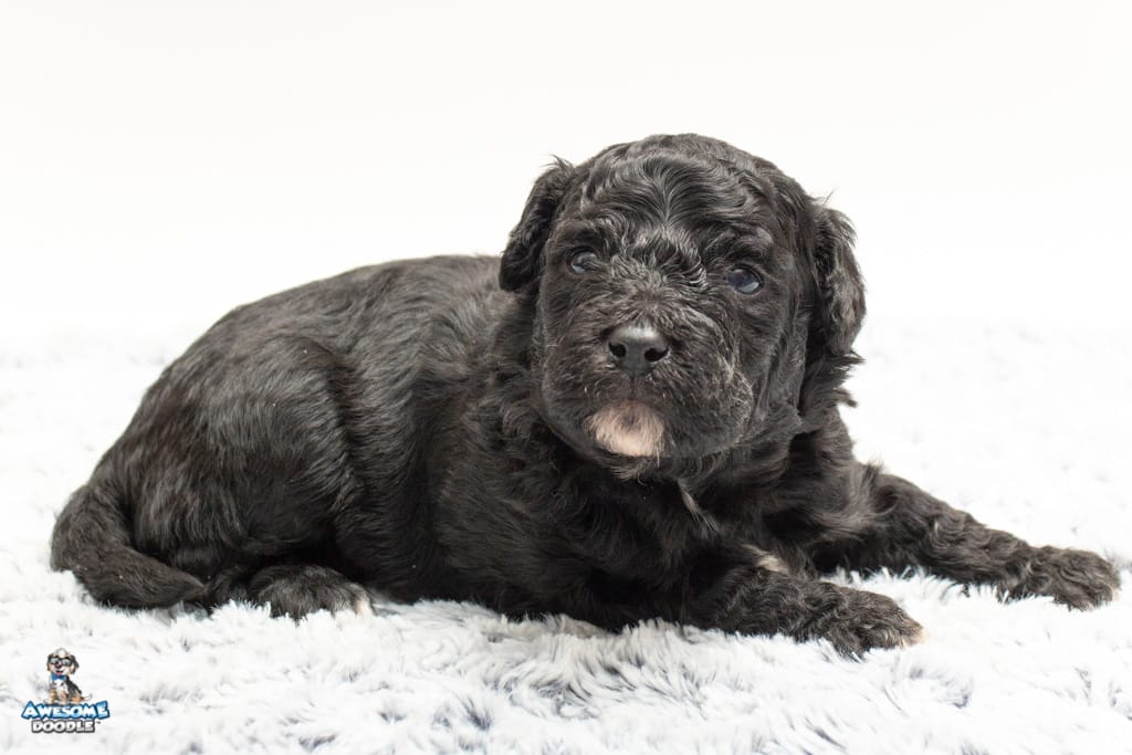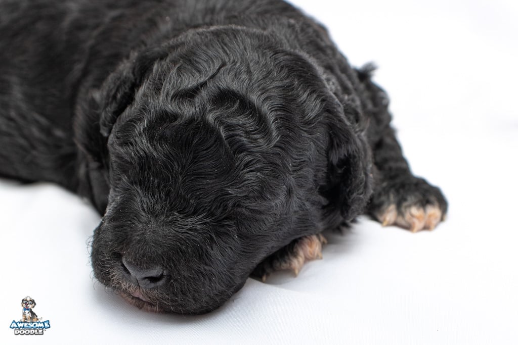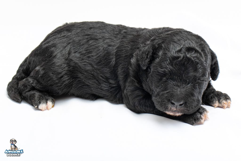 Stella is a female Black Tuxedo F1b AussieDoodle puppy.