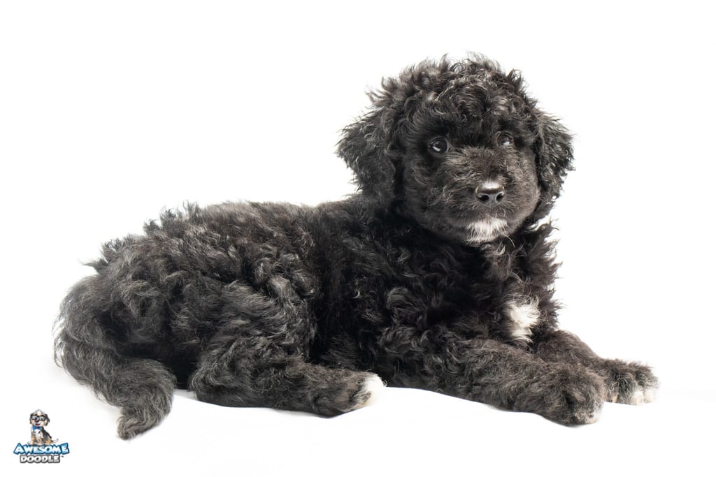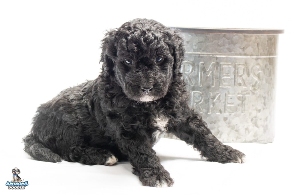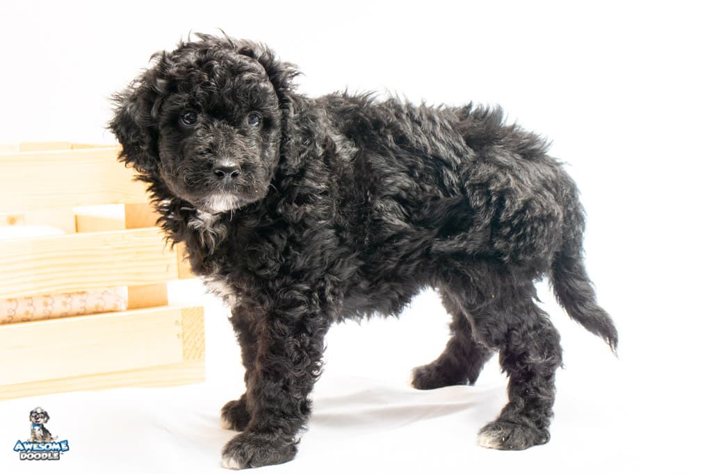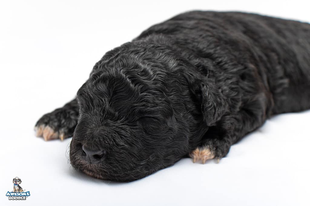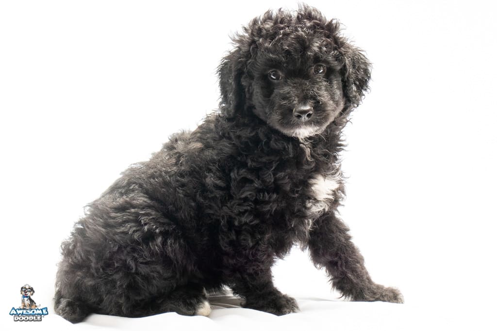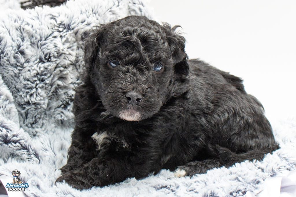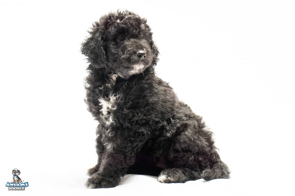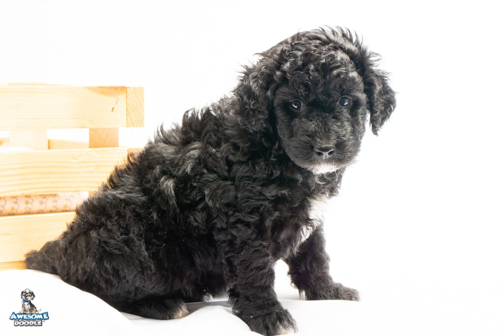 Stella is a female Black Tuxedo F1b AussieDoodle puppy.