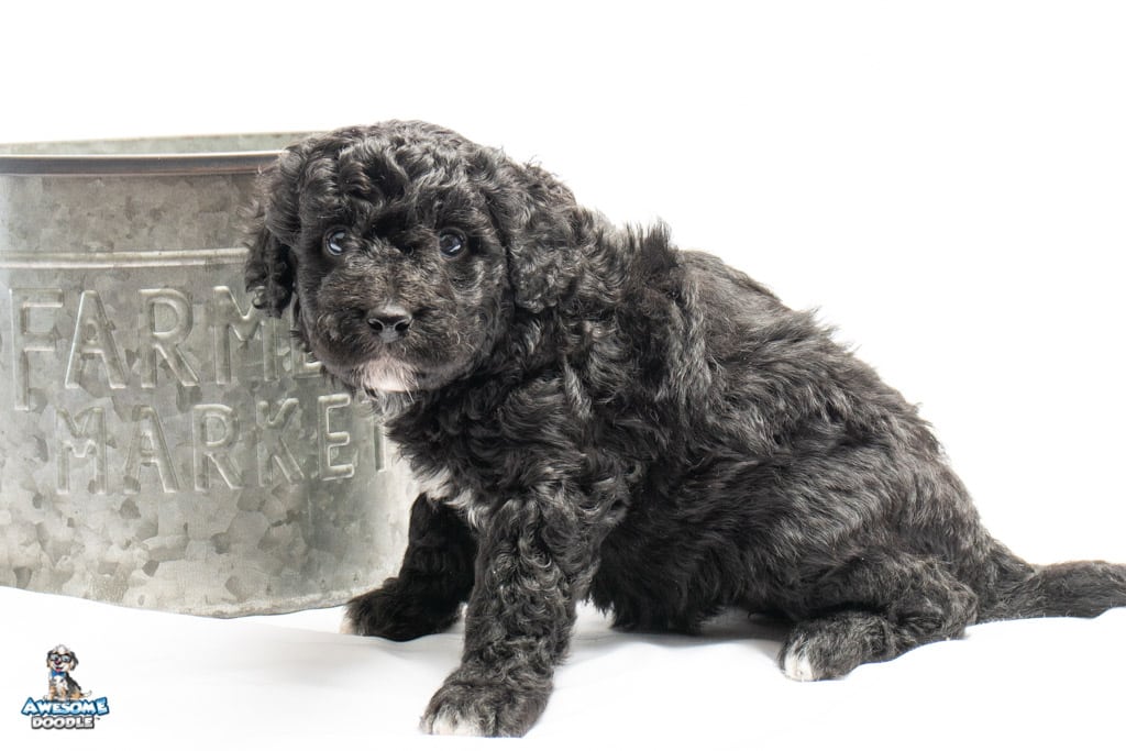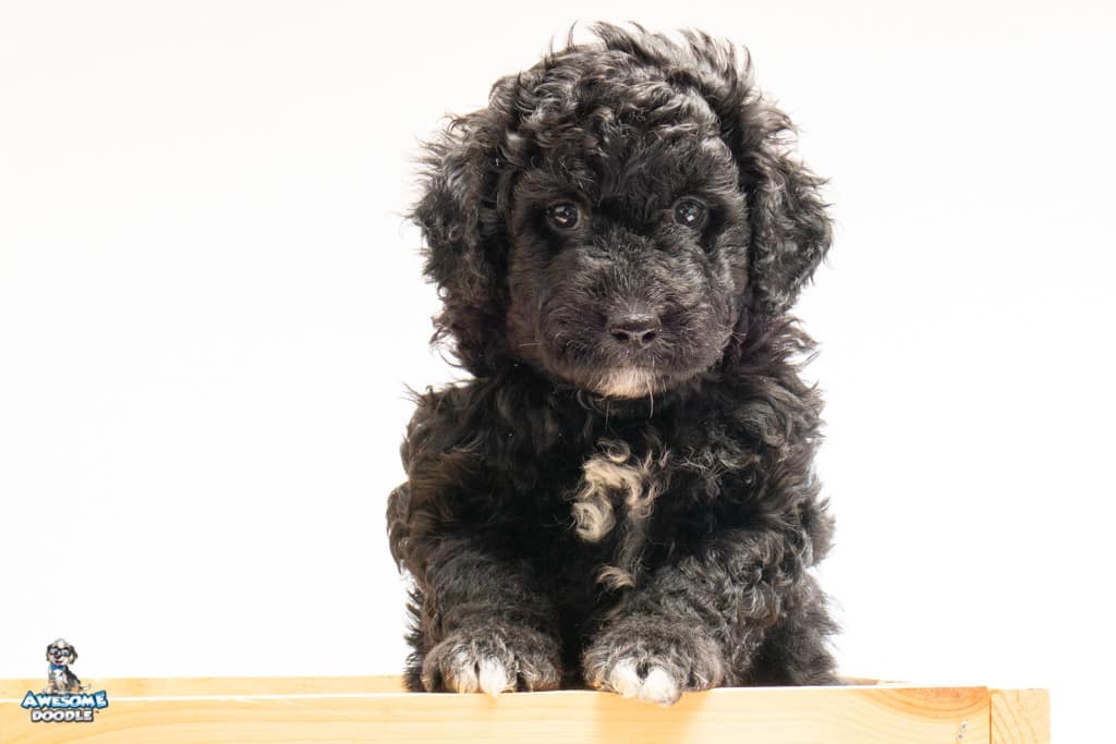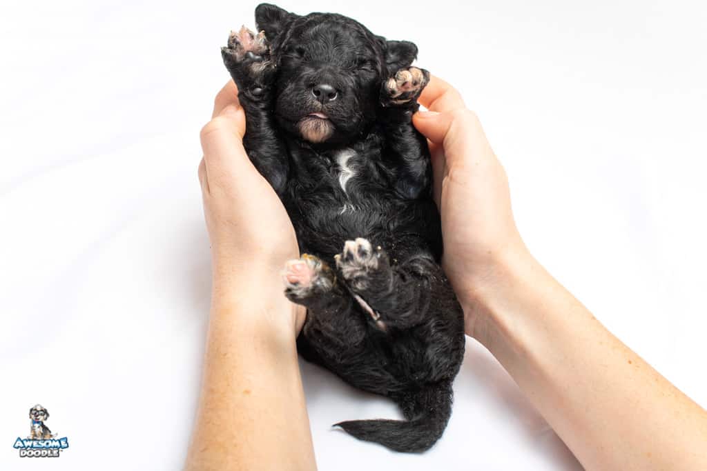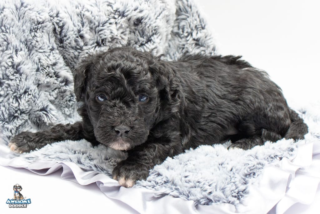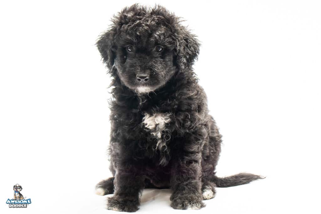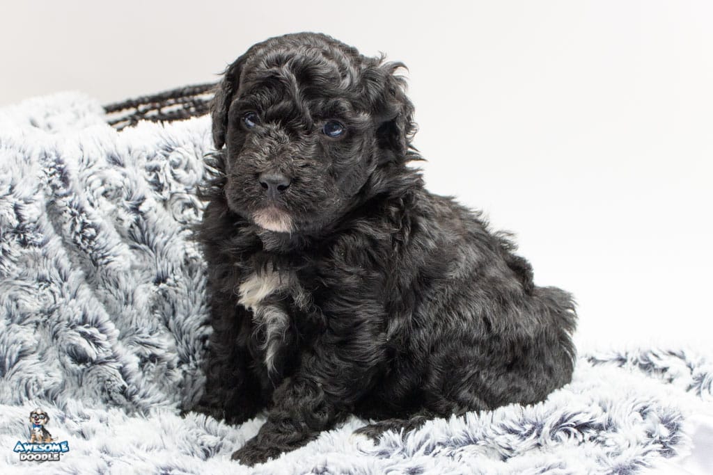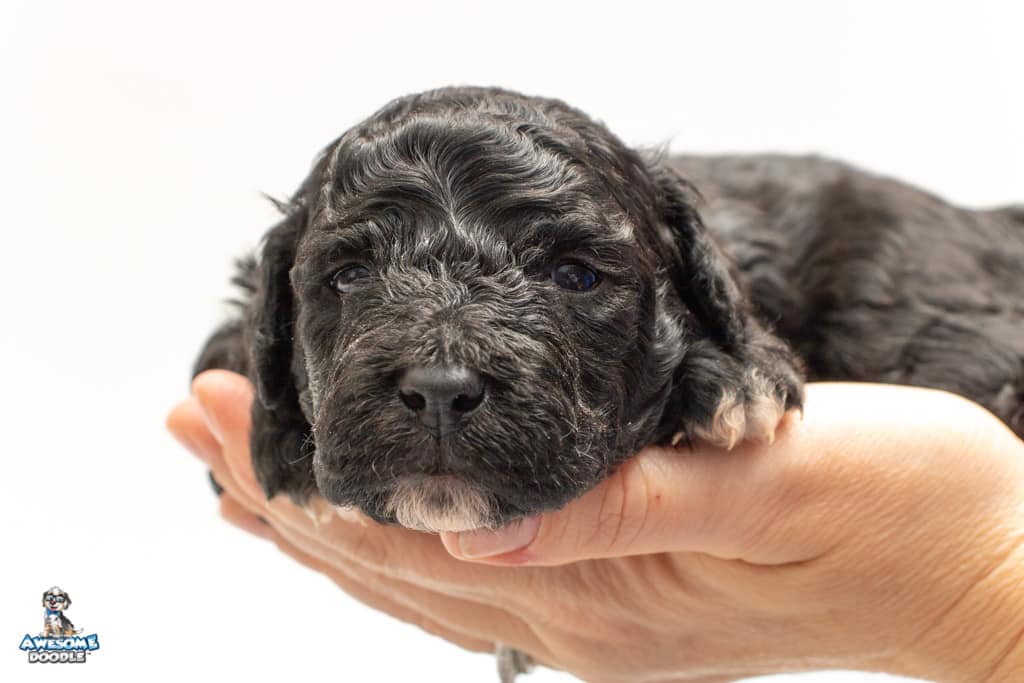 Stella is a female Black Tuxedo F1b AussieDoodle puppy.