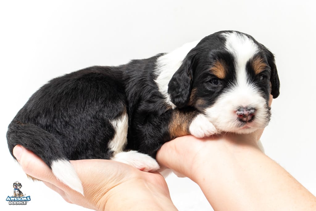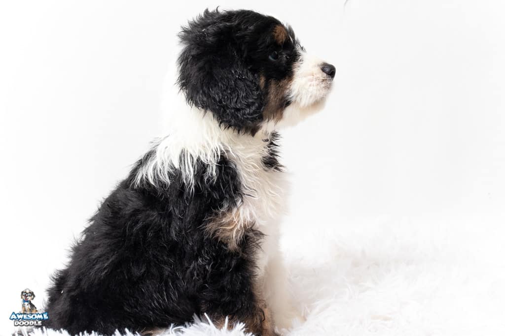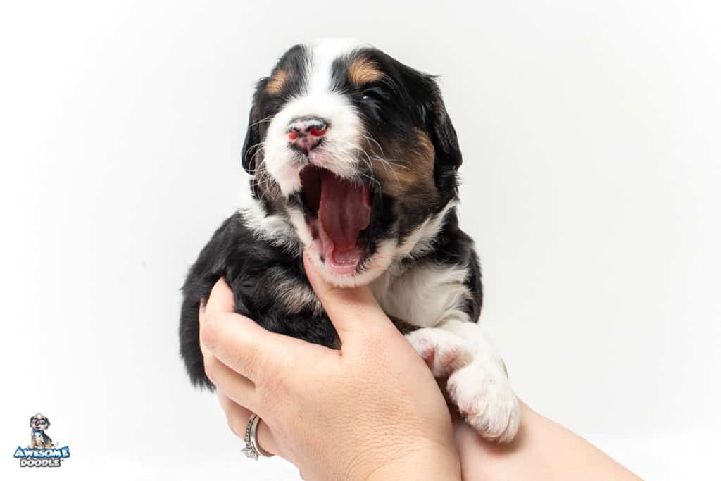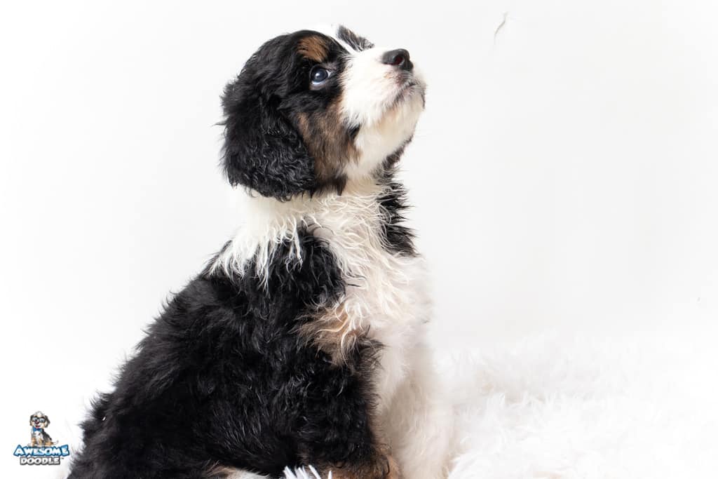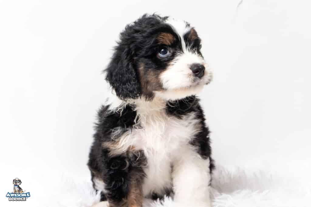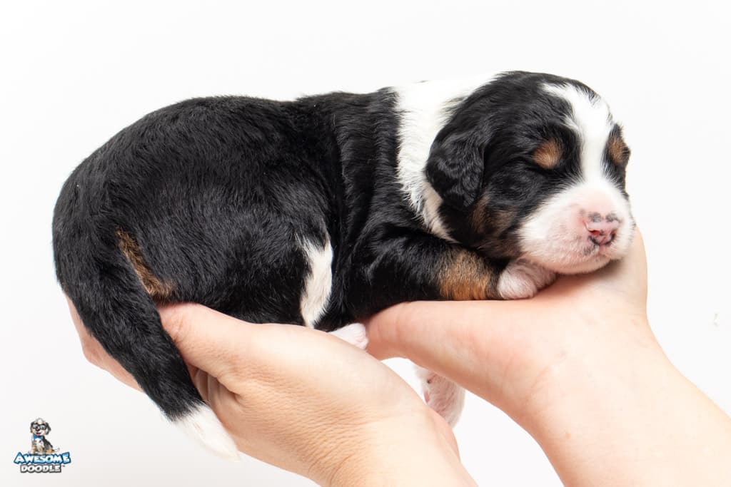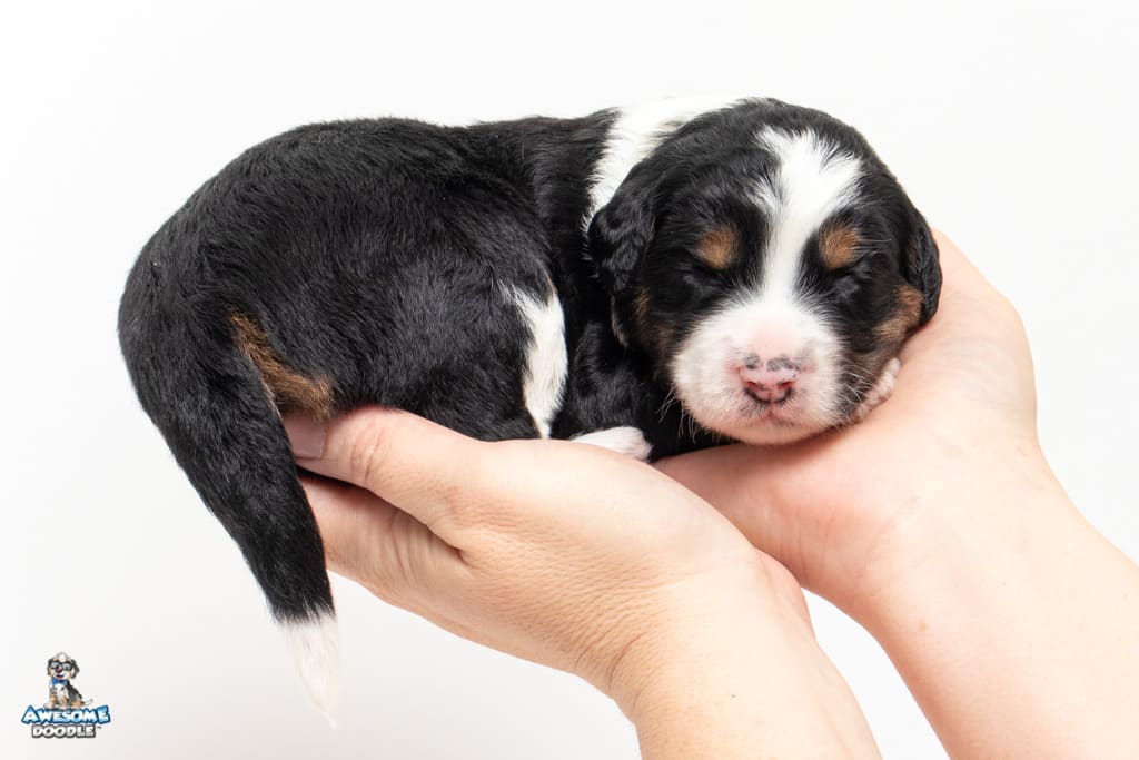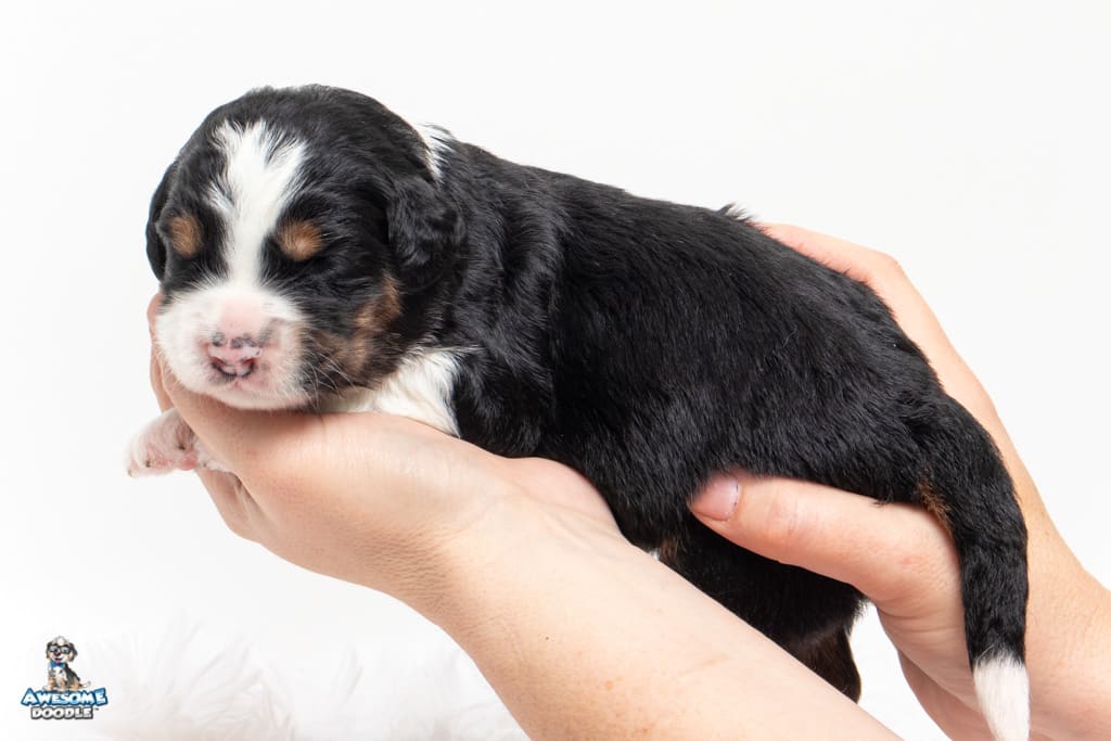 Copper is a male Black Tri-Color F1 AussieDoodle puppy.