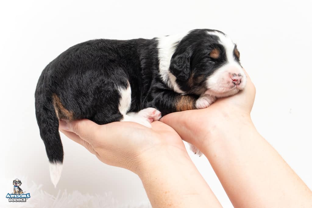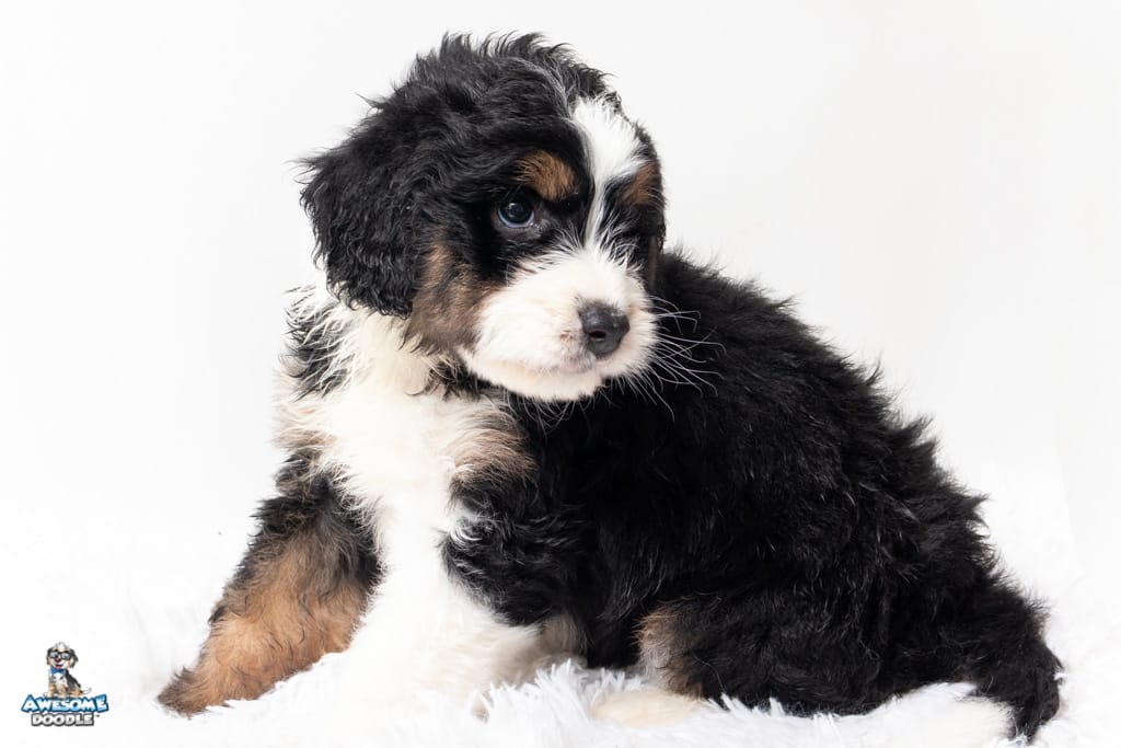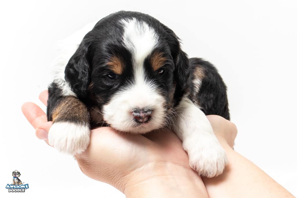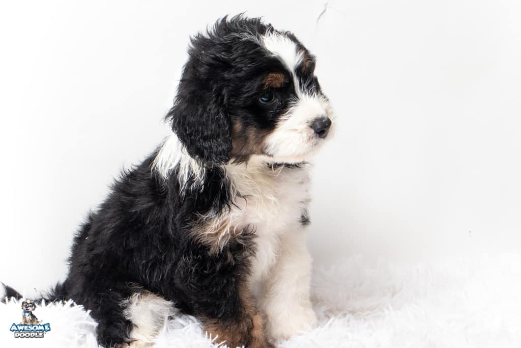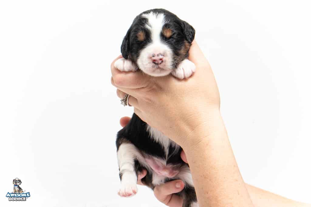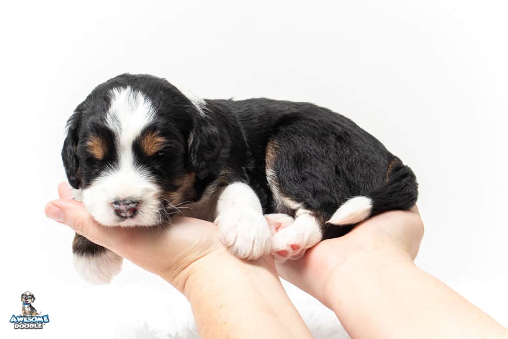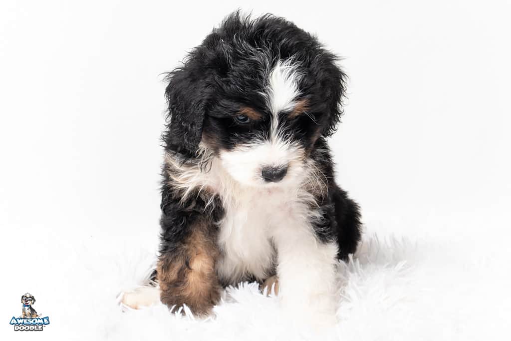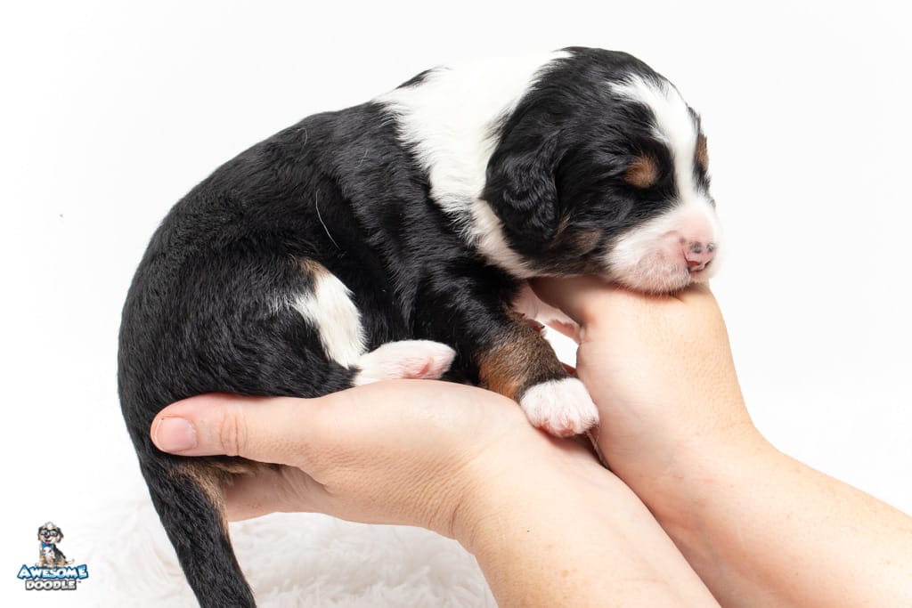 Copper is a male Black Tri-Color F1 AussieDoodle puppy.