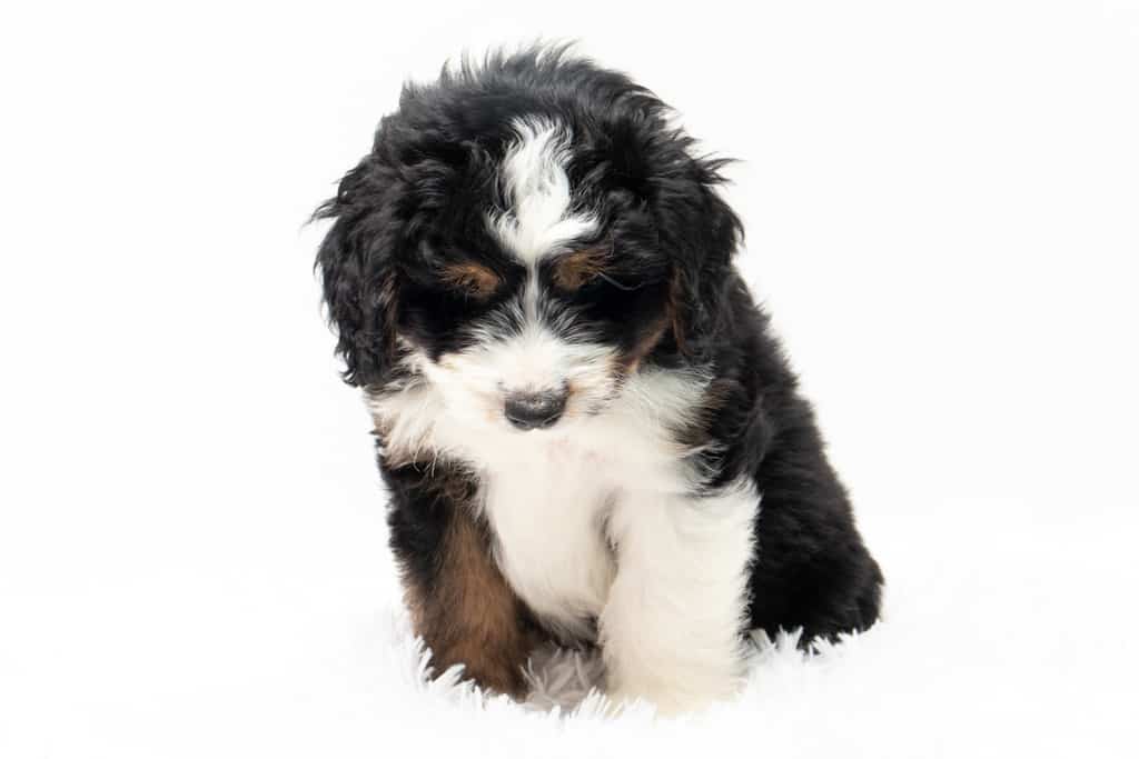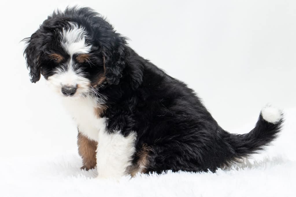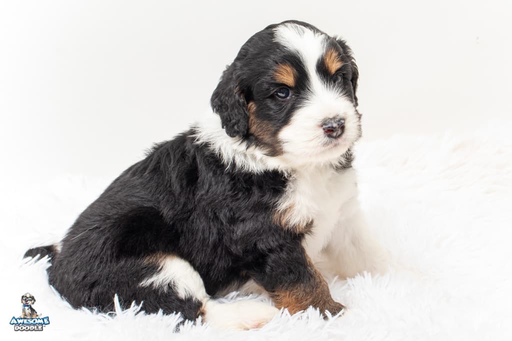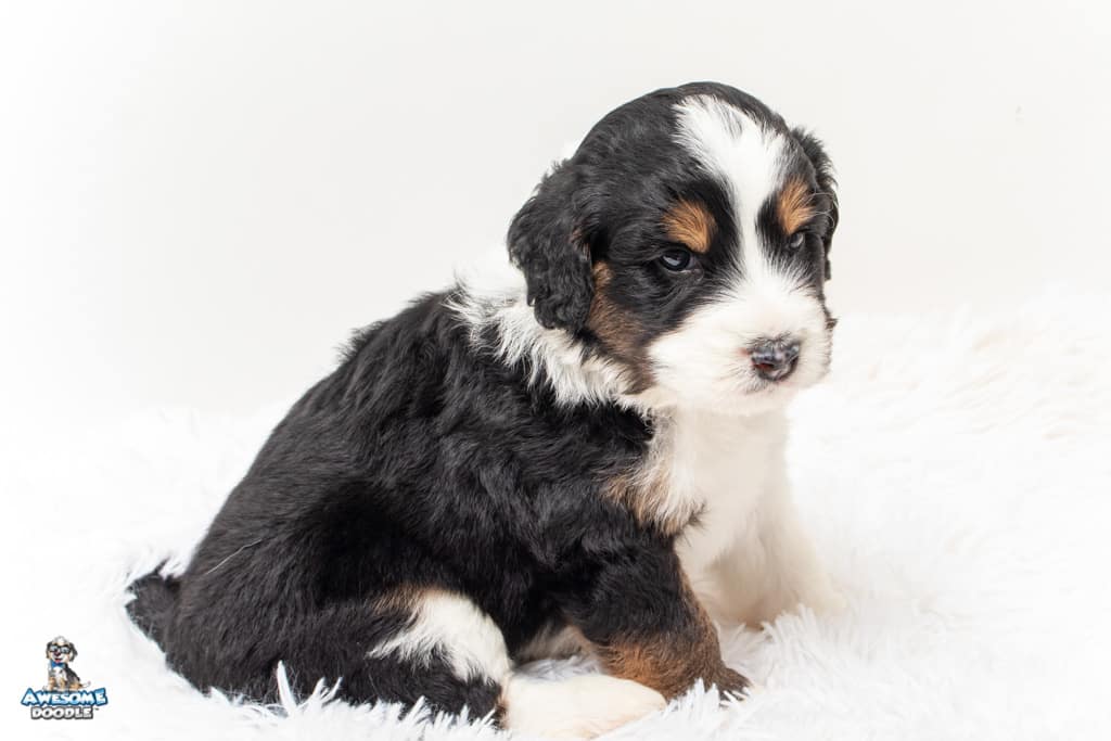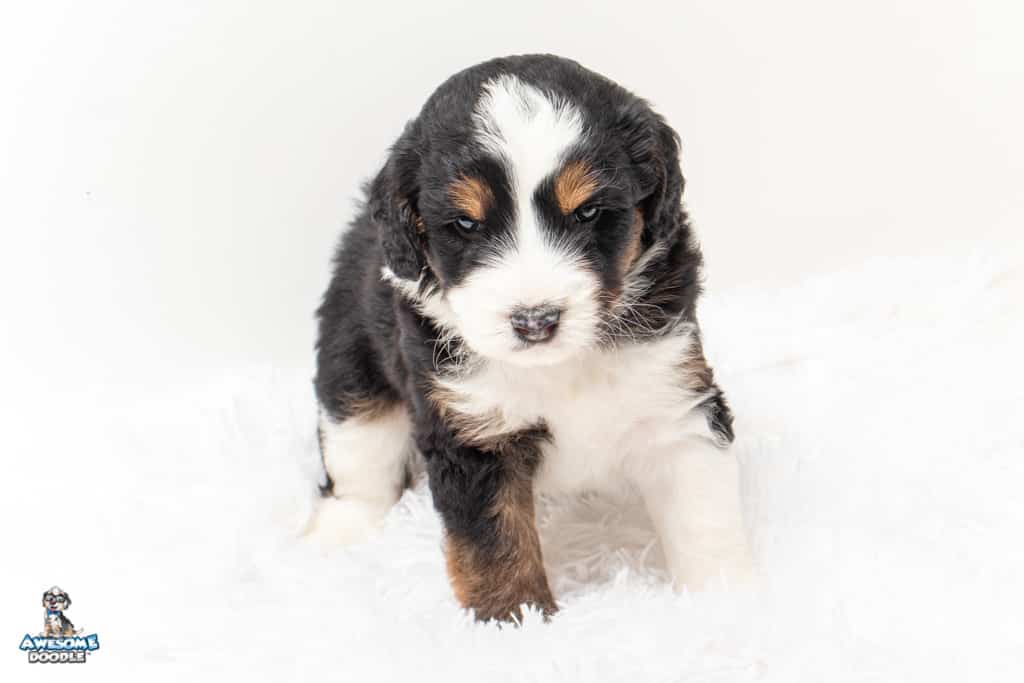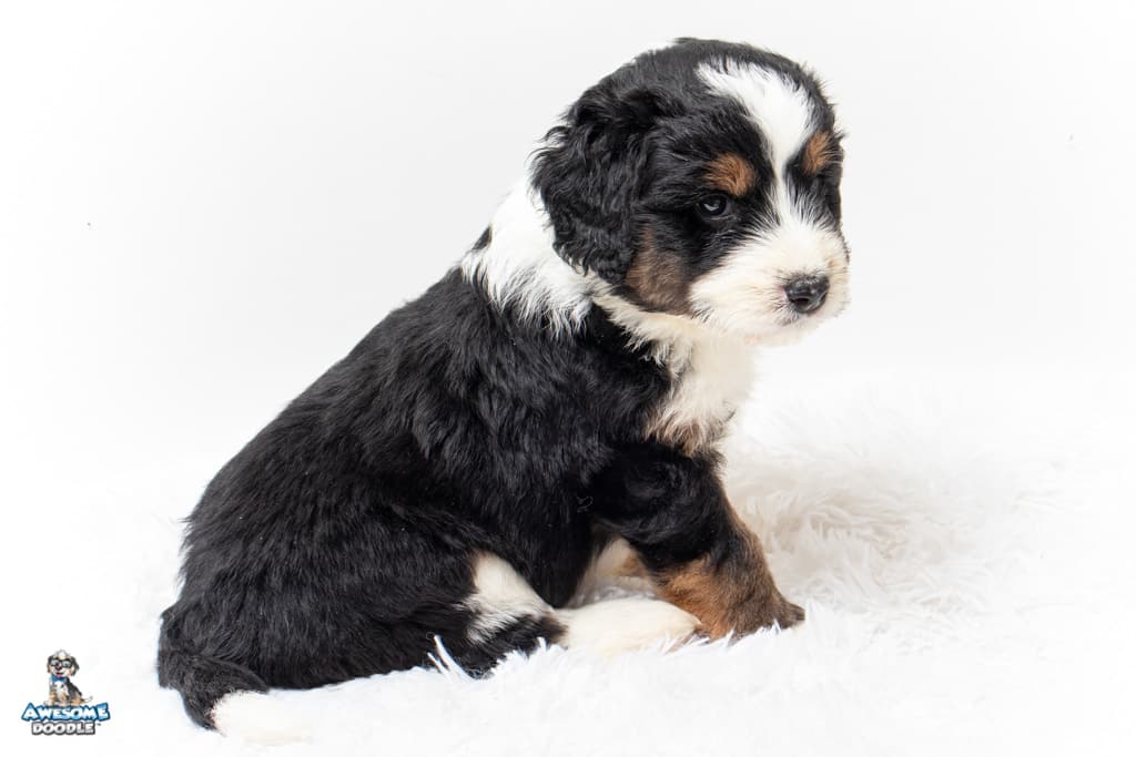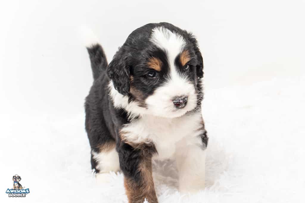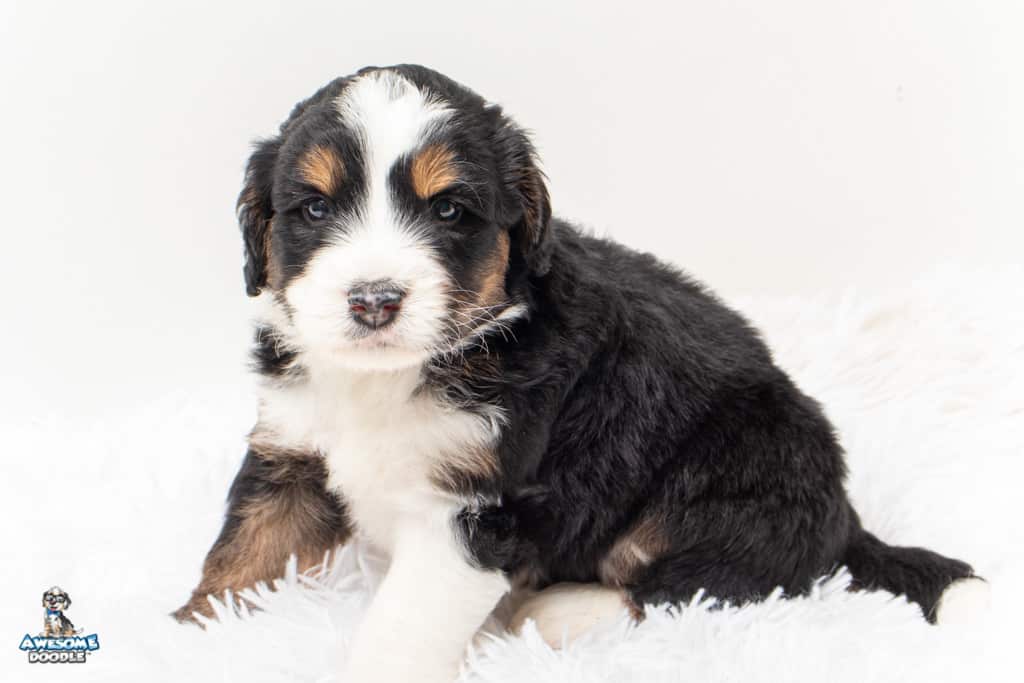 Copper is a male Black Tri-Color F1 AussieDoodle puppy.