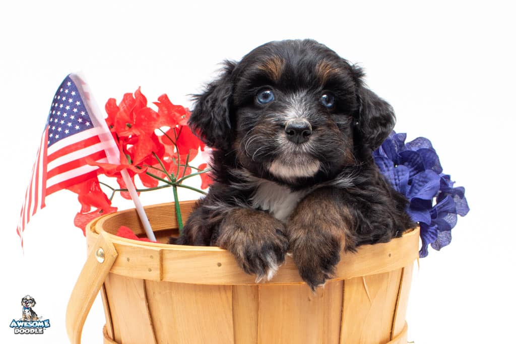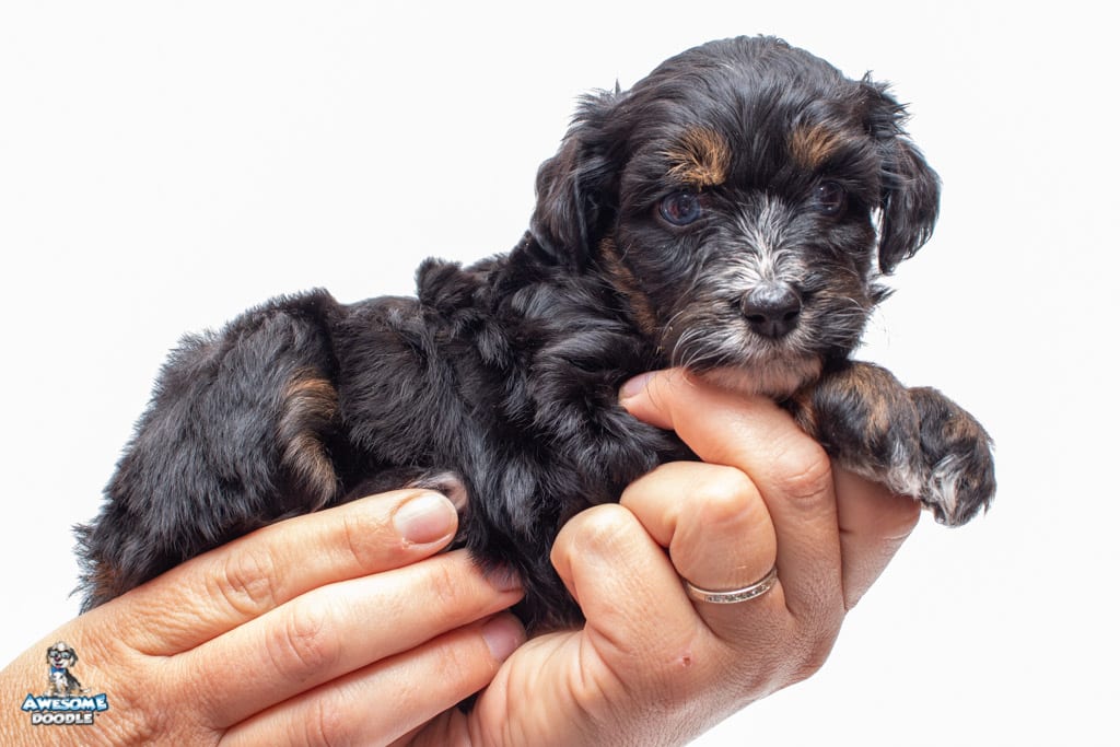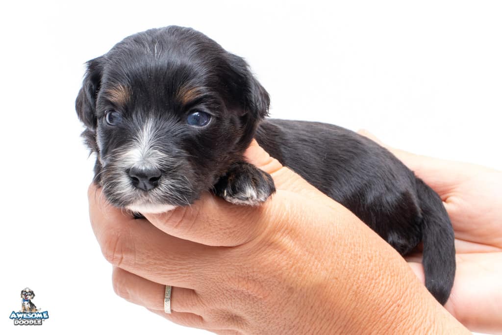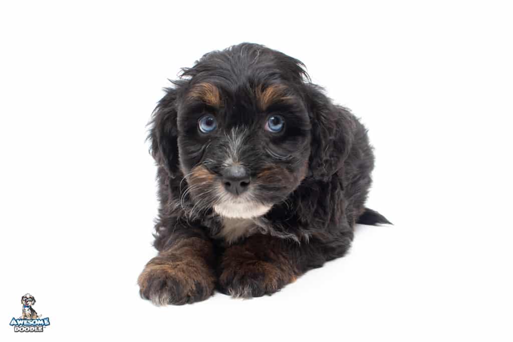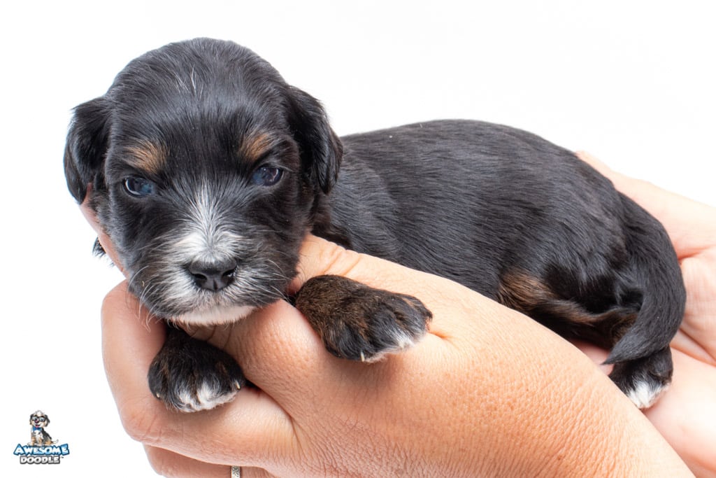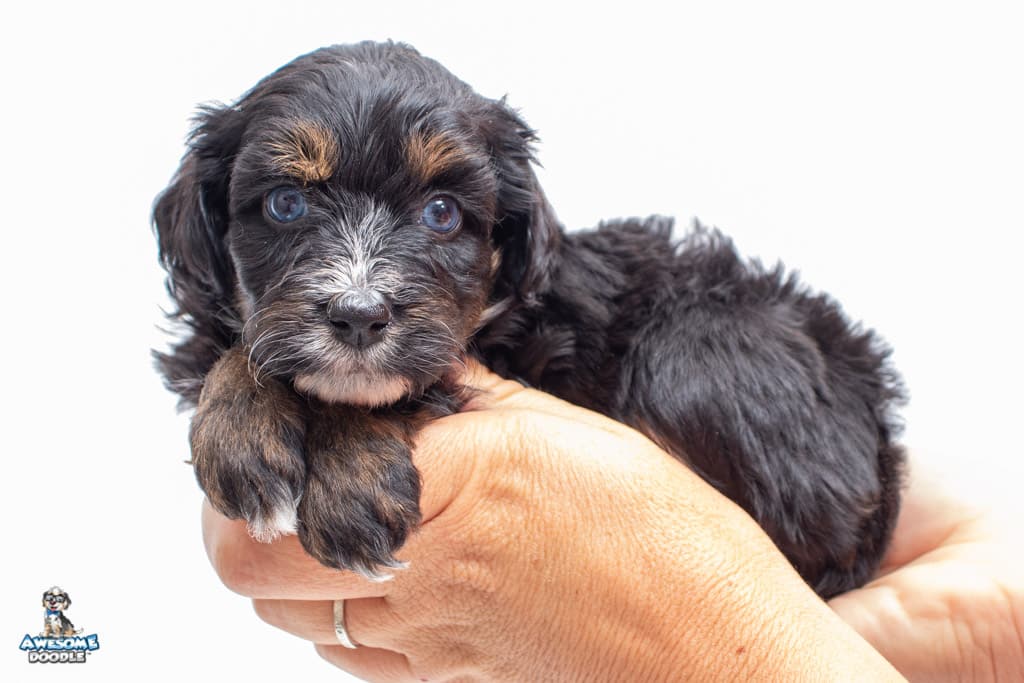 Remi is a female Black Phantom F1 AussieDoodle puppy.