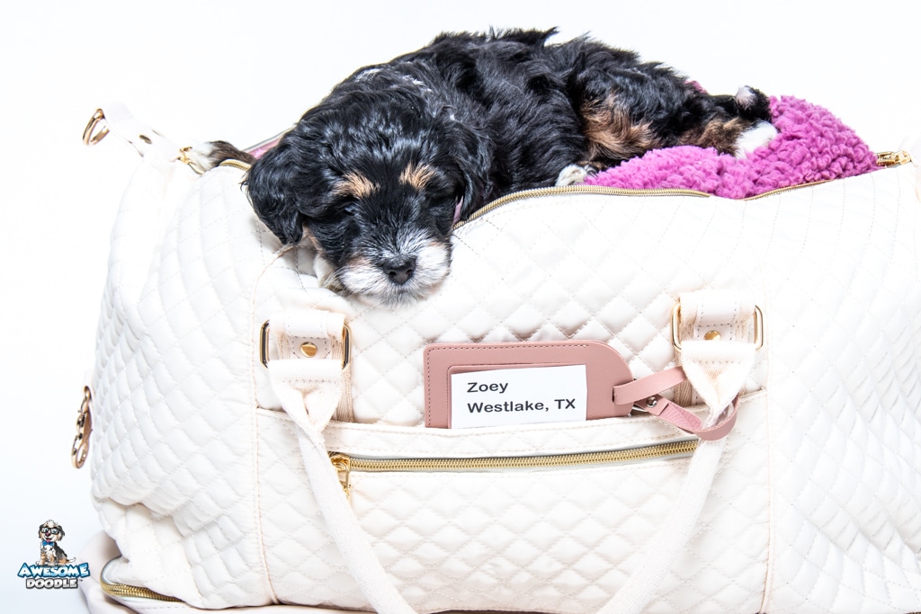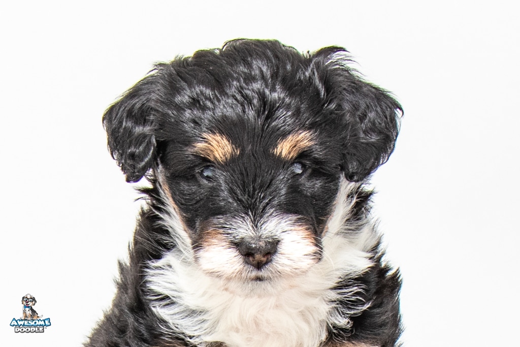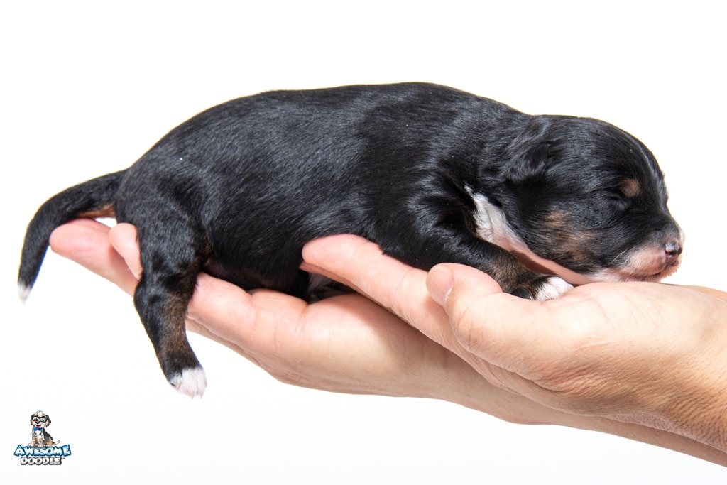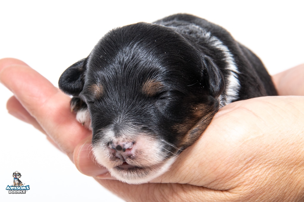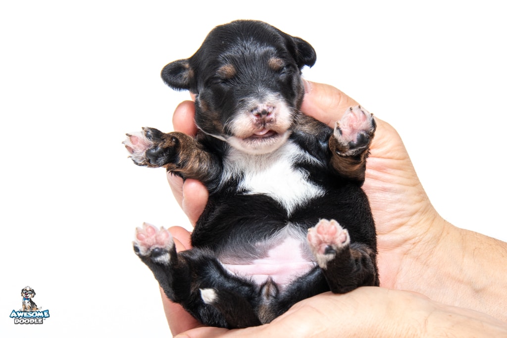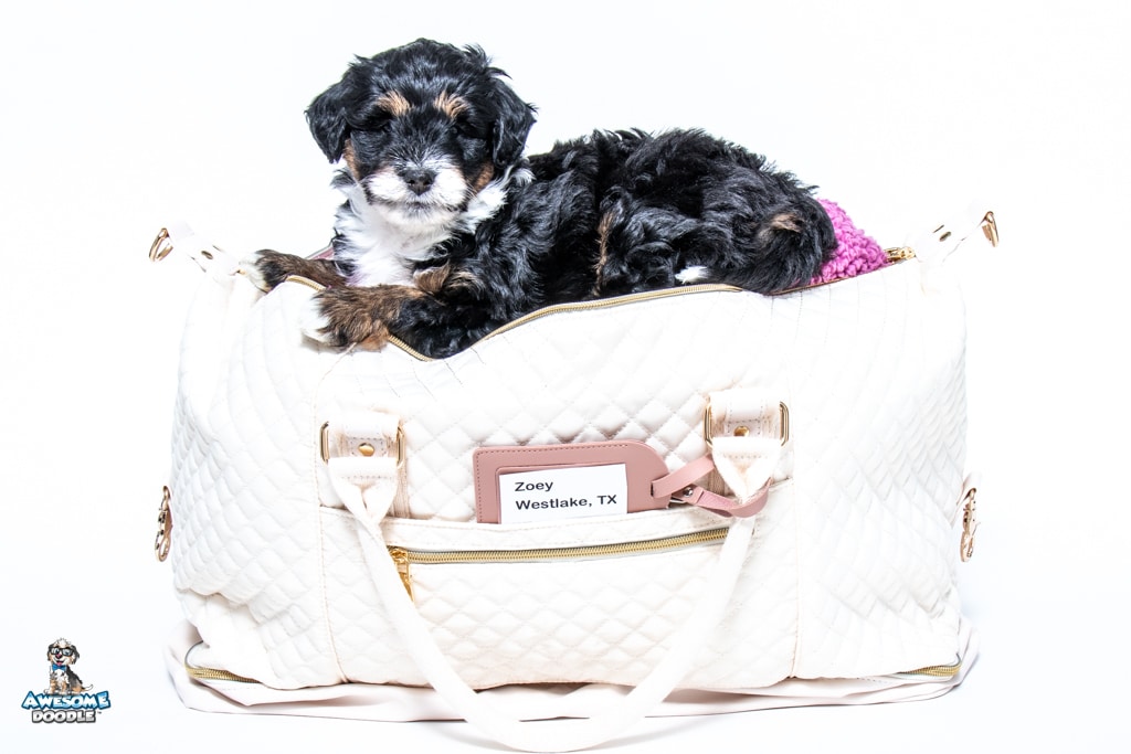 Zoey is a female Black Tri-Color F1 AussieDoodle puppy.