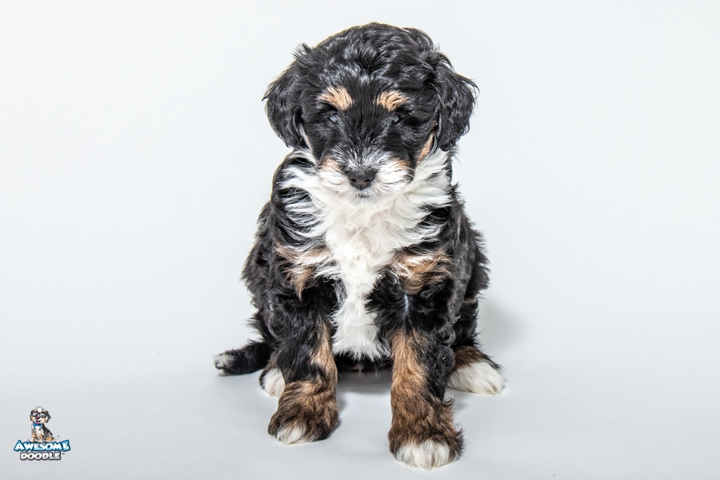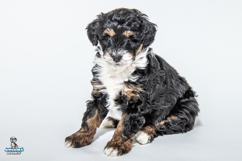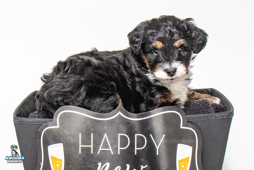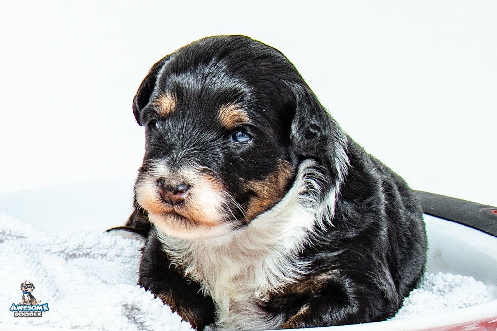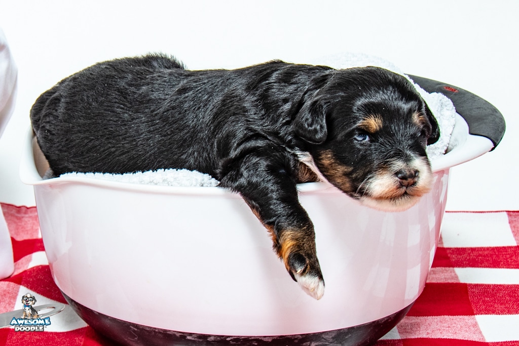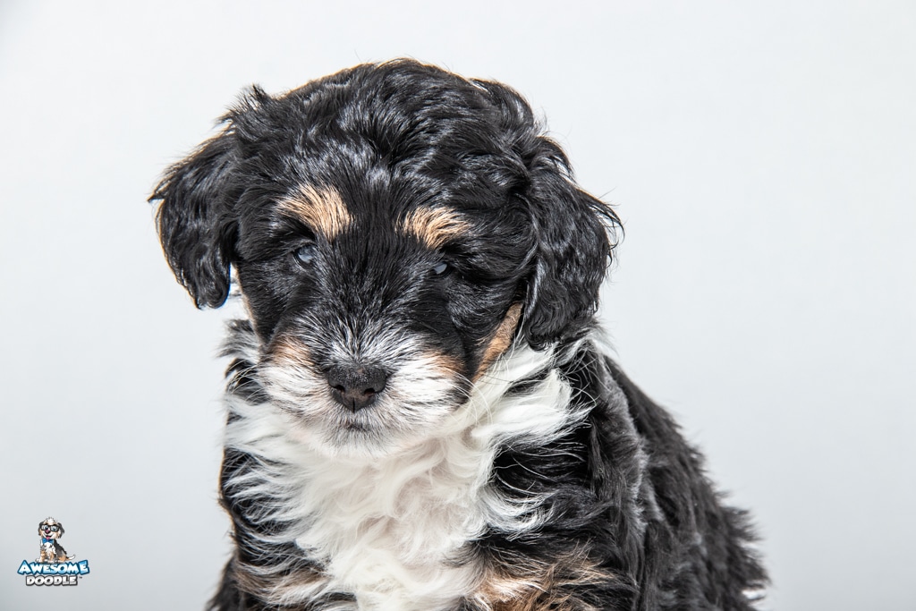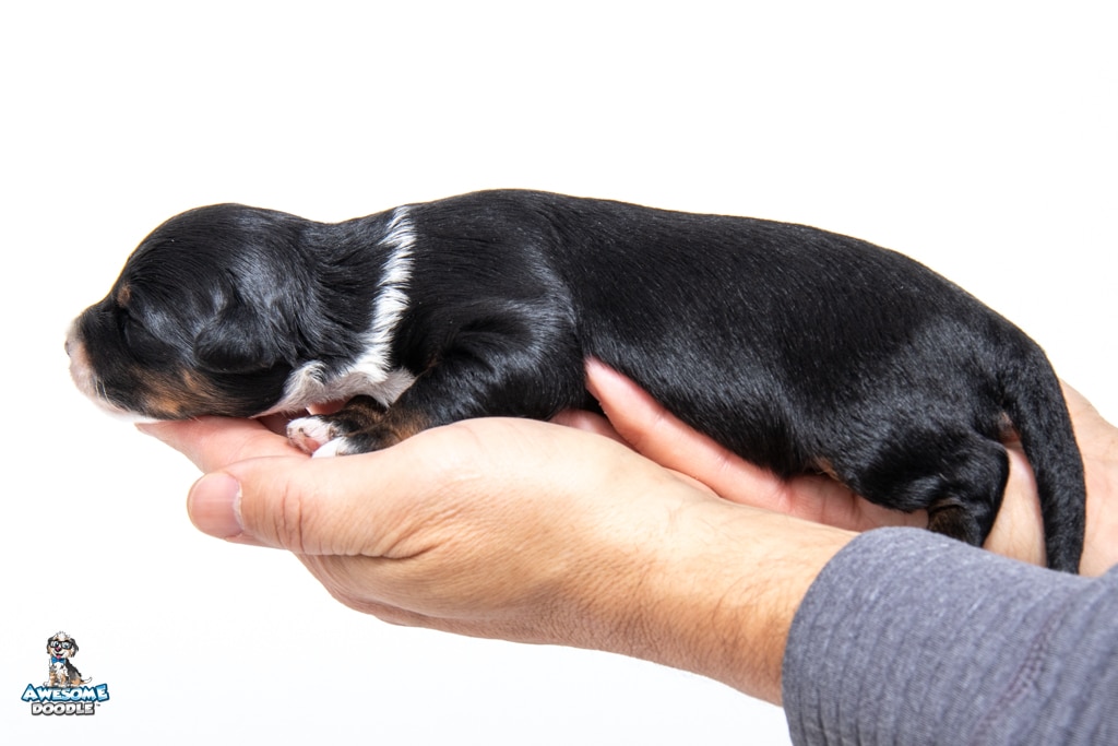 Zoey is a female Black Tri-Color F1 AussieDoodle puppy.