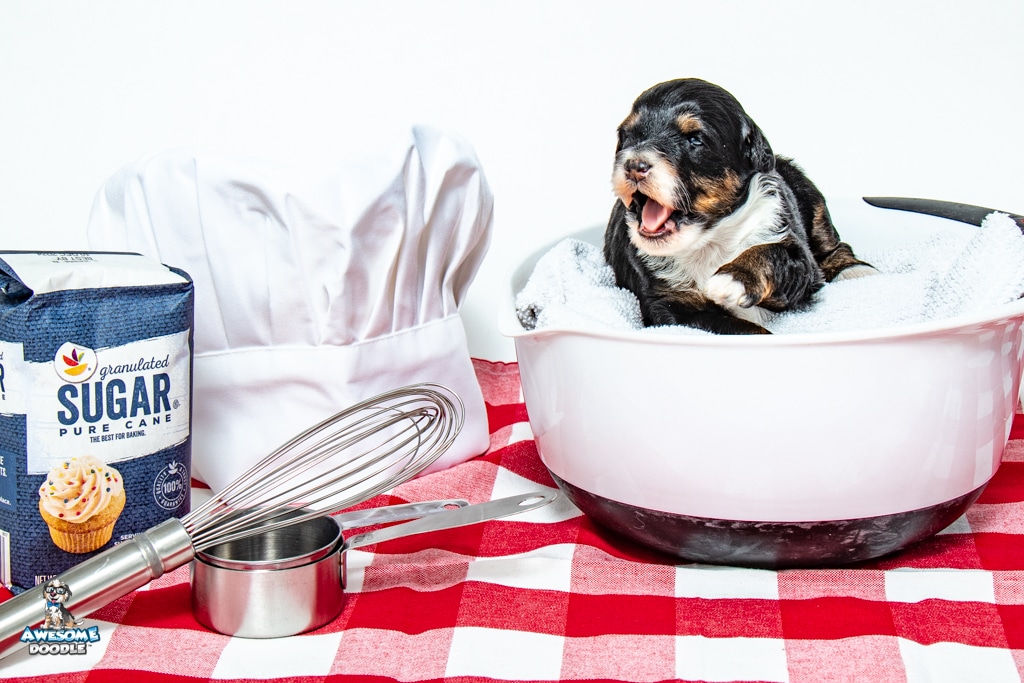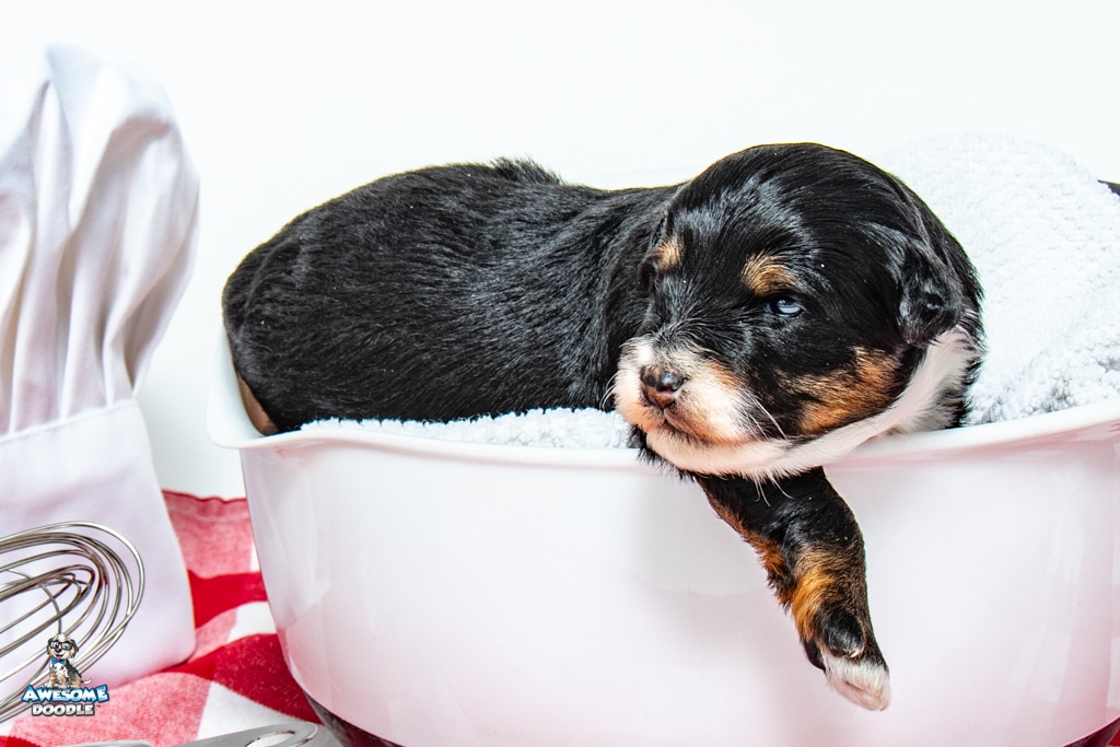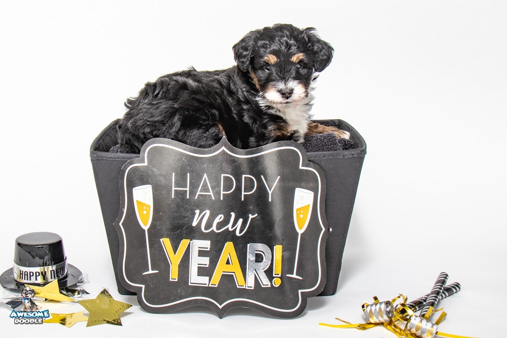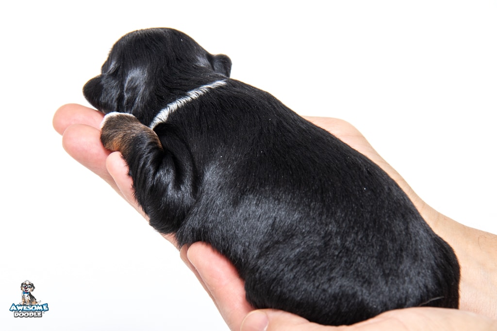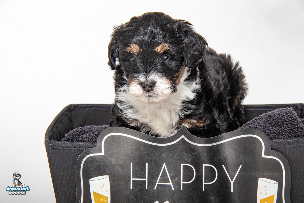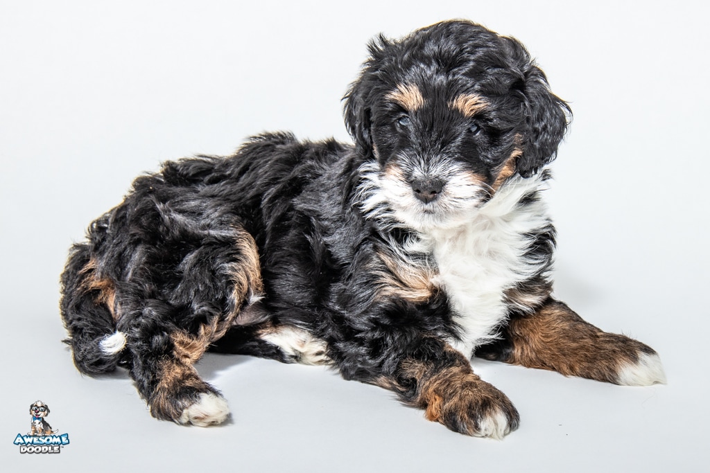 Zoey is a female Black Tri-Color F1 AussieDoodle puppy.