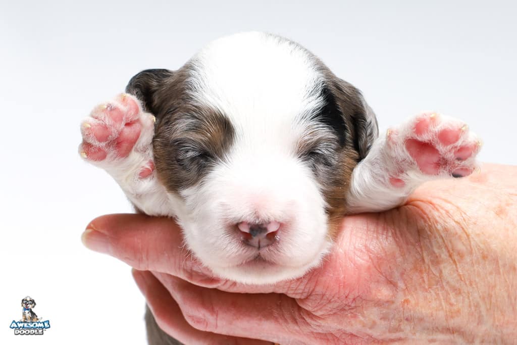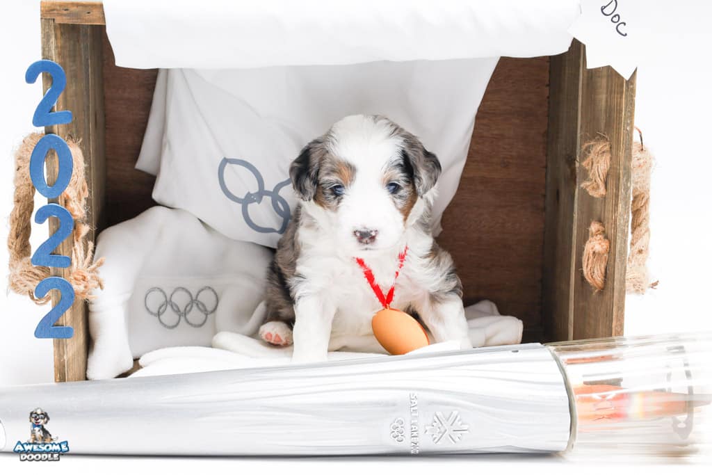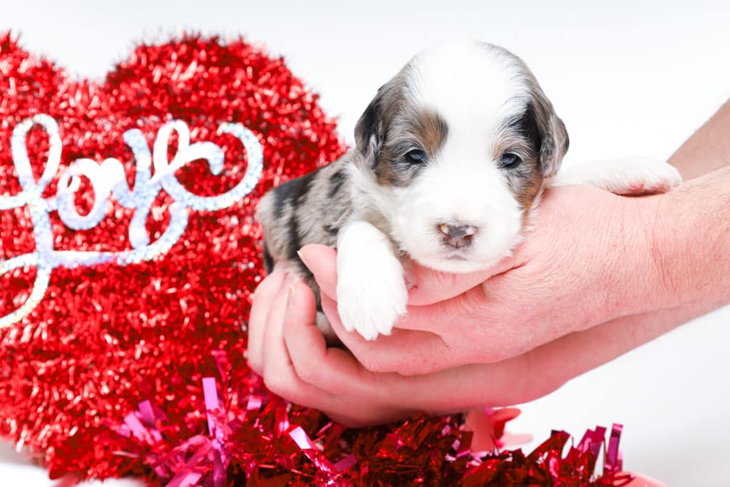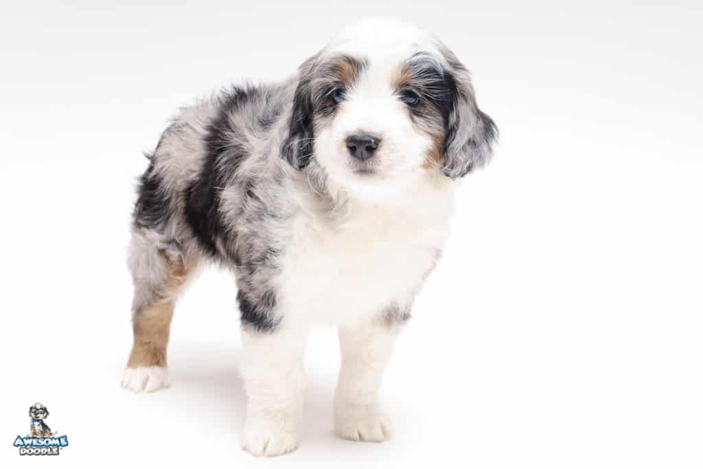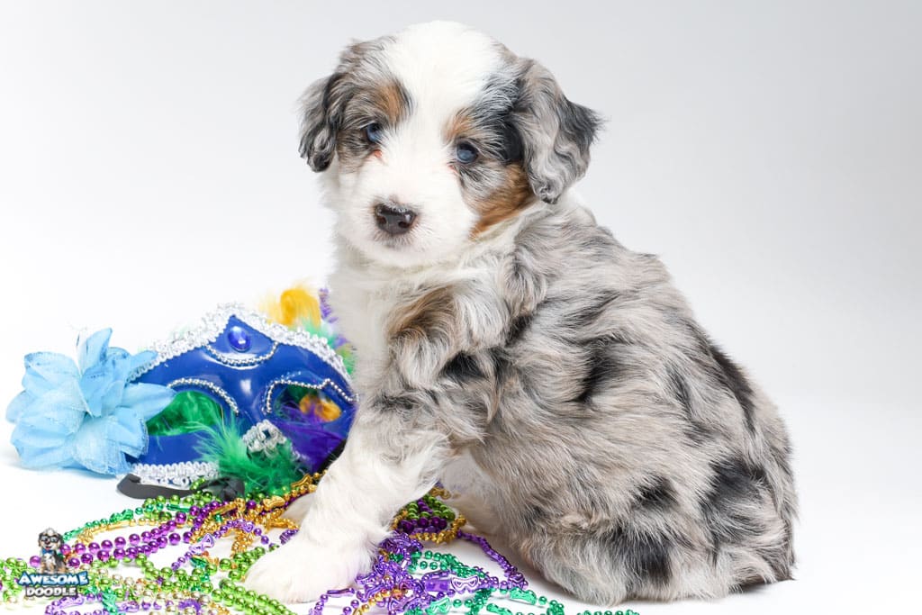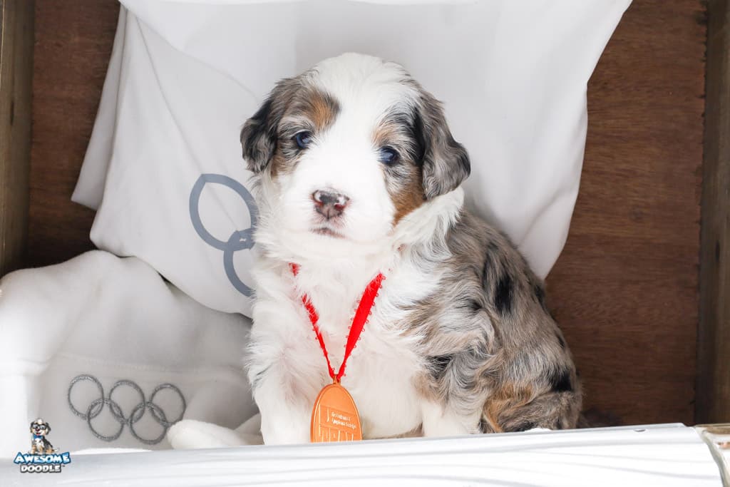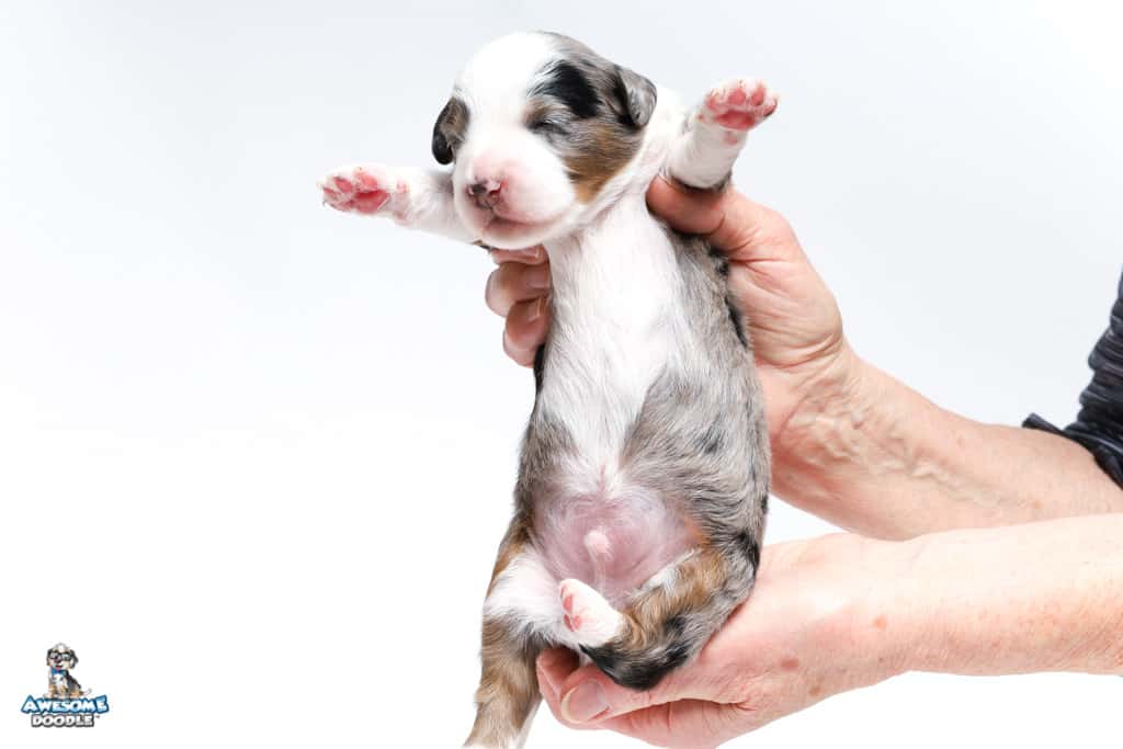 Rigby is a male Blue Merle w/ White & Copper F1 AussieDoodle puppy.