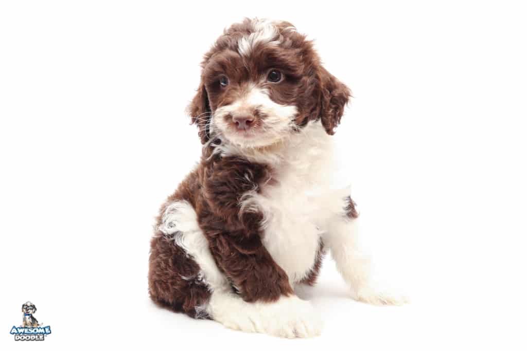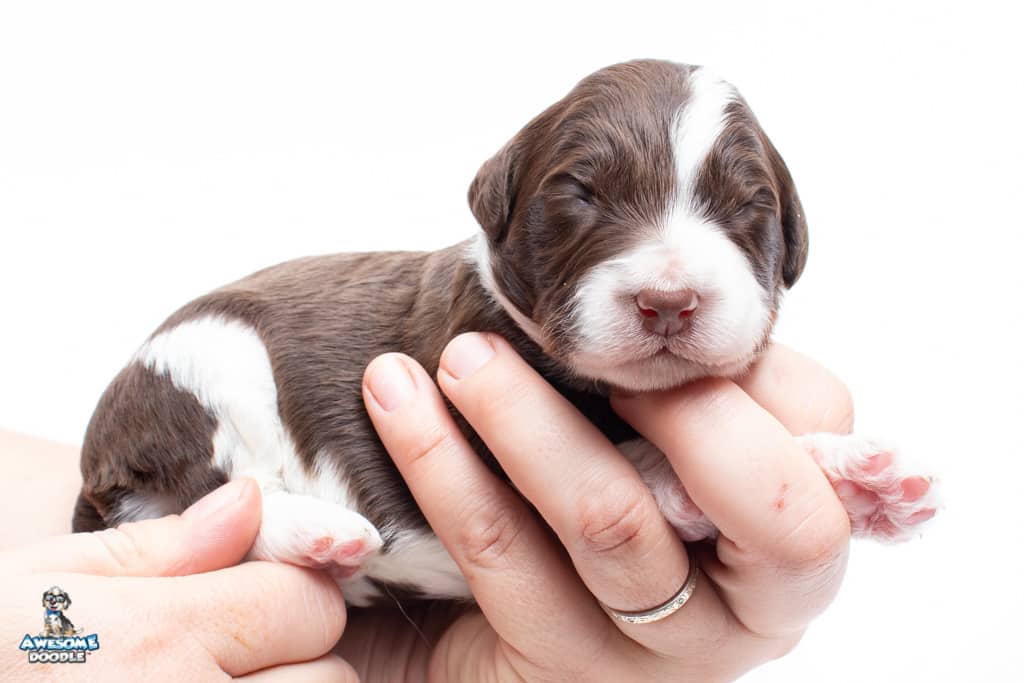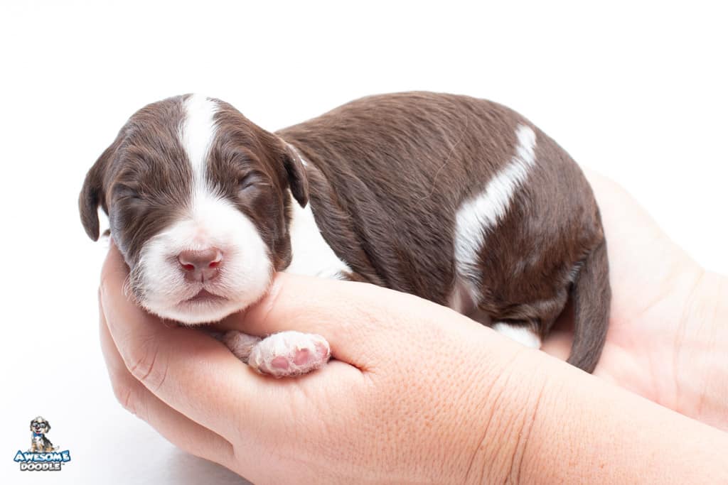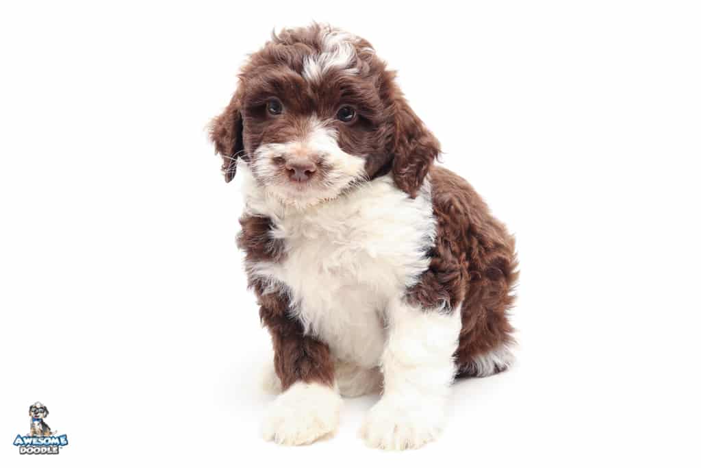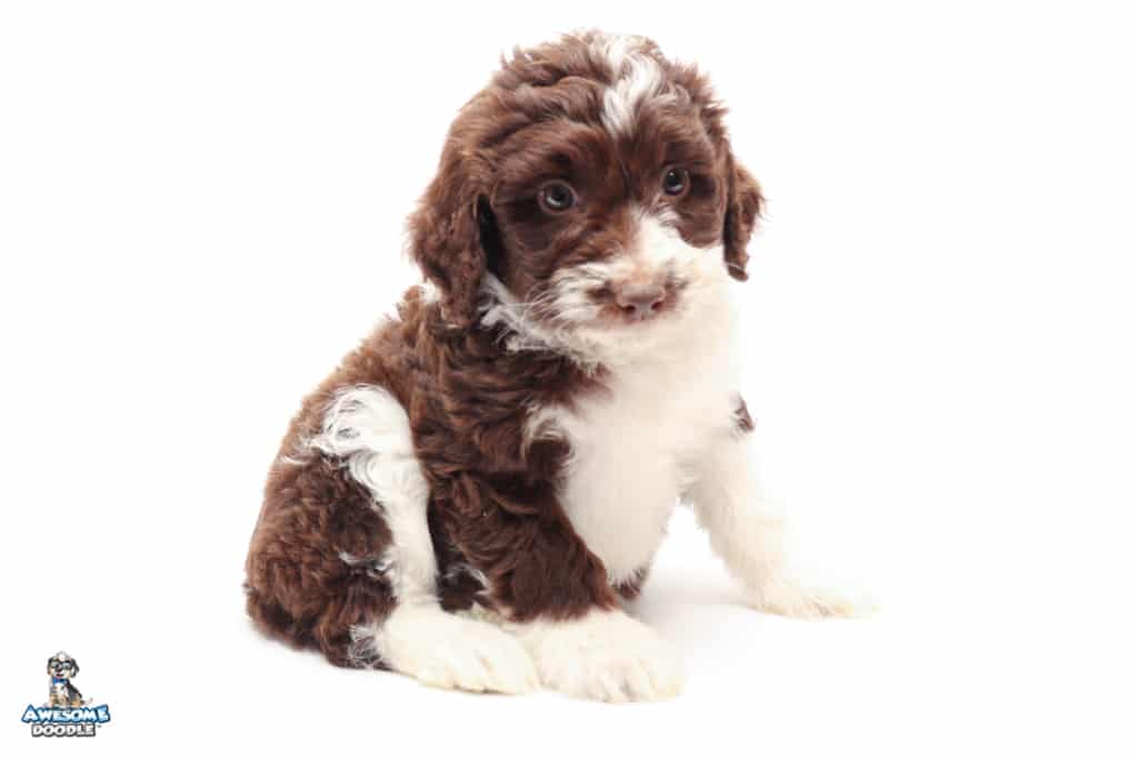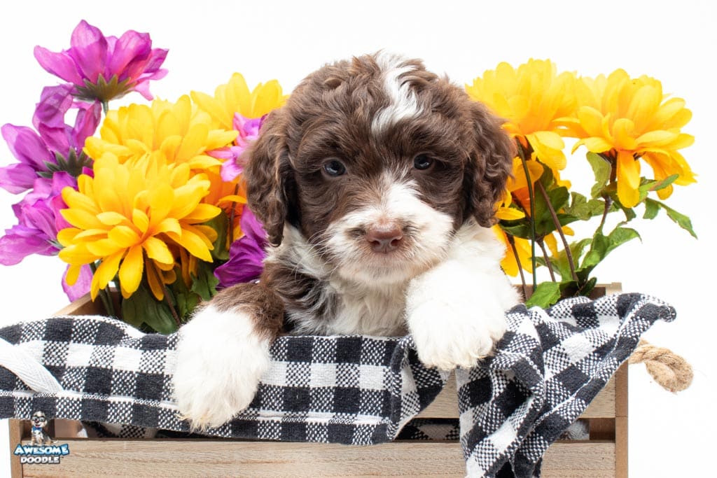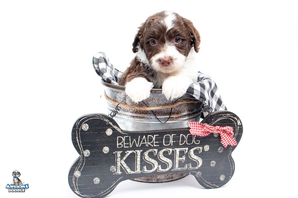 Dolly is a female Chocolate Tri-Color F1 AussieDoodle puppy.