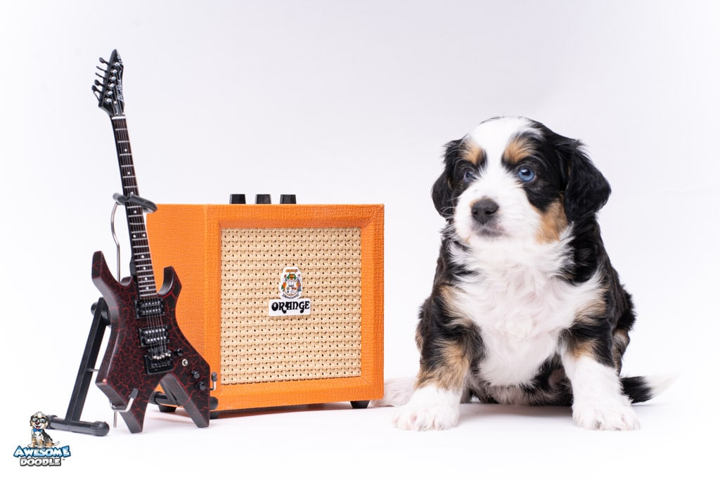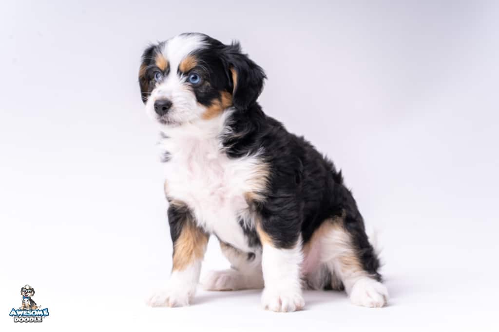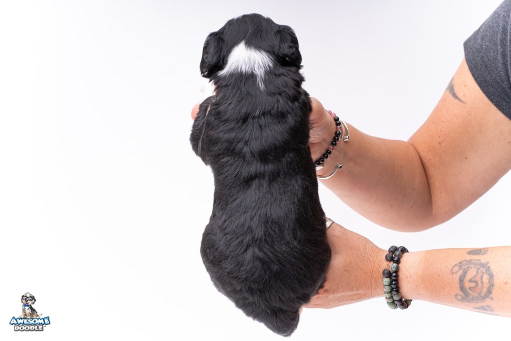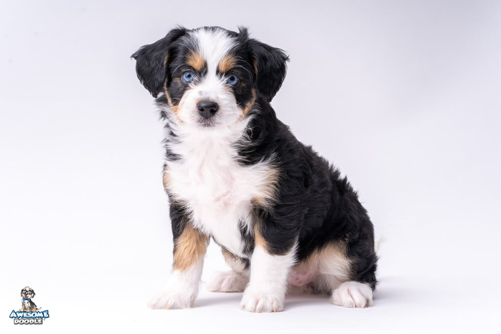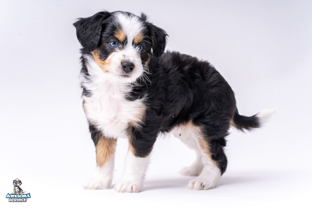 El is a female Black Tri-Color F1 AussieDoodle puppy.