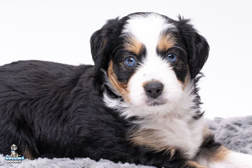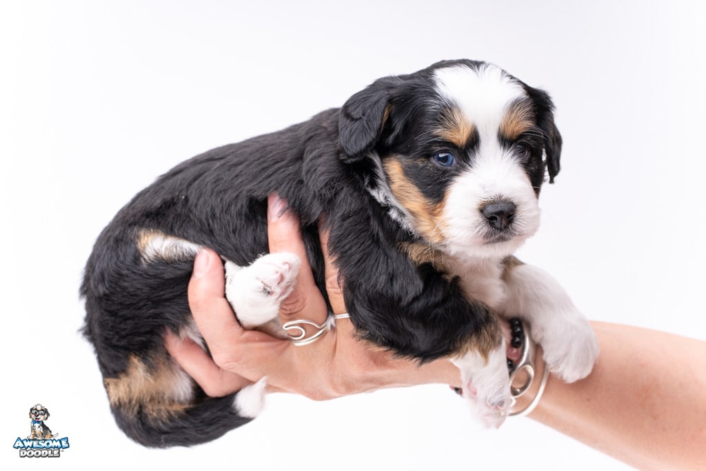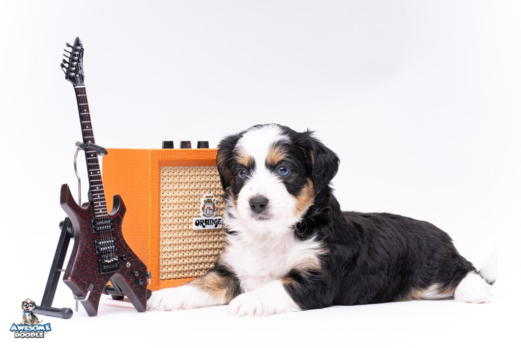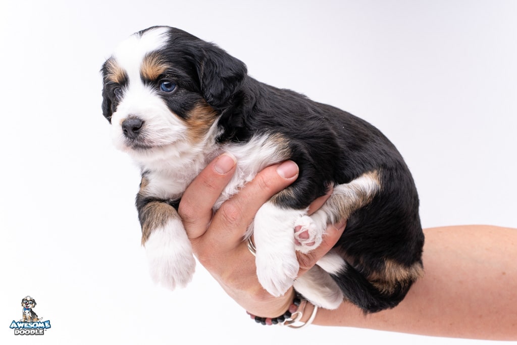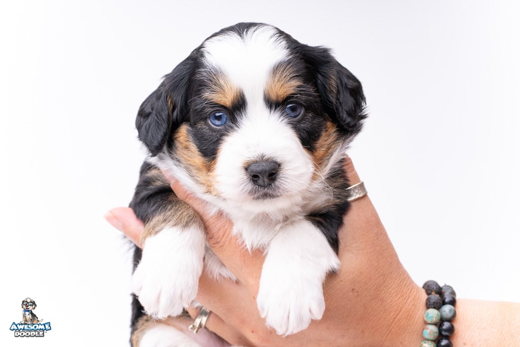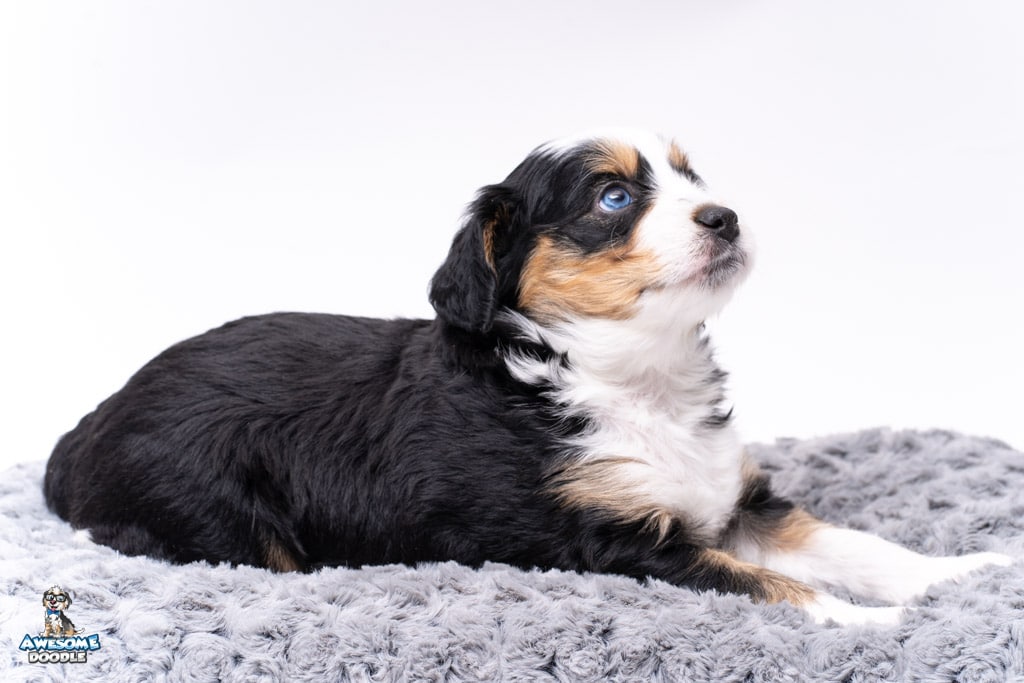 El is a female Black Tri-Color F1 AussieDoodle puppy.