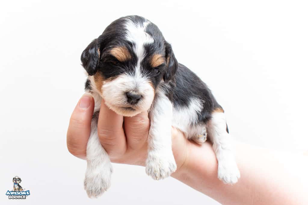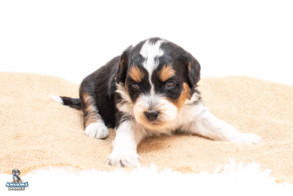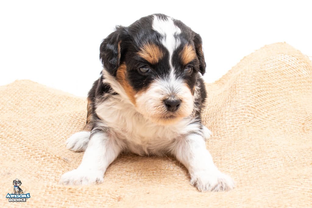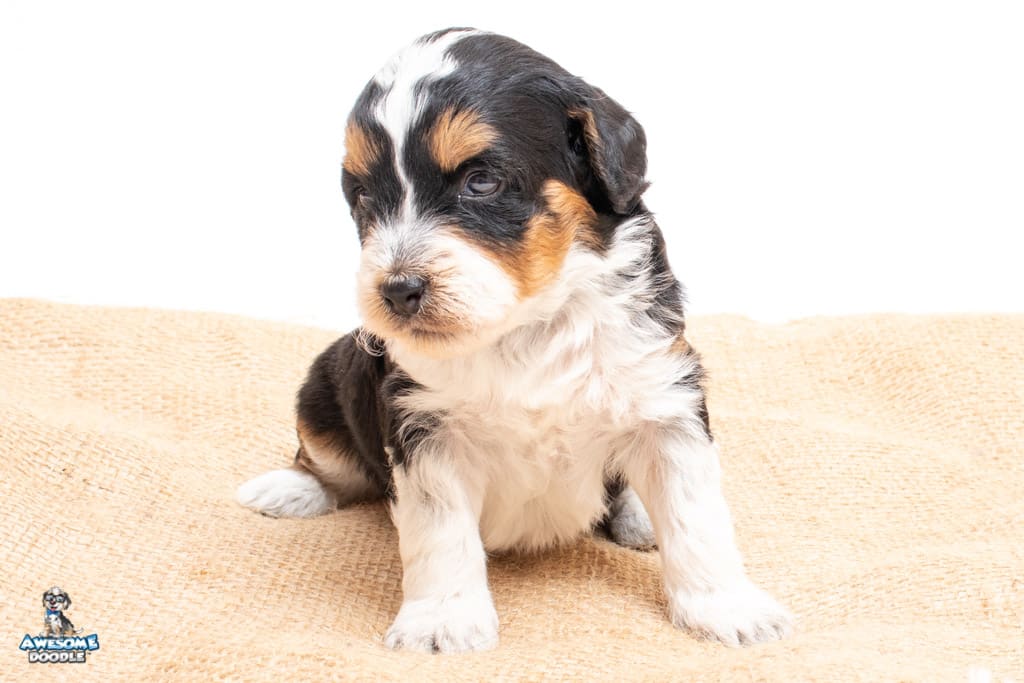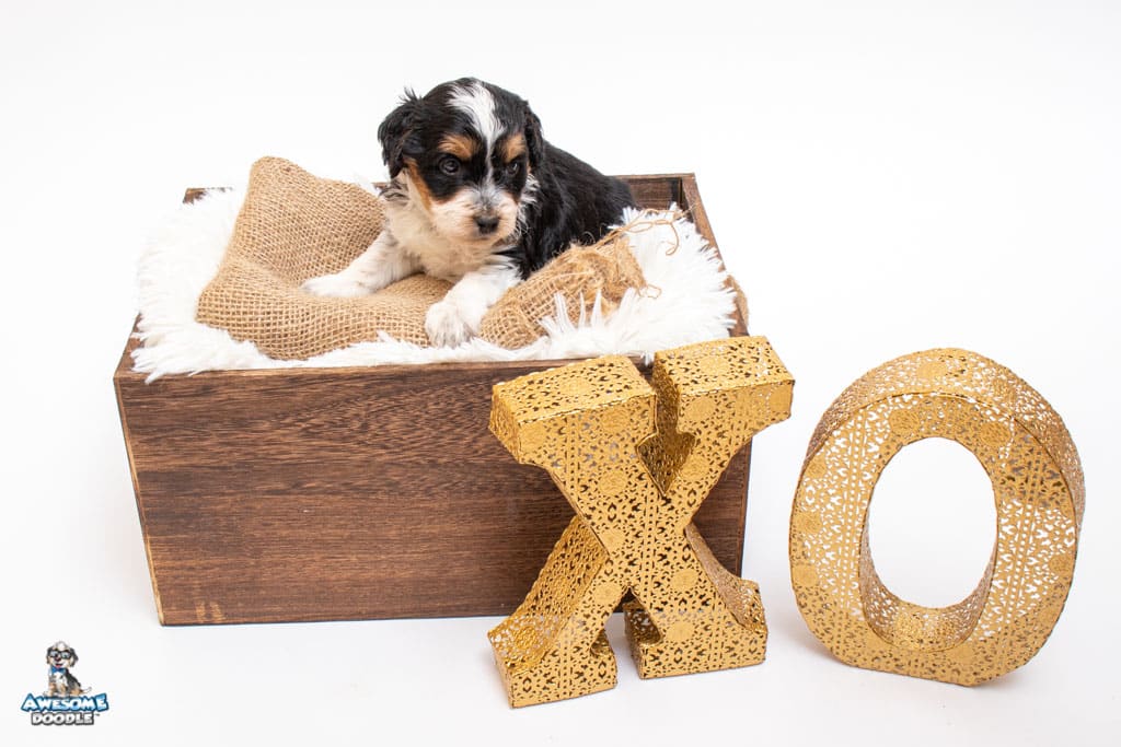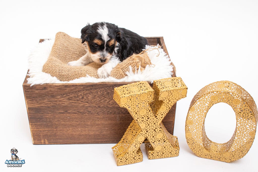 Loki is a male Black Tri-Color F1 AussieDoodle puppy.