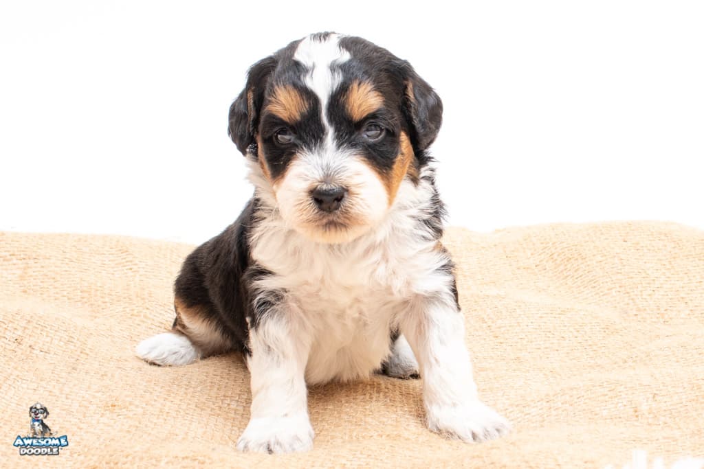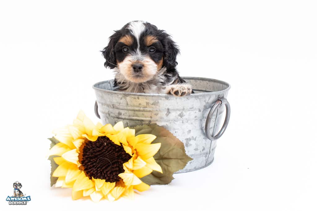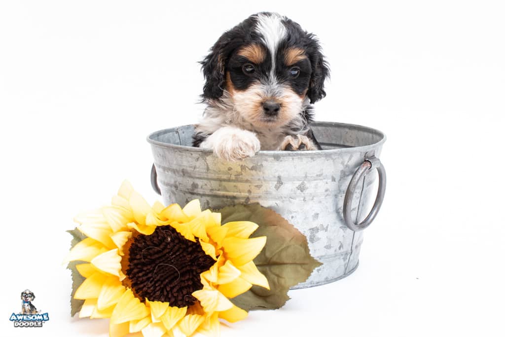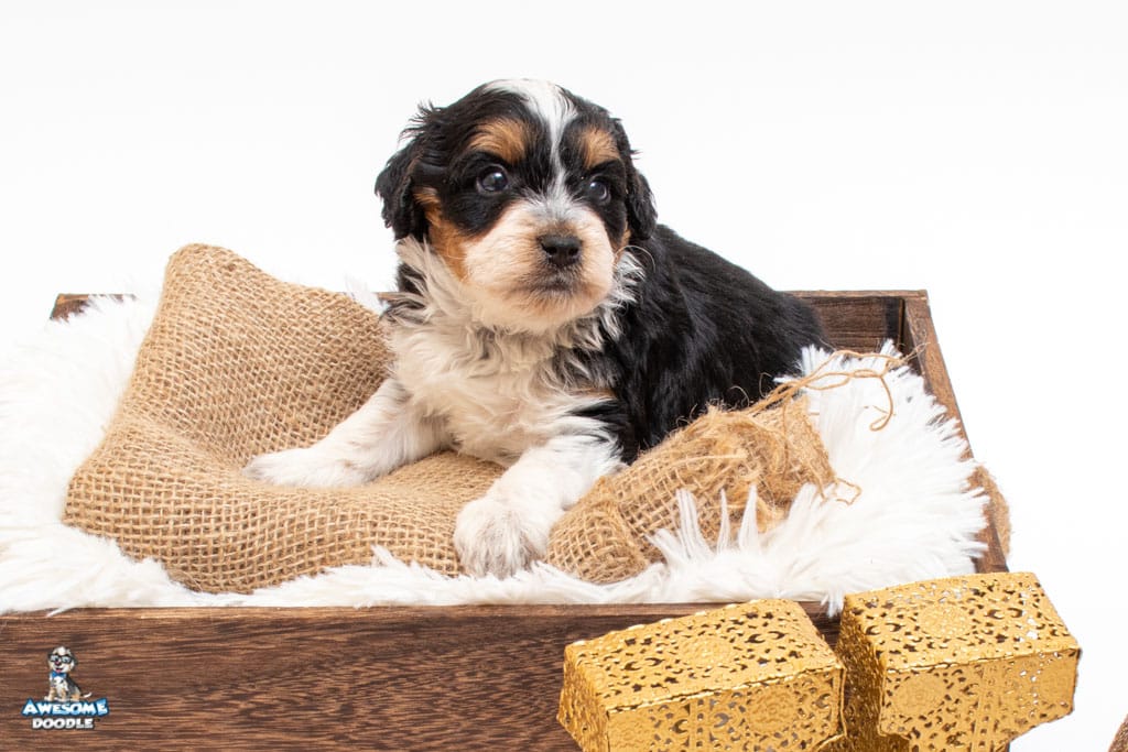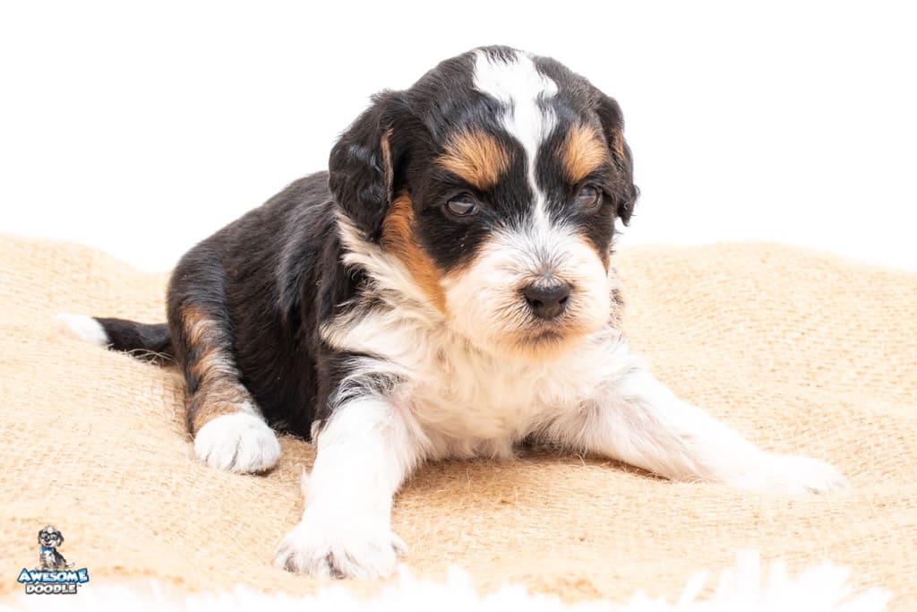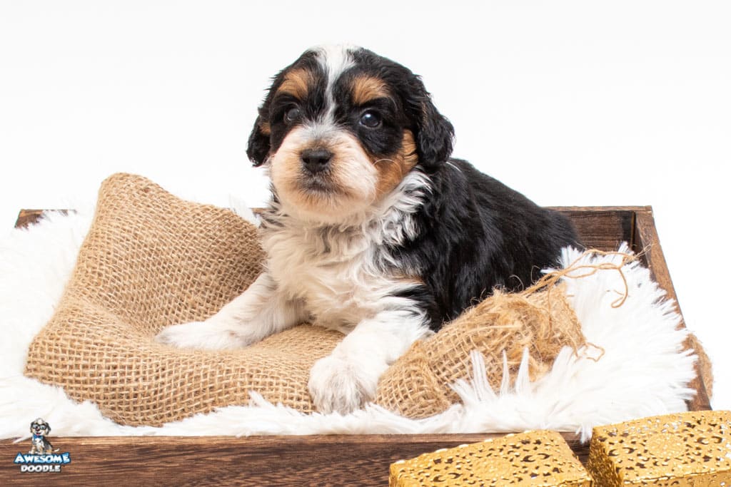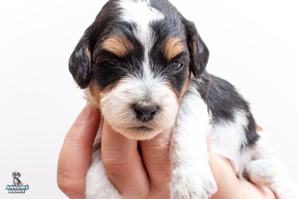 Loki is a male Black Tri-Color F1 AussieDoodle puppy.