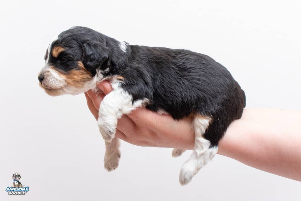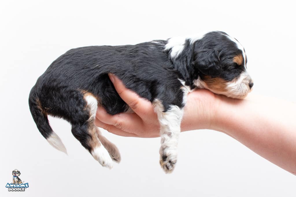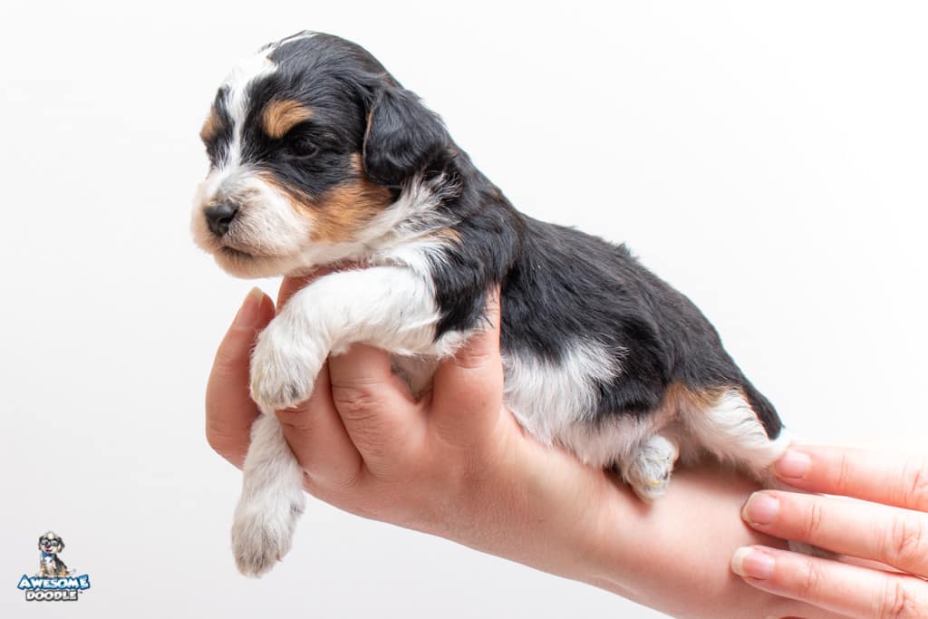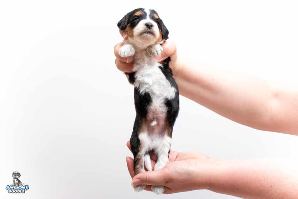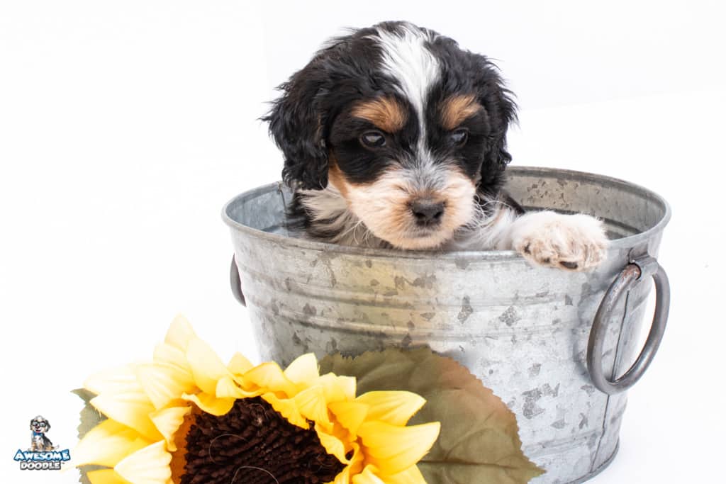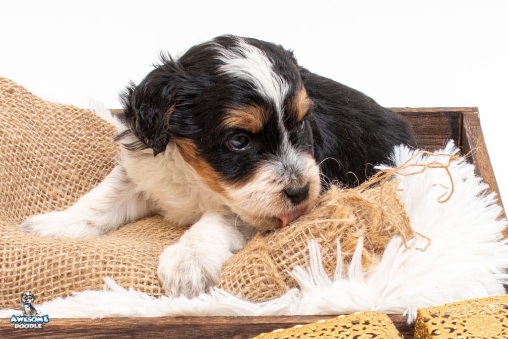 Loki is a male Black Tri-Color F1 AussieDoodle puppy.