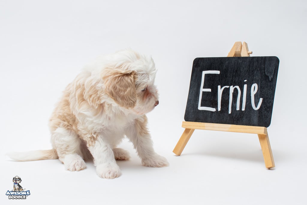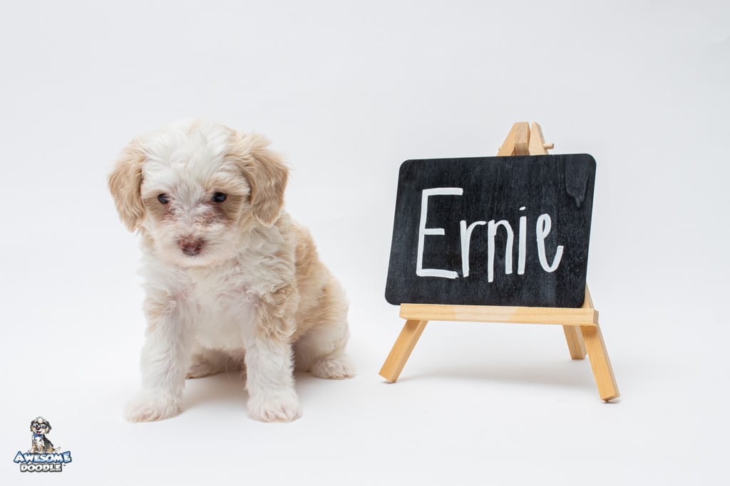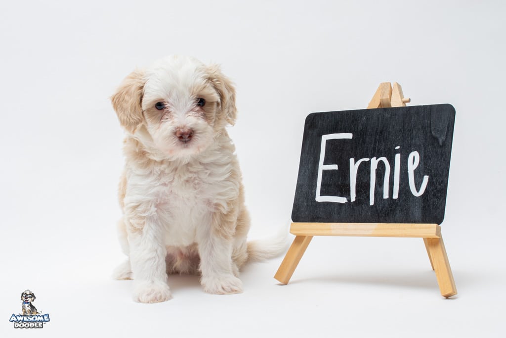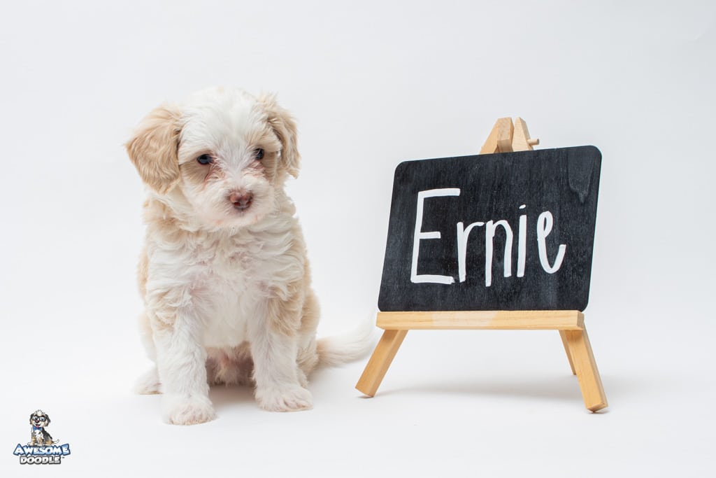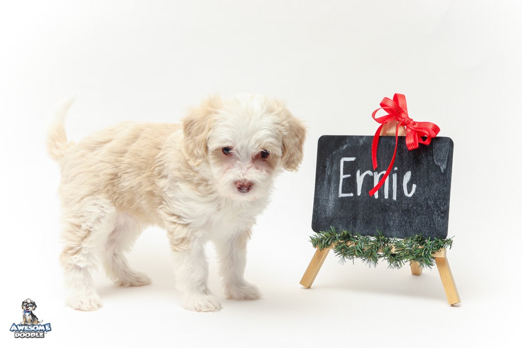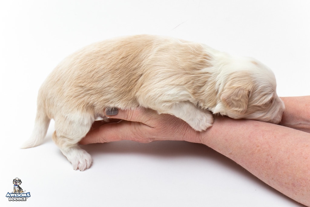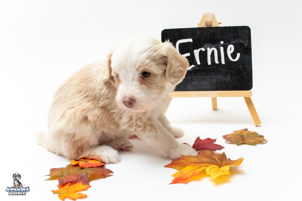 Goose is a male Apricot Bi-Color F1 AussieDoodle puppy.