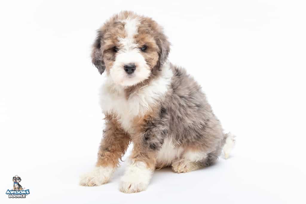 Juneau is a male Blue Merle w/ White & Copper F1 AussieDoodle puppy.