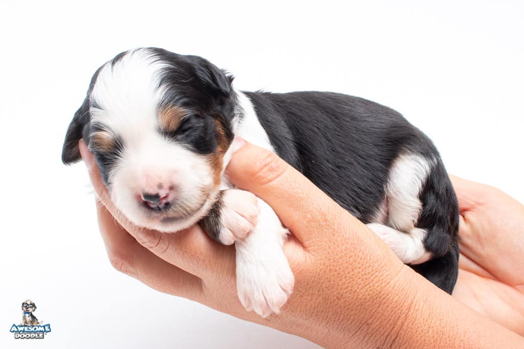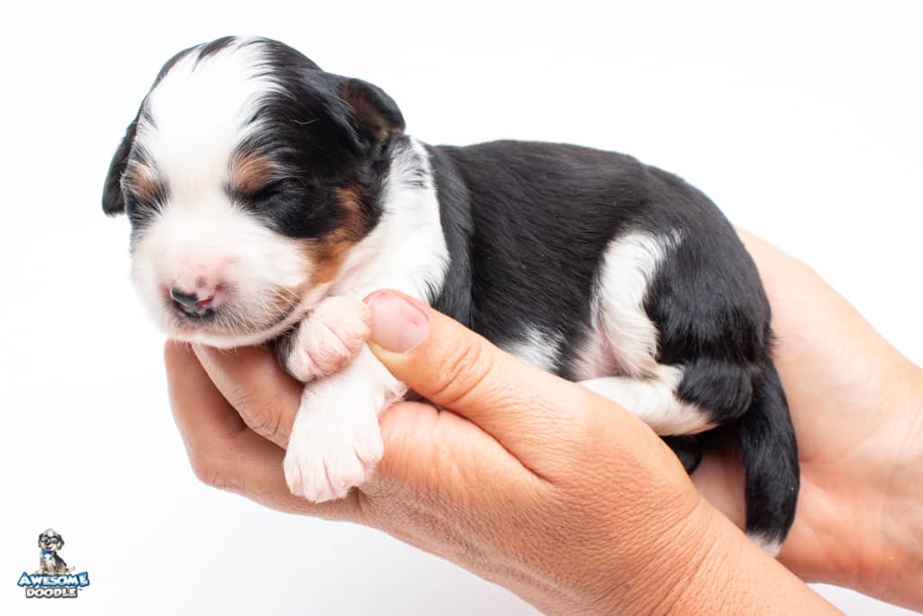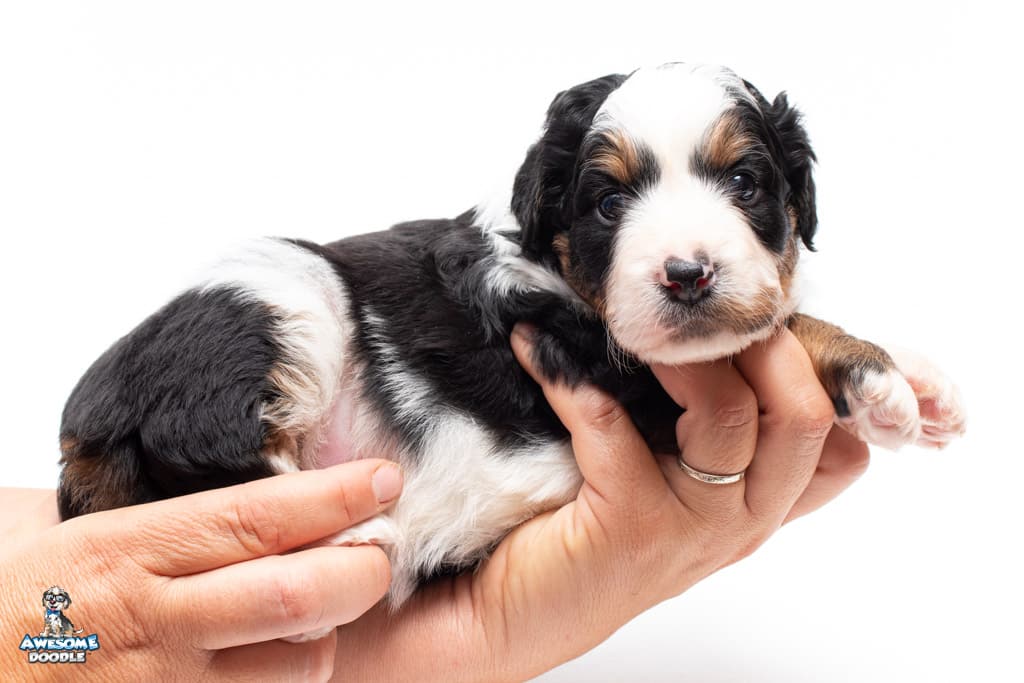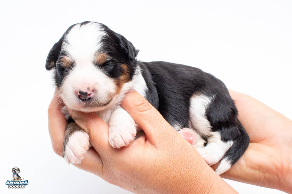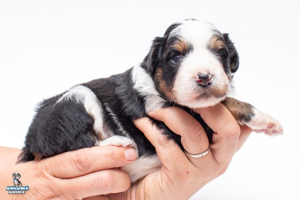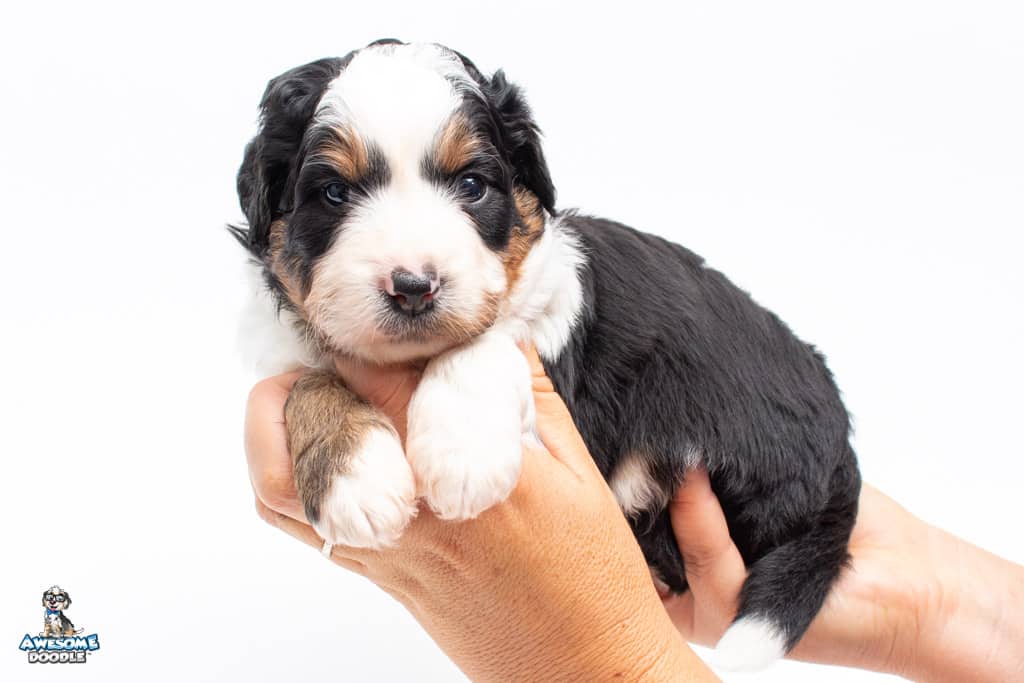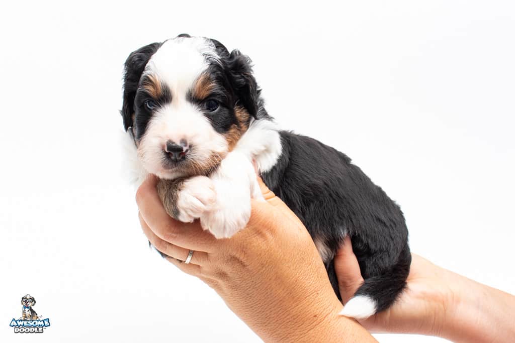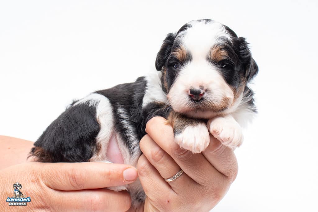 Fred is a male Black Tri-Color F1 AussieDoodle puppy.