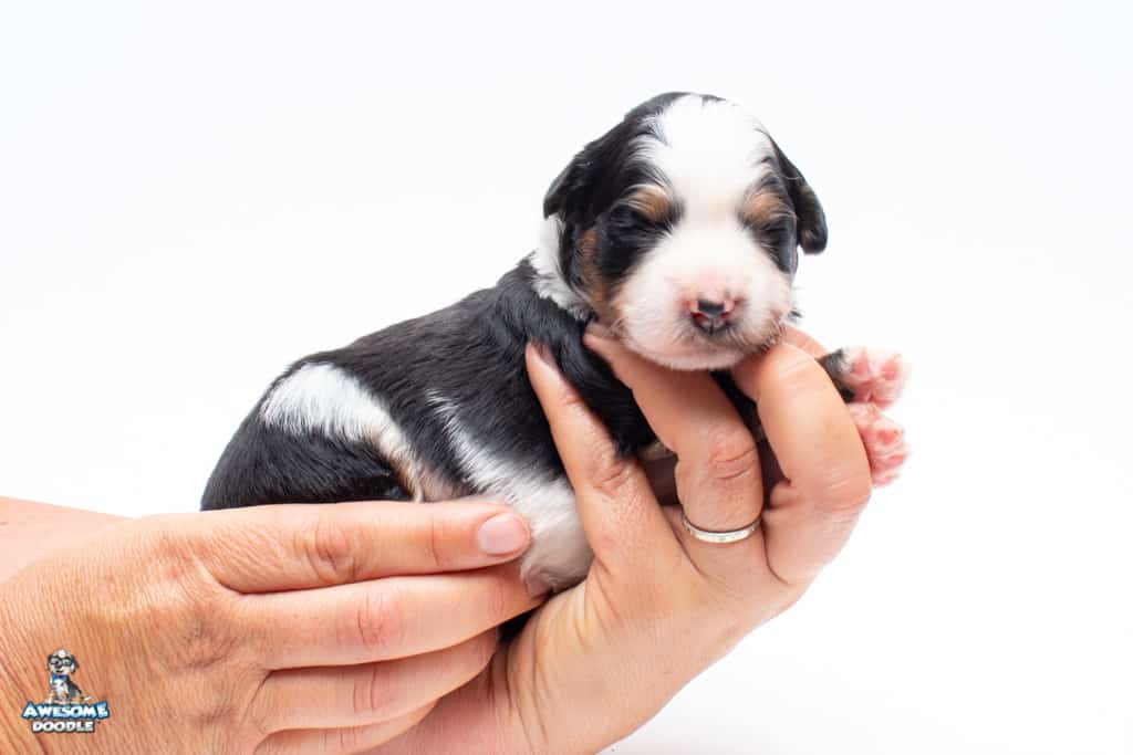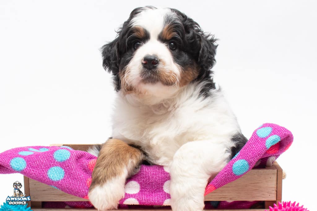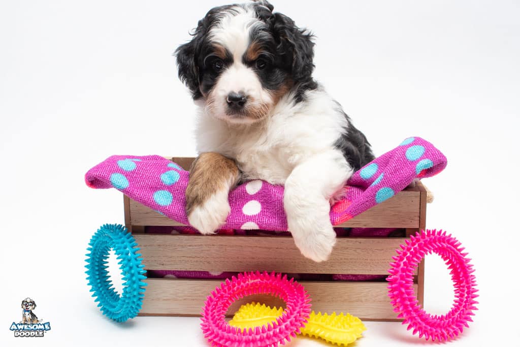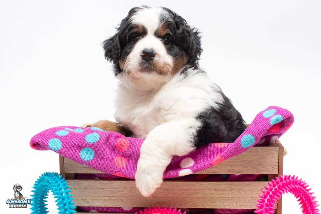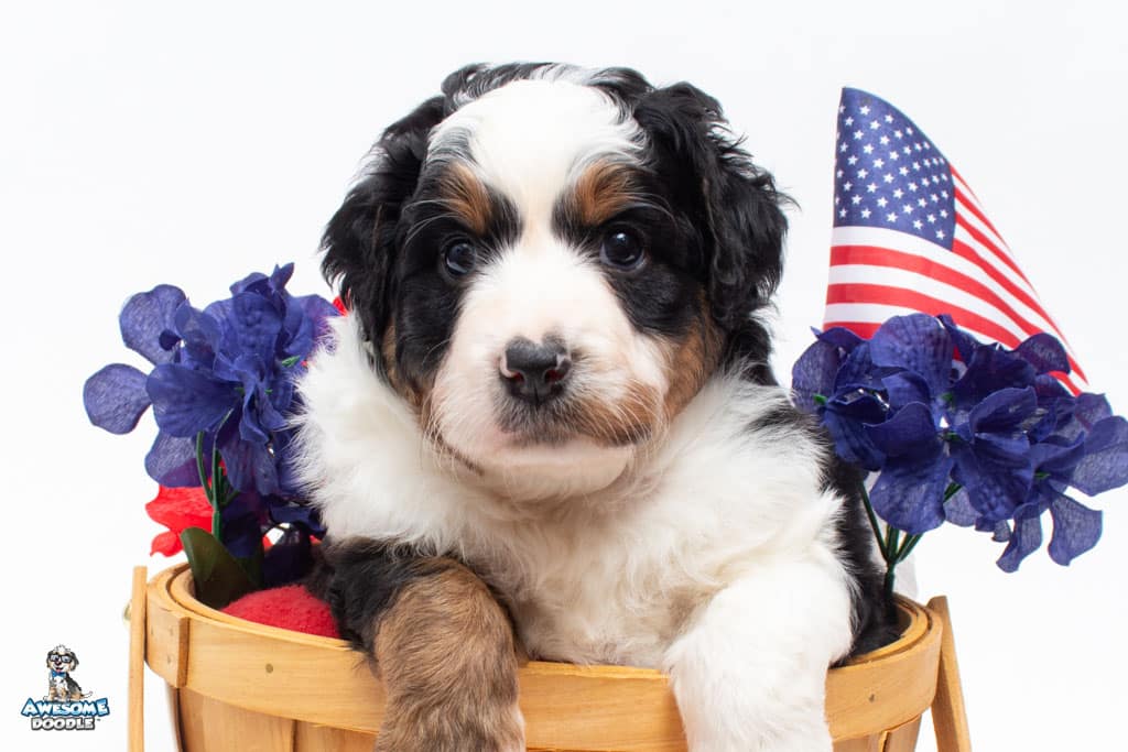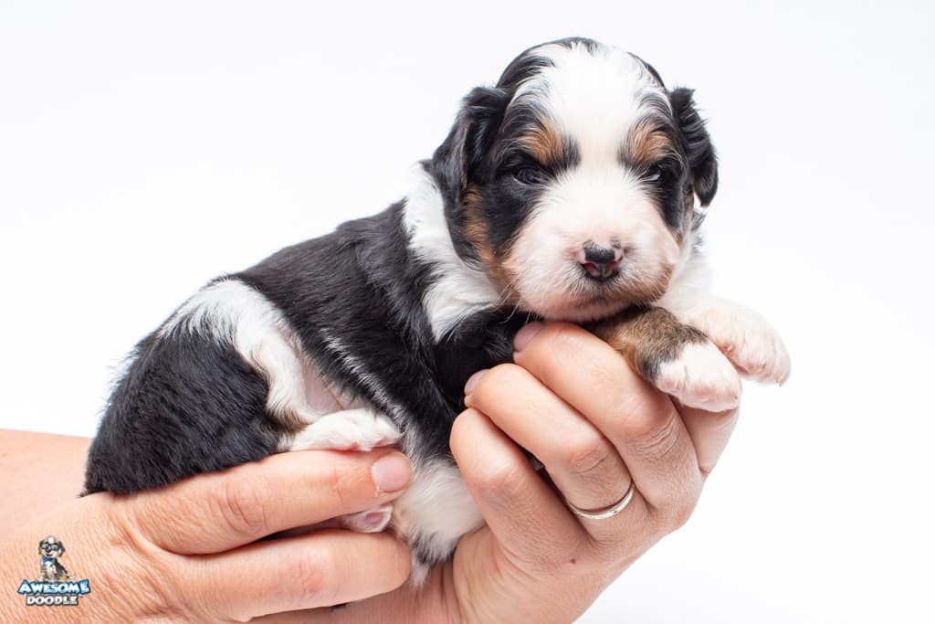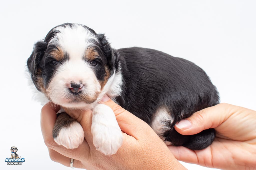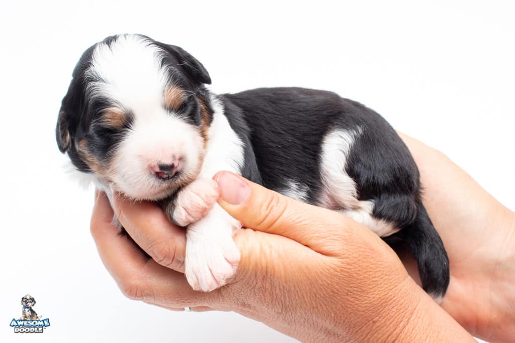 Fred is a male Black Tri-Color F1 AussieDoodle puppy.
