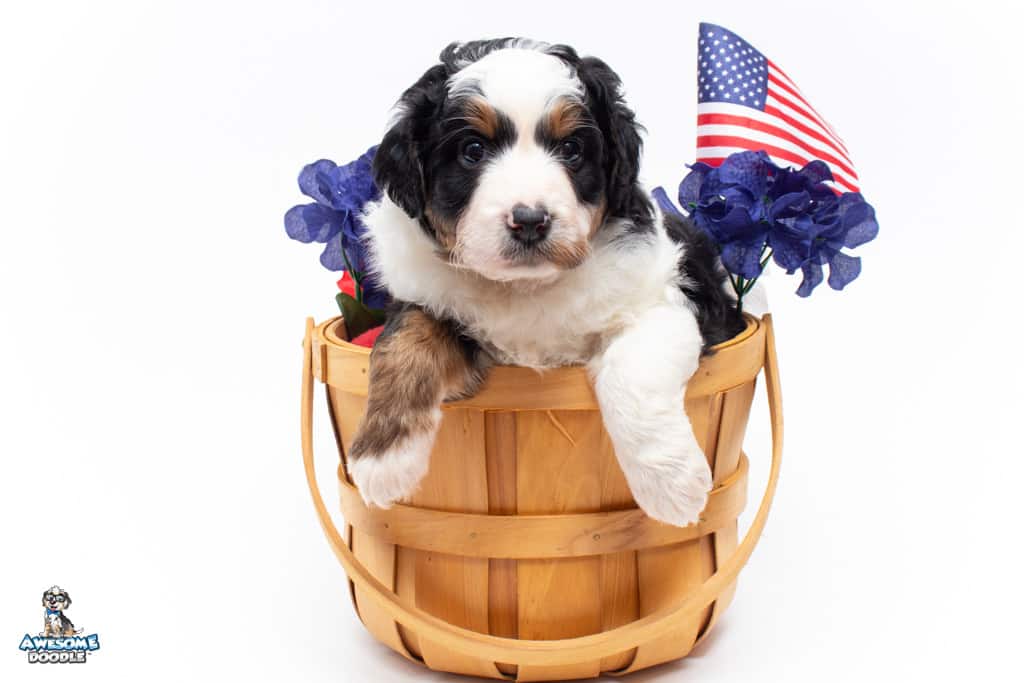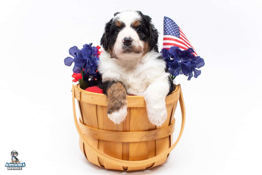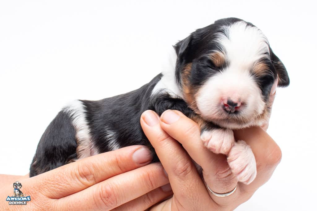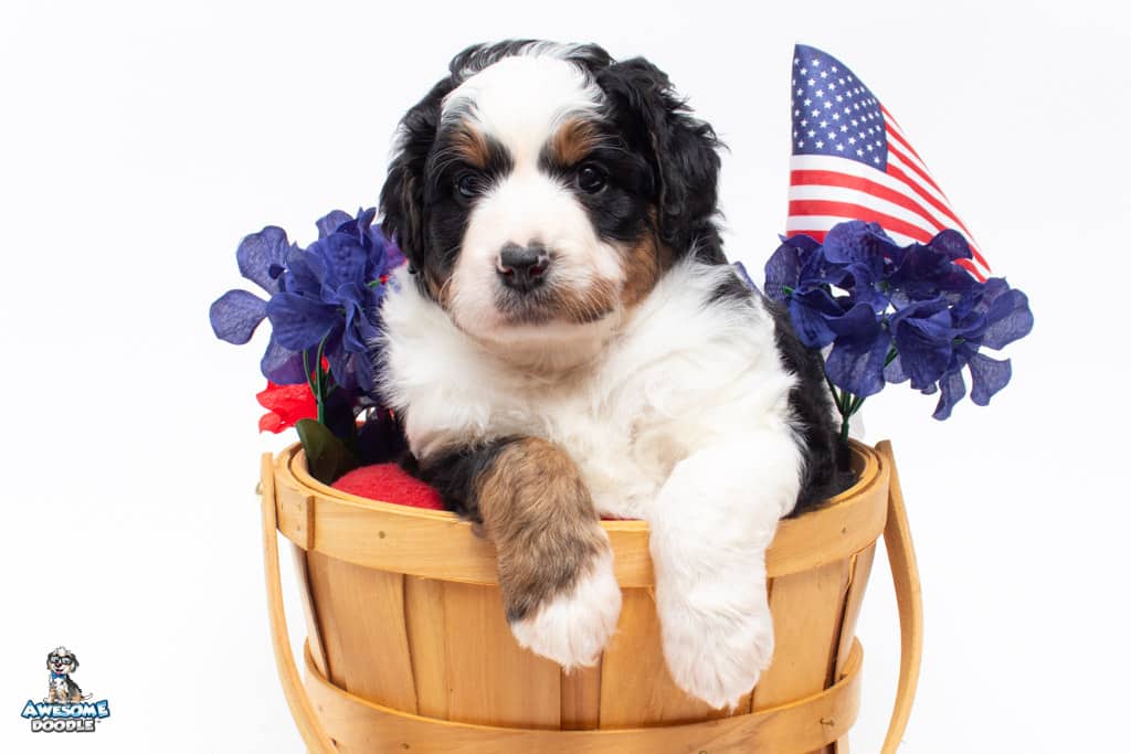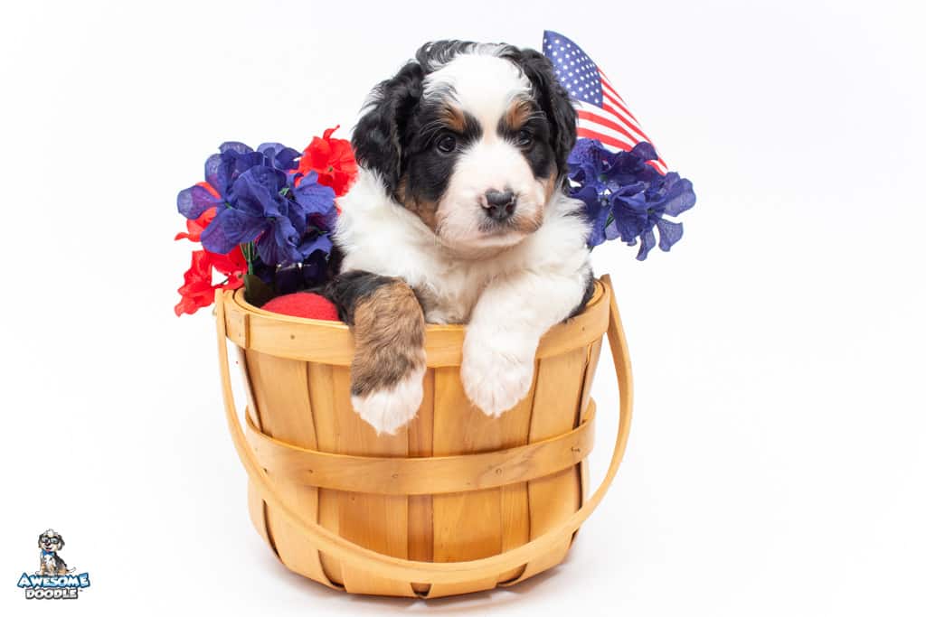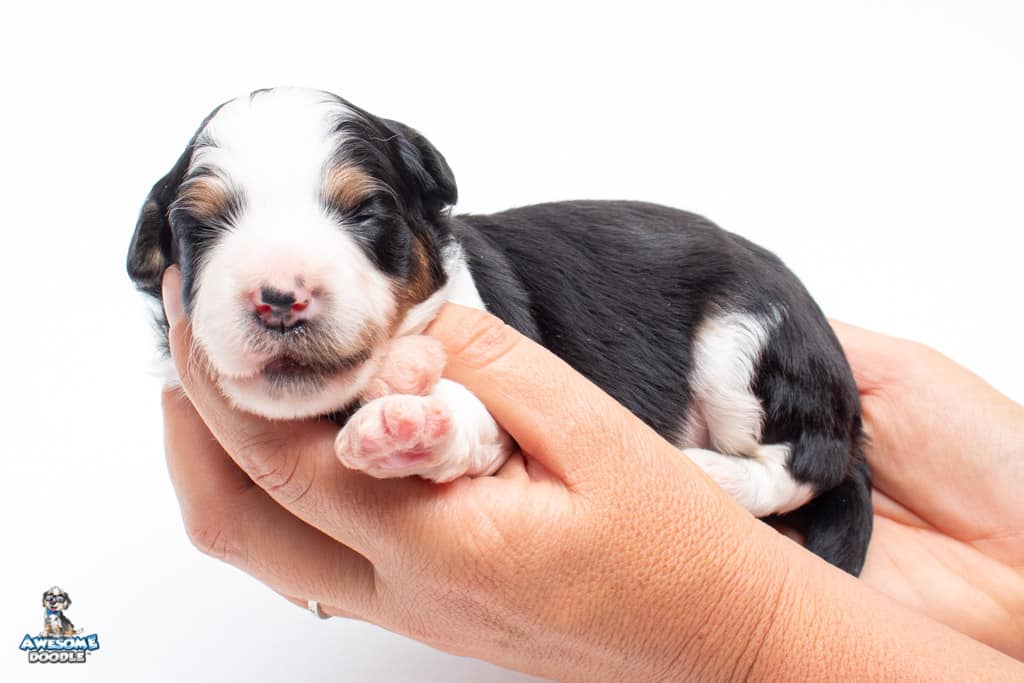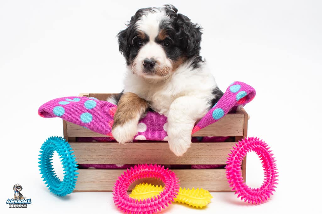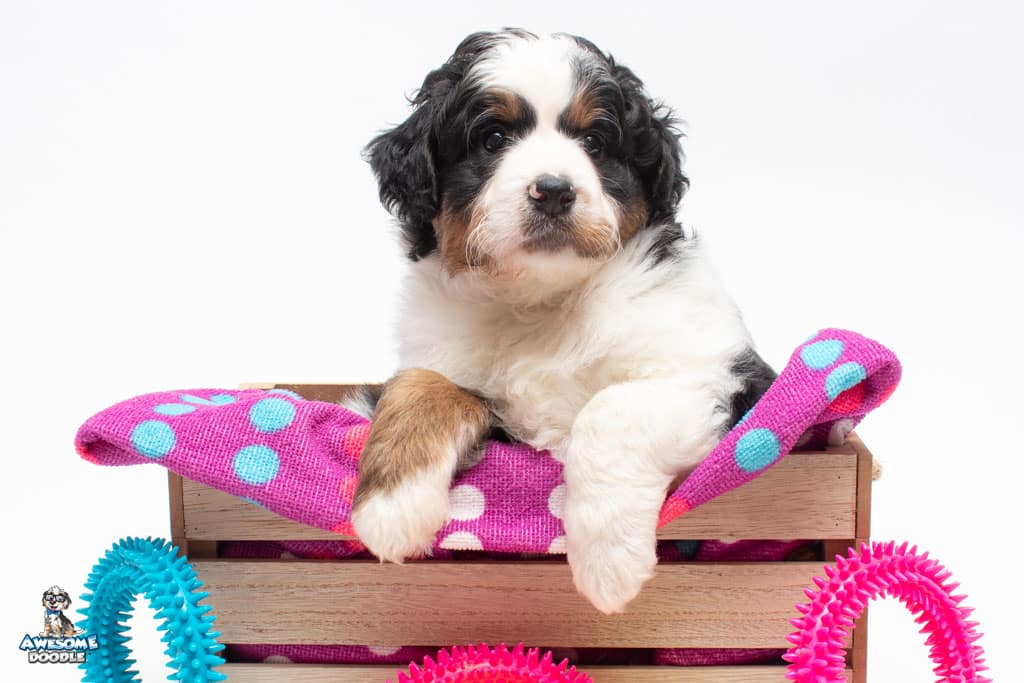 Fred is a male Black Tri-Color F1 AussieDoodle puppy.